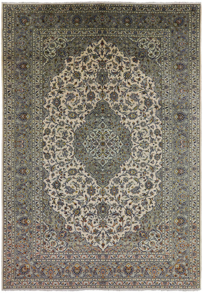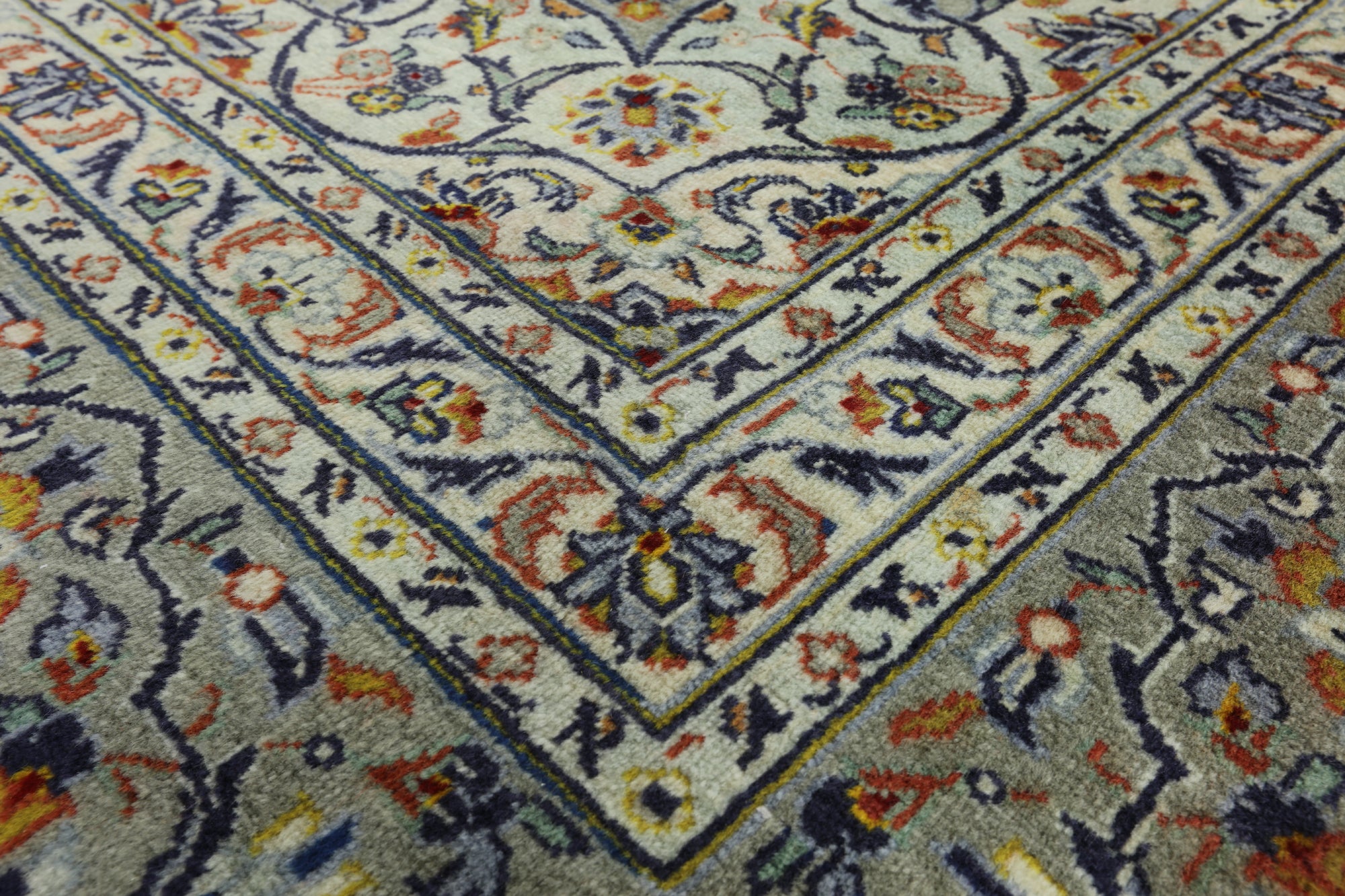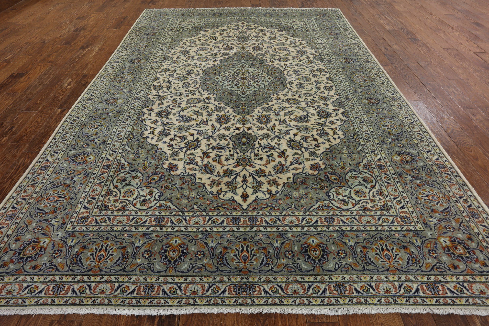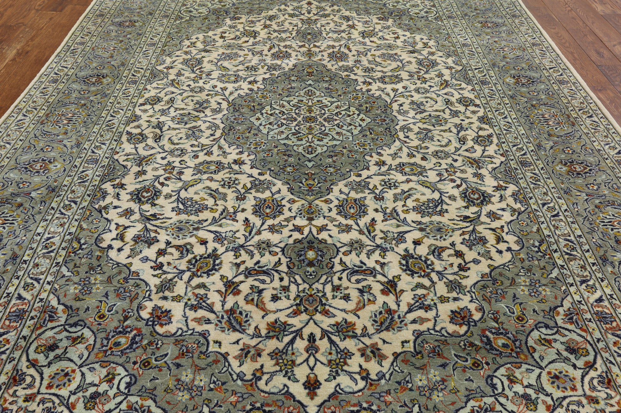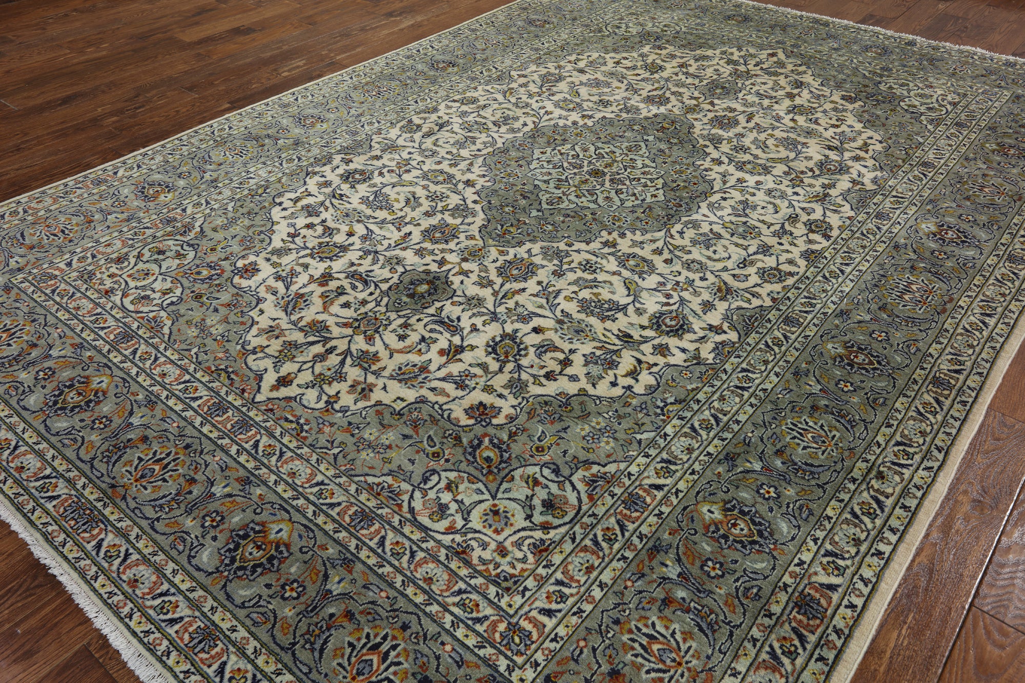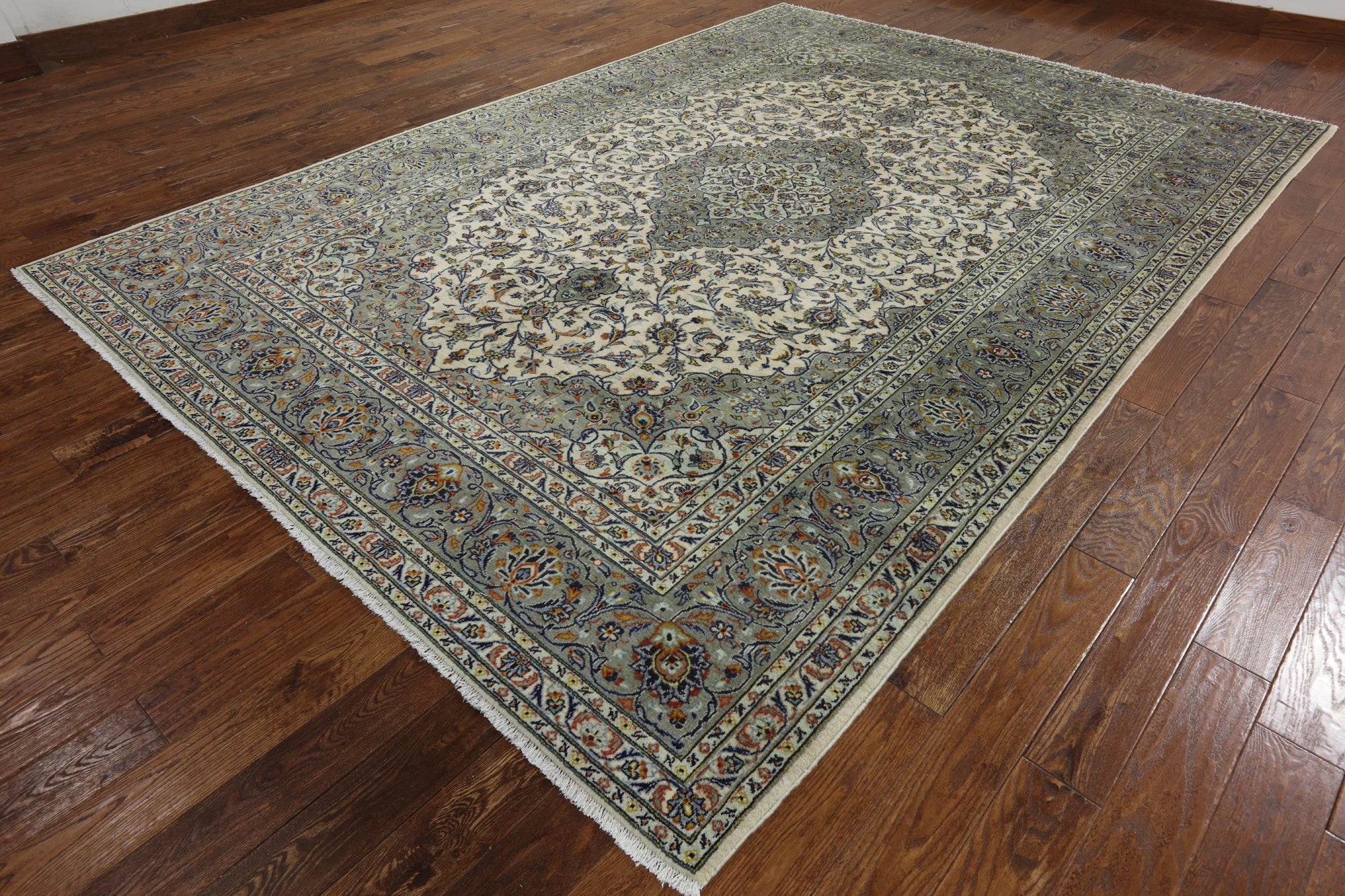 Kashan rugs are amongst the most famous of all the Persian Rugs. They have high quality weaves and their knot count is extremely tight and high. Traditionally Kashan rugs have a central medallion on a red field with navy and ivory boarders. There designs do have silk incorporated into them which highlights the designs details. The wool on these rugs is soft and the pile is tightly knotted.