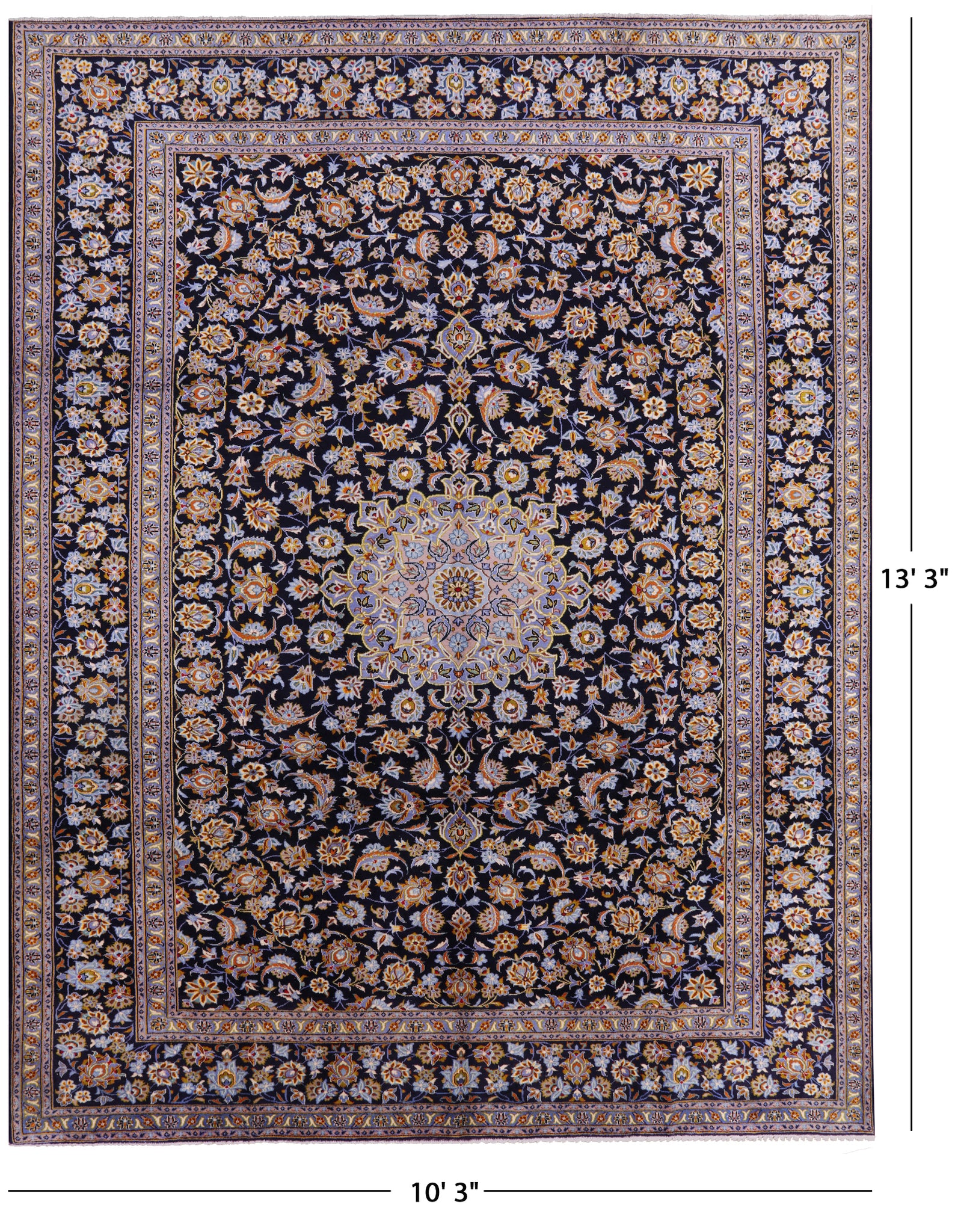 Kashan rugs are amongst the most famous of all the Persian Rugs. They have high quality weaves and their knot count is extremely tight and high. Traditionally Kashan rugs have a central medallion on a red field with navy and ivory boarders. There designs do have silk incorporated into them which highlights the designs details. The wool on these rugs is soft and the pile is tightly knotted.