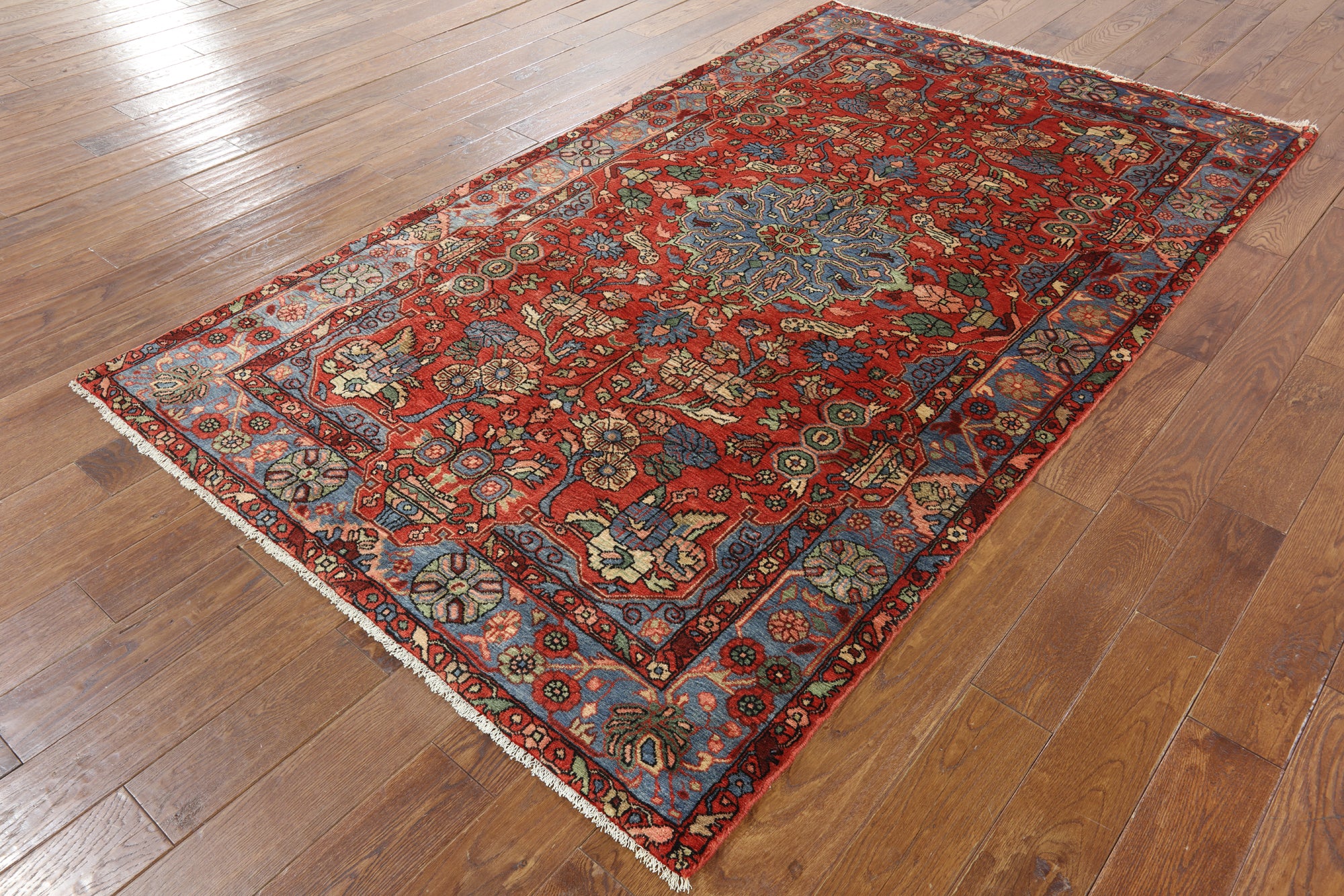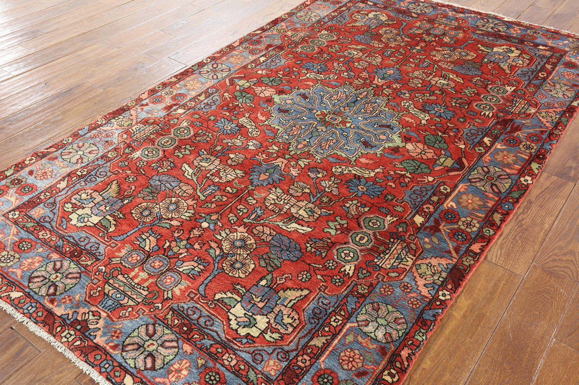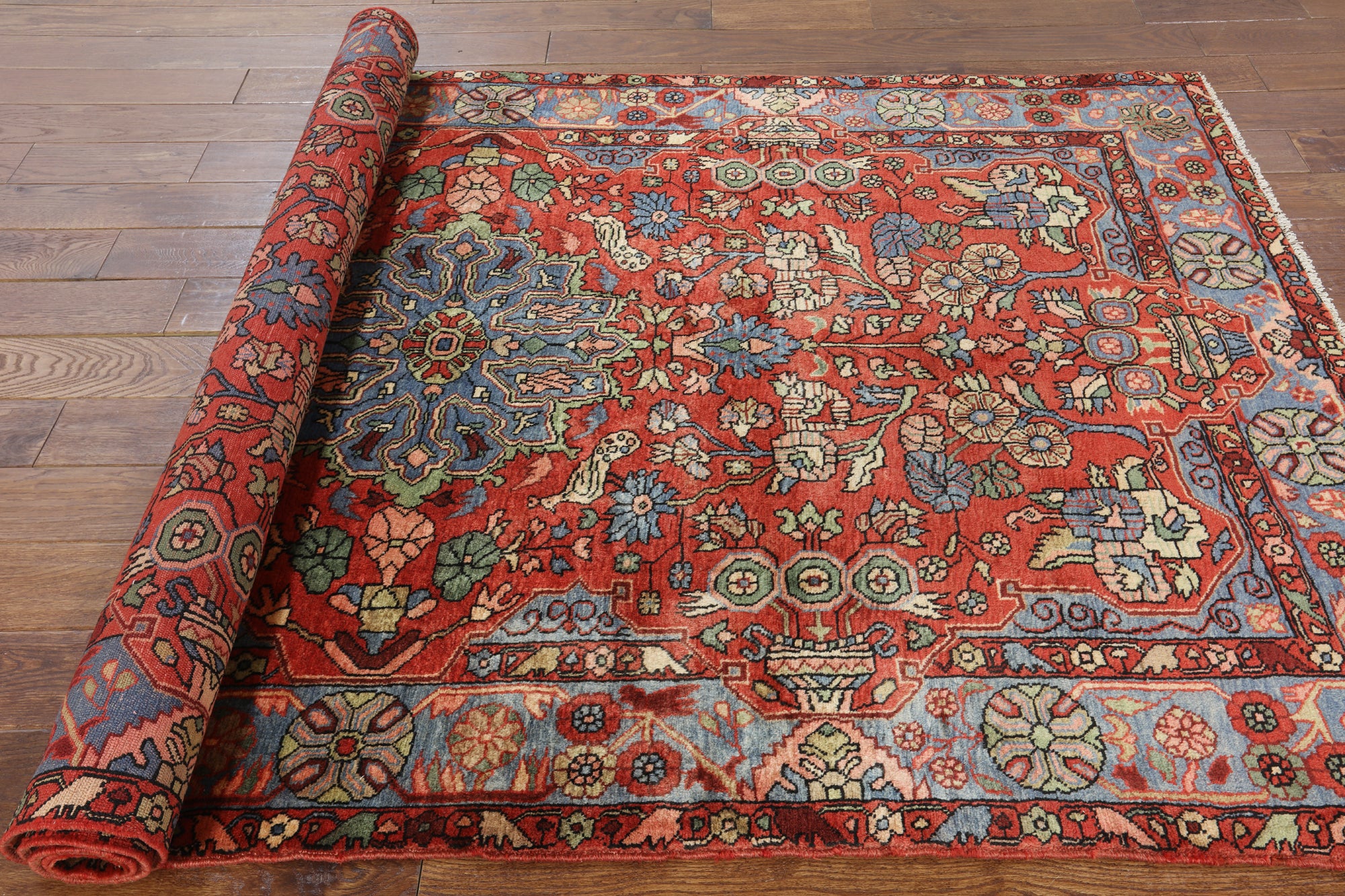 The quality of Nahavand rugs is very high this is thanks to the wool that is used to create these beautiful durable rugs. Most of the design elements in the Nahavand rugs are geometrical motifs. They often have β€œleaf’ like medallions in the center with flowers and twigs all around the background. The dominating colors for these rugs are often pale rust reds, beige, and many more.