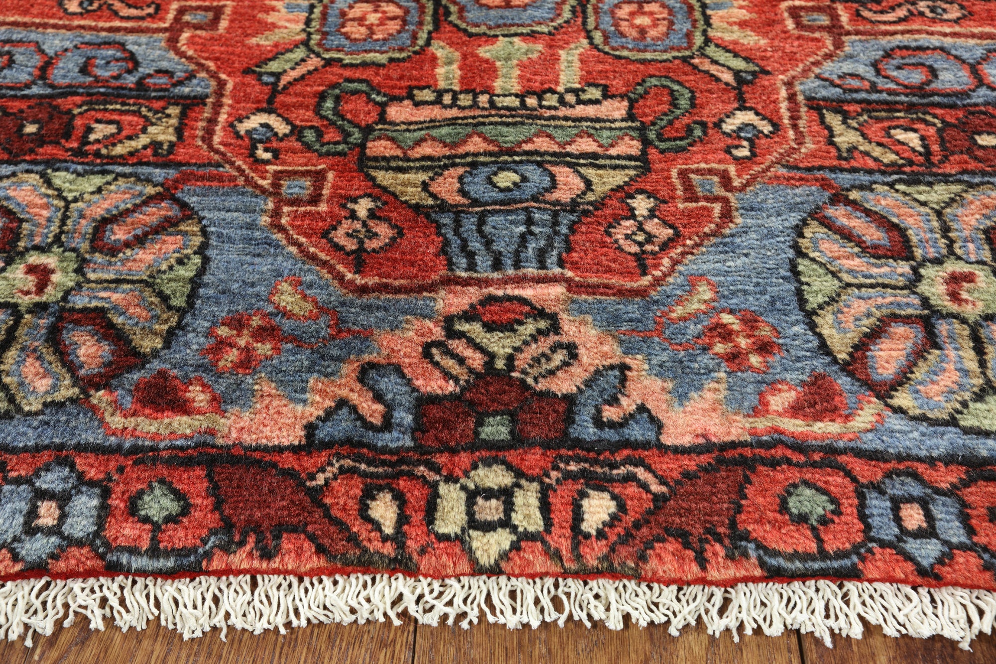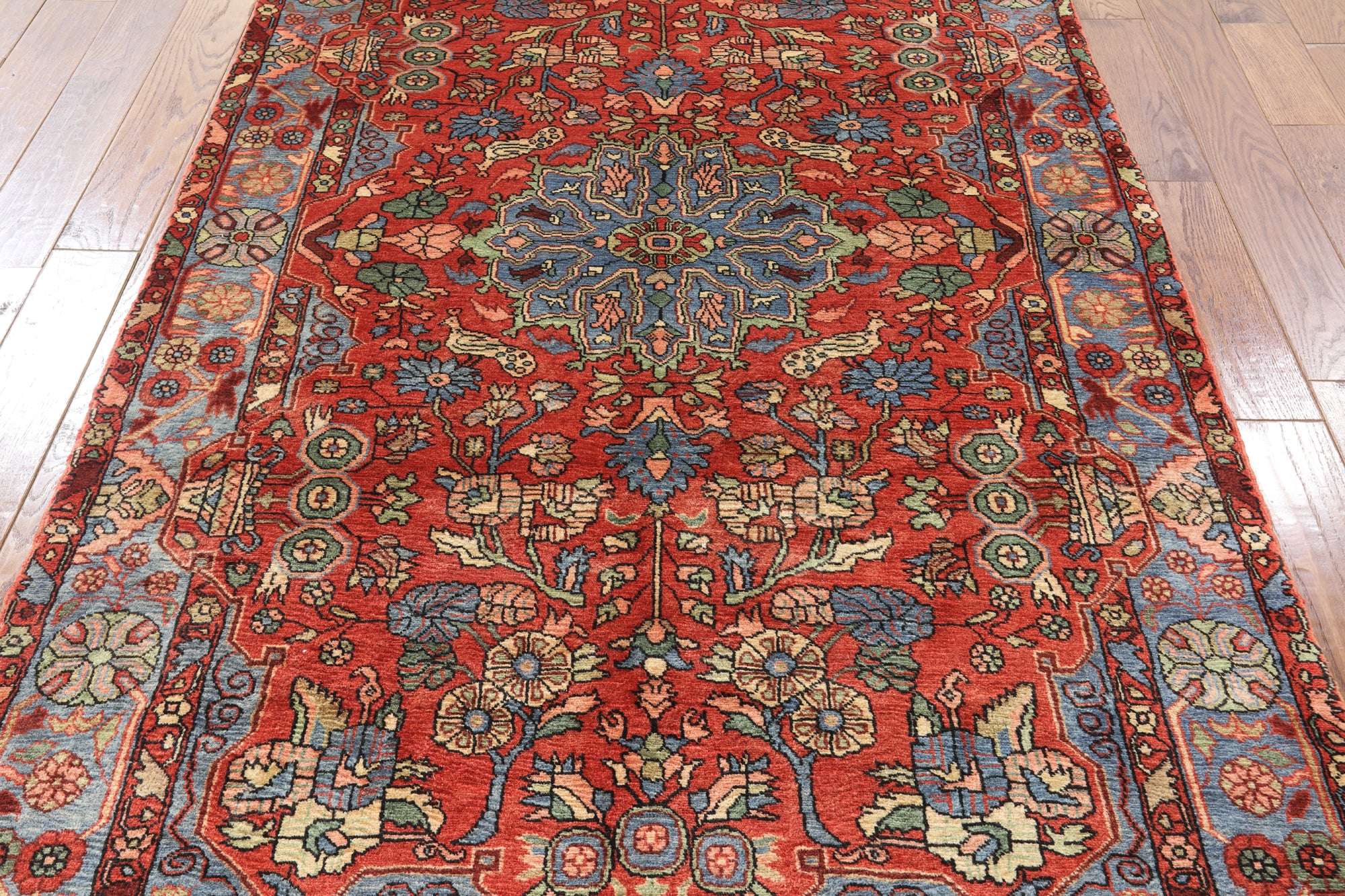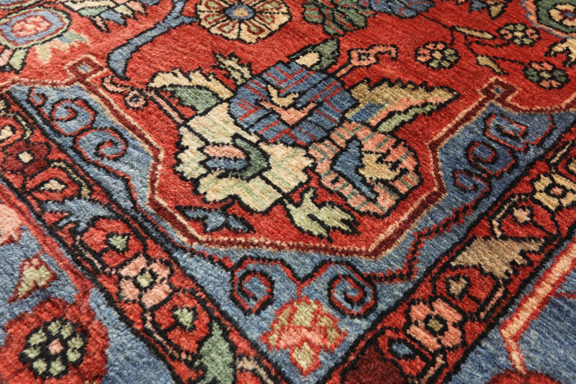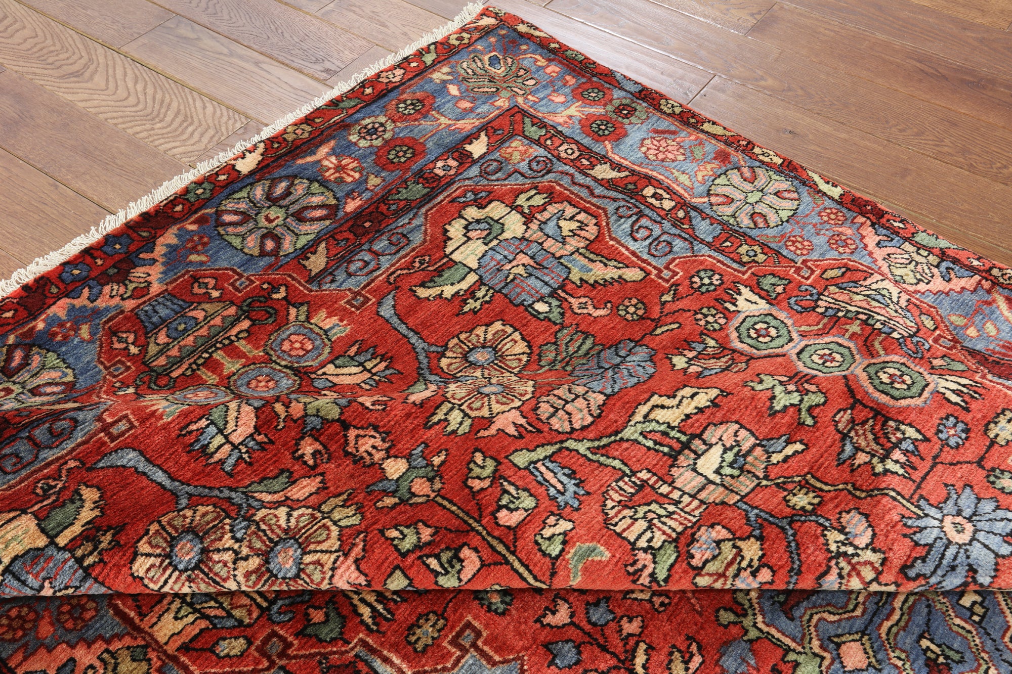 The quality of Nahavand rugs is very high this is thanks to the wool that is used to create these beautiful durable rugs. Most of the design elements in the Nahavand rugs are geometrical motifs. They often have β€œleaf’ like medallions in the center with flowers and twigs all around the background. The dominating colors for these rugs are often pale rust reds, beige, and many more.