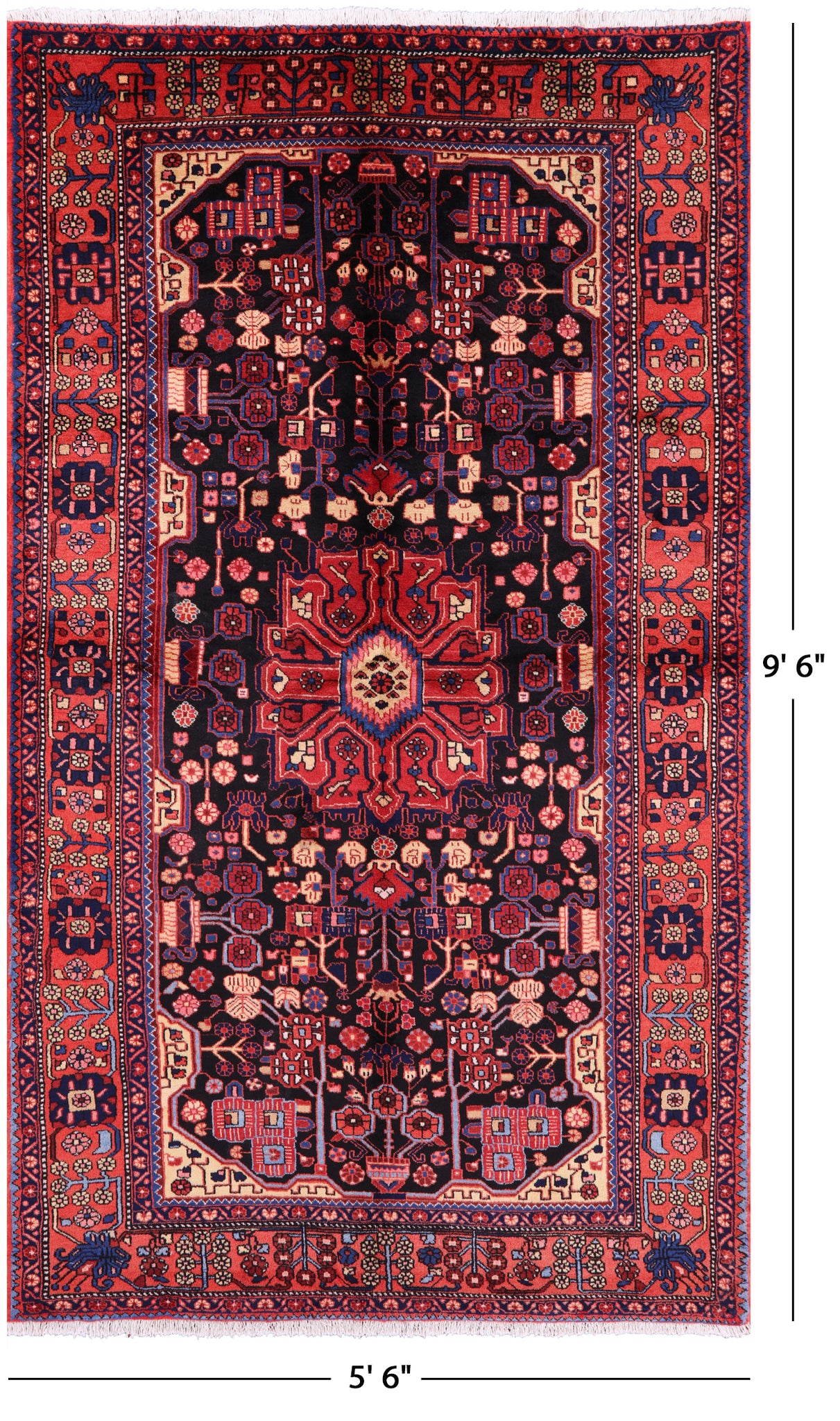 Black New Authentic Persian Nahavand Hand Knotted Rug - 5' 6" X 9' 6"