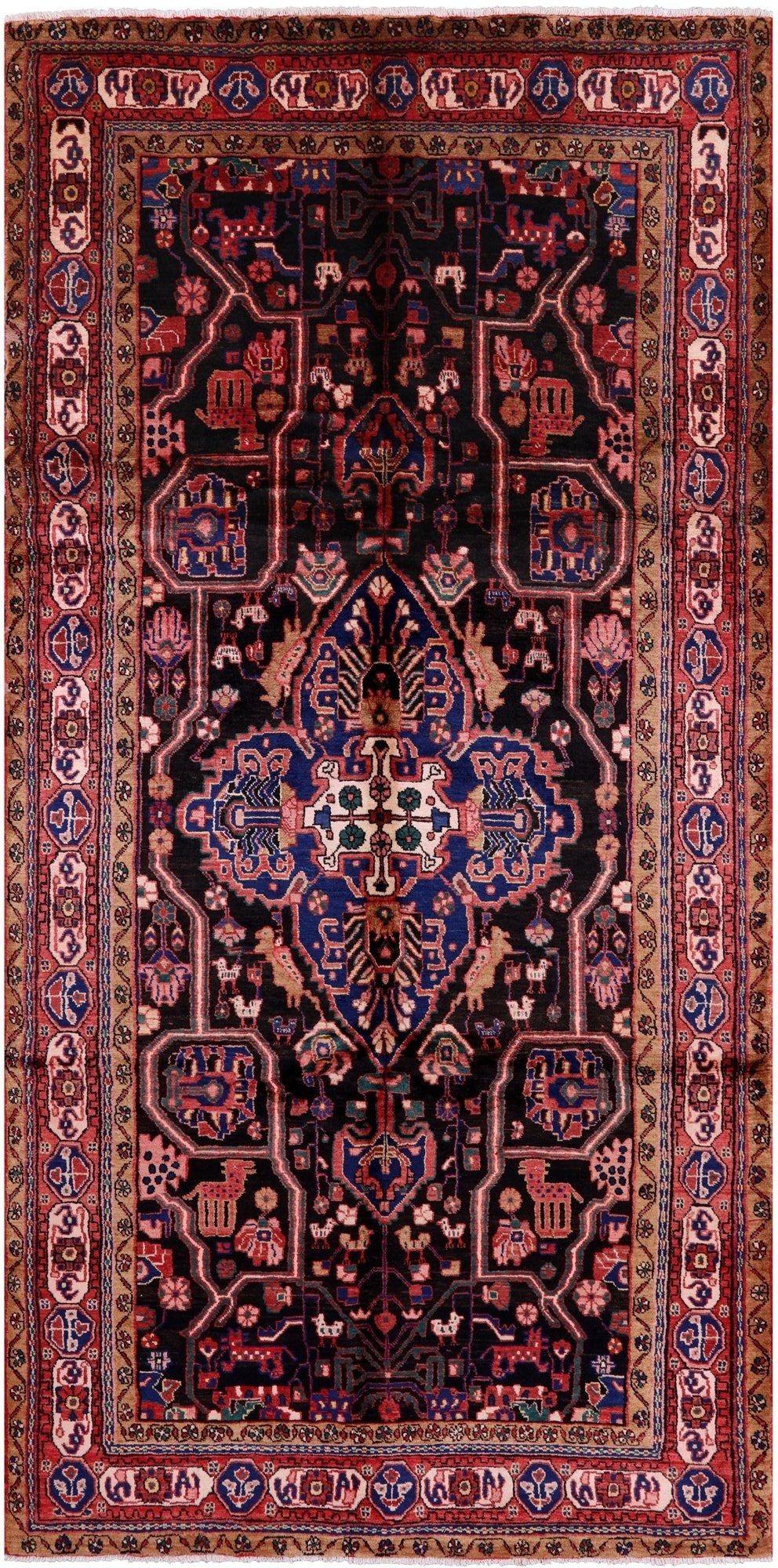 Black New Authentic Persian Nahavand Wool Rug - 5' 5" X 10' 10"