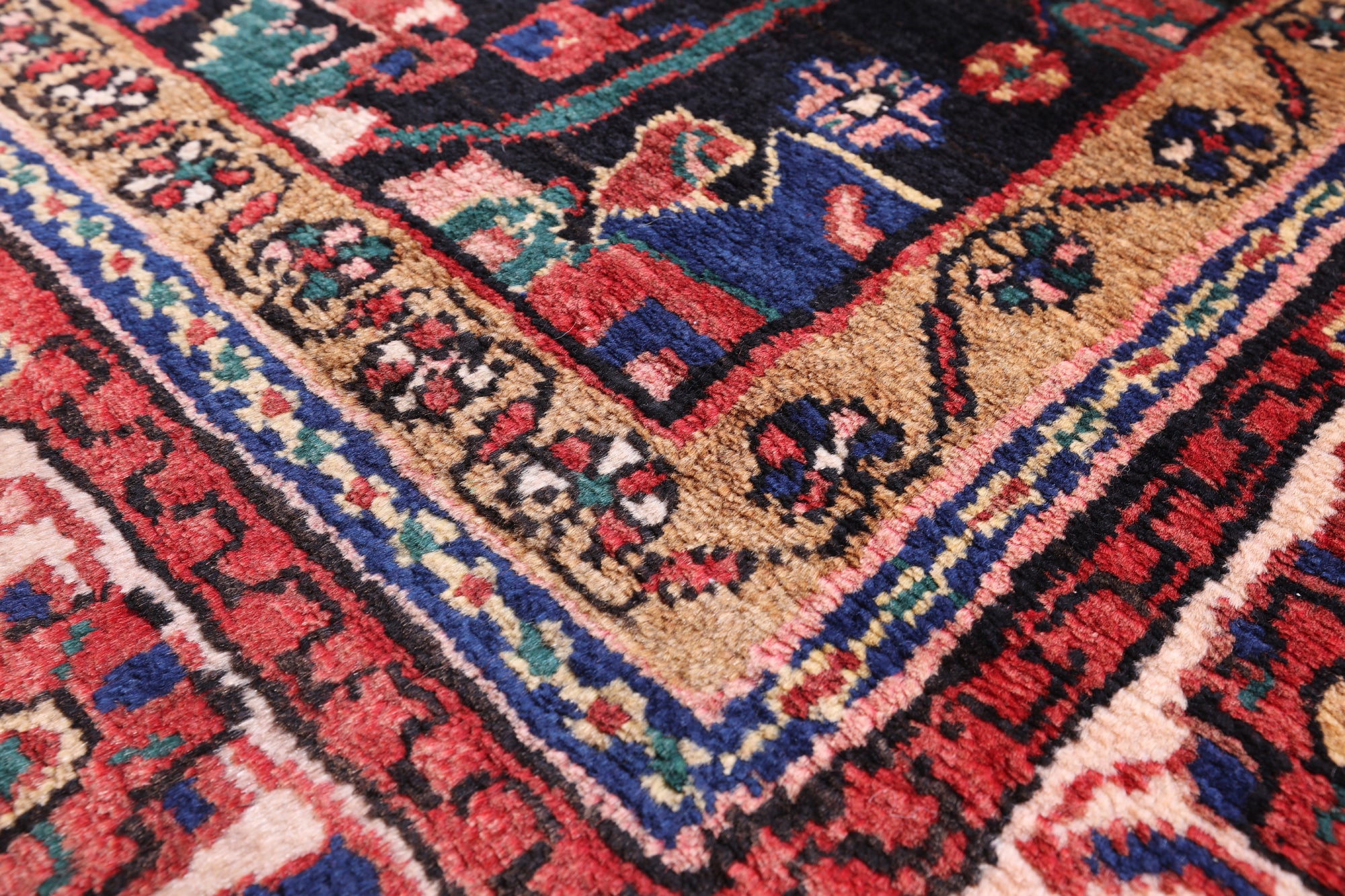 The quality of Nahavand rugs is very high this is thanks to the wool that is used to create these beautiful durable rugs. Most of the design elements in the Nahavand rugs are geometrical motifs. They often have β€œleaf’ like medallions in the center with flowers and twigs all around the background. The dominating colors for these rugs are often pale rust reds, beige, and many more.