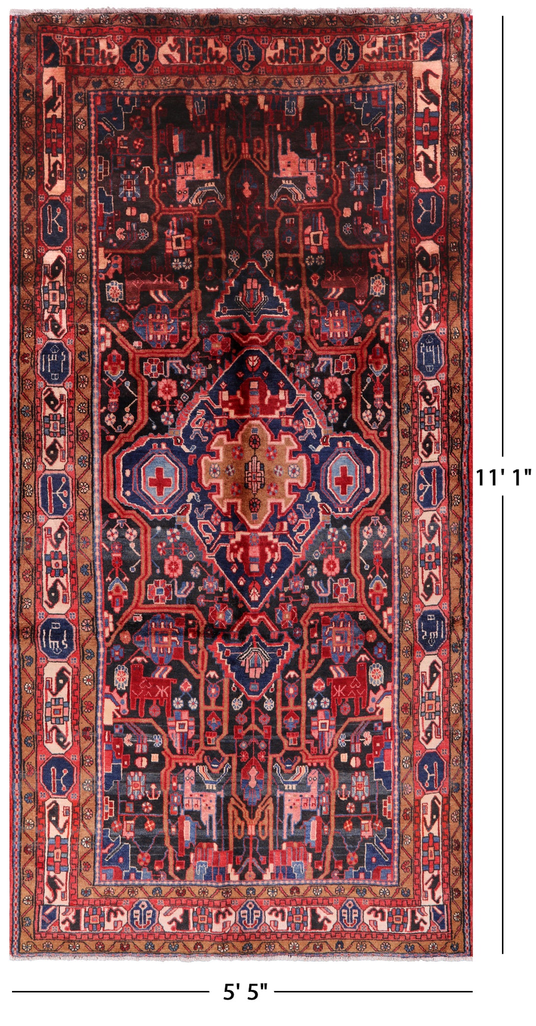 Authentic Persian Nahavand Wool Rug - 5' 5" X 11' 1"
