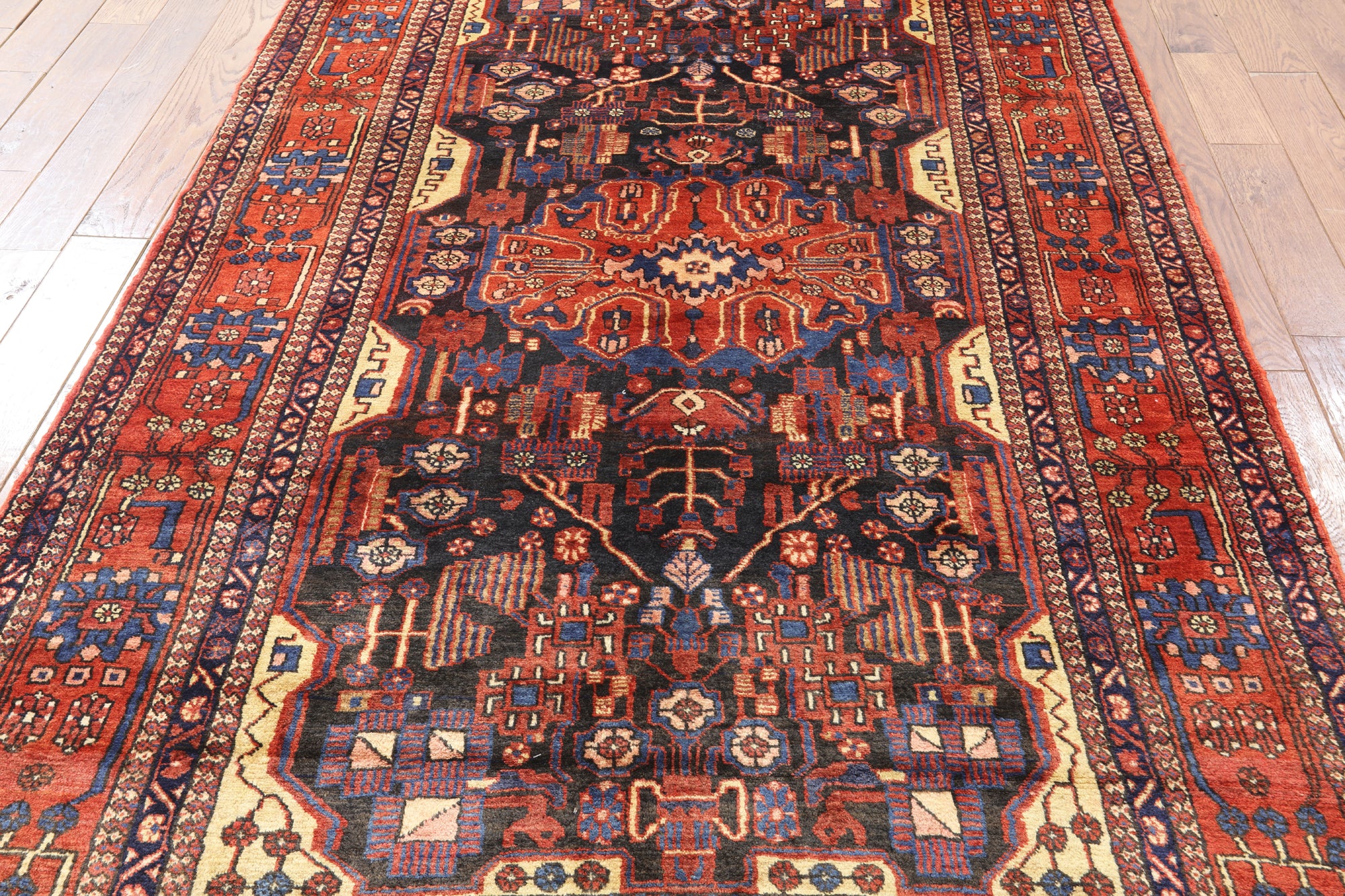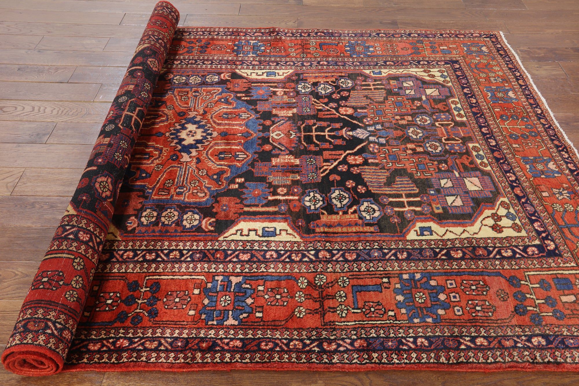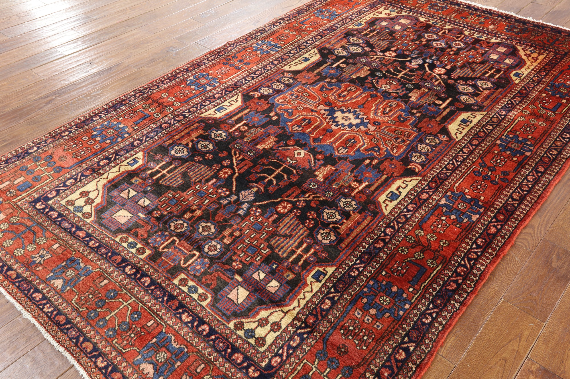 The quality of Nahavand rugs is very high this is thanks to the wool that is used to create these beautiful durable rugs. Most of the design elements in the Nahavand rugs are geometrical motifs. They often have β€œleaf’ like medallions in the center with flowers and twigs all around the background. The dominating colors for these rugs are often pale rust reds, beige, and many more.