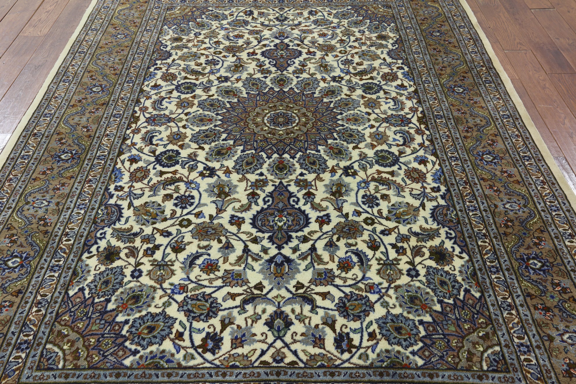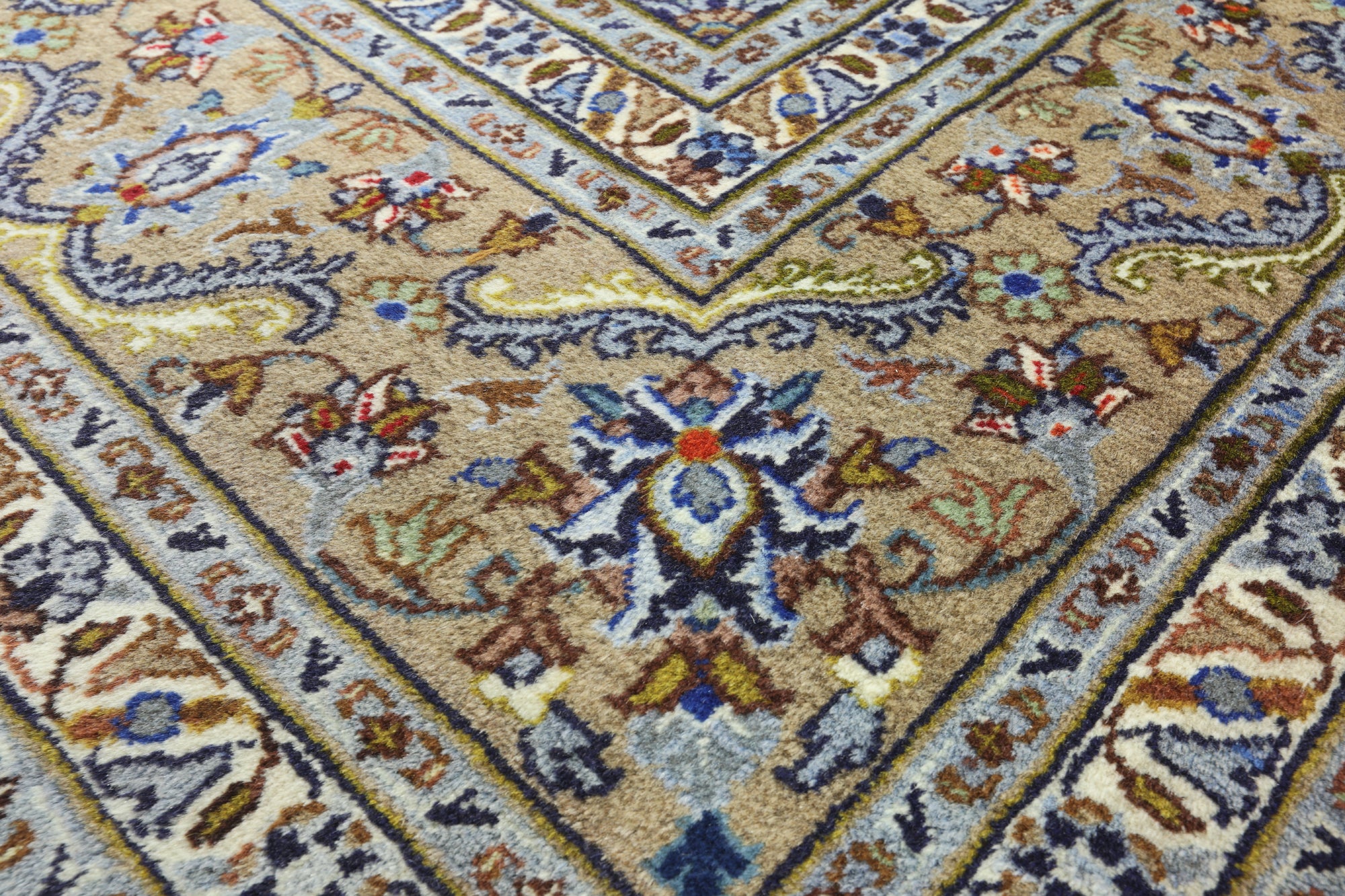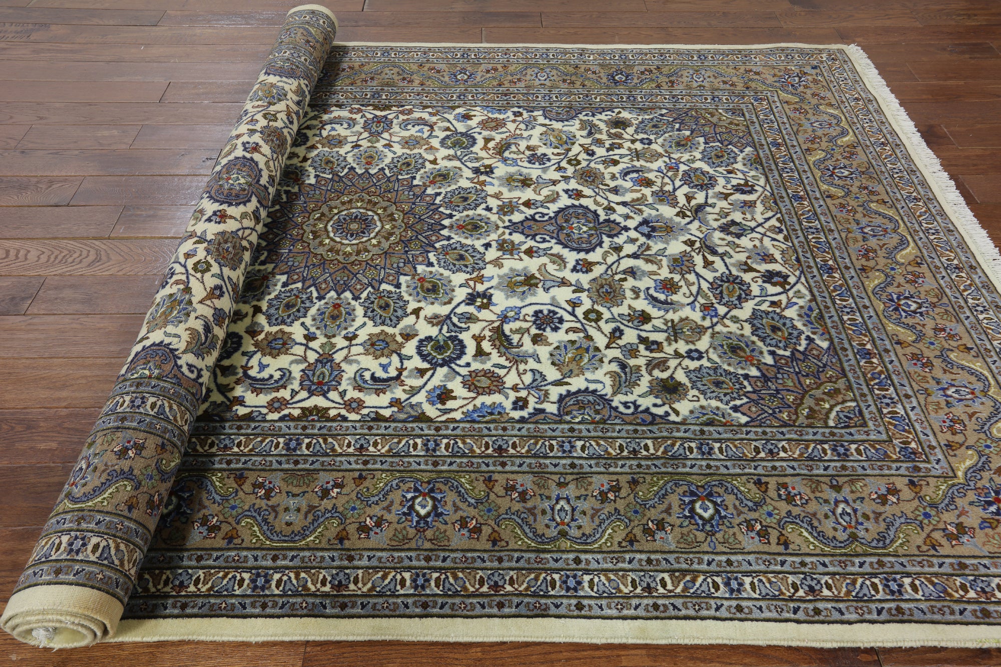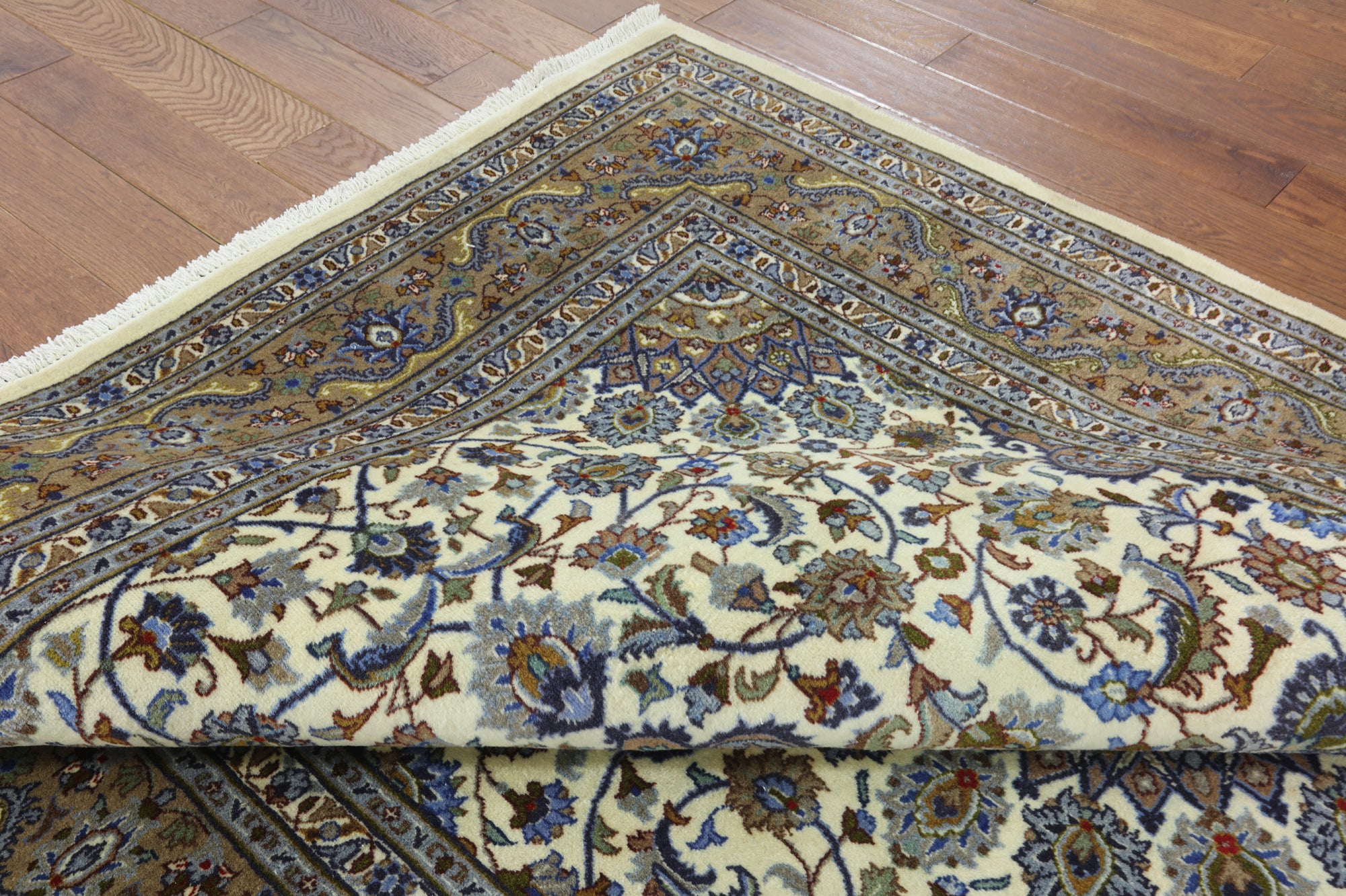 The wool pile for these rugs are amongst the best in Iran, the wool is soft and the pile is tight and thin. Mashhad rugs have curvilinear patterns with single centralized medallions, the corners generally illustrate floral motifs which also occupy most of the background. The main colors for these rugs are dark red, blue, and khaki.