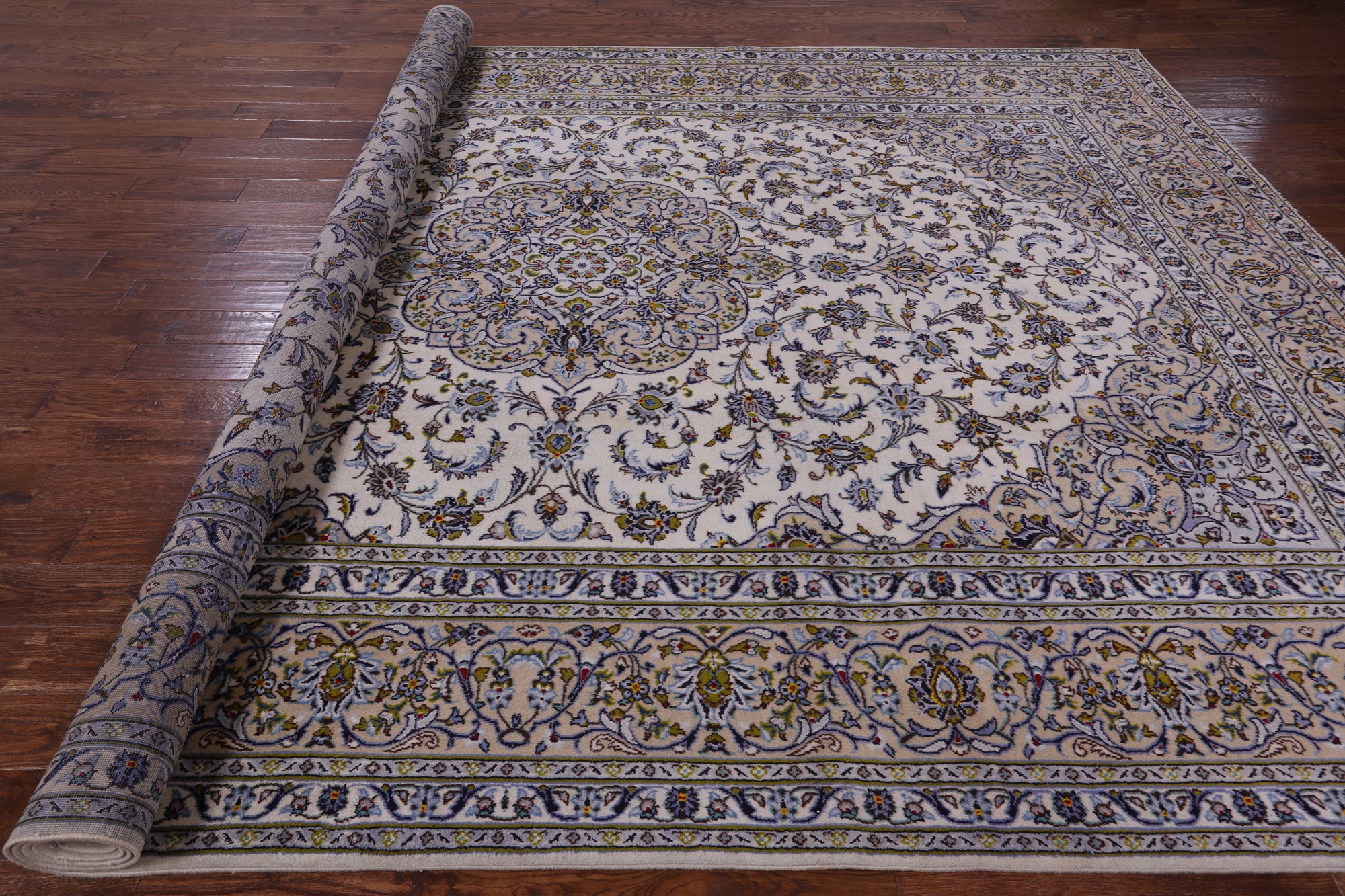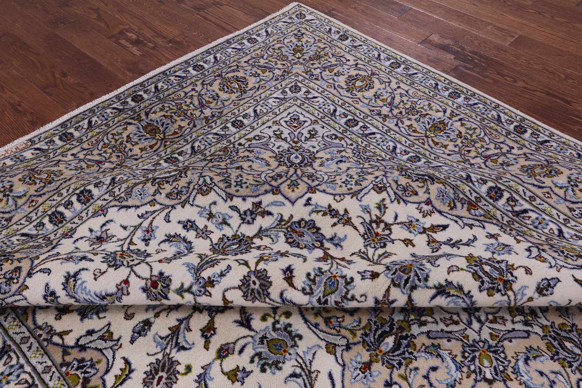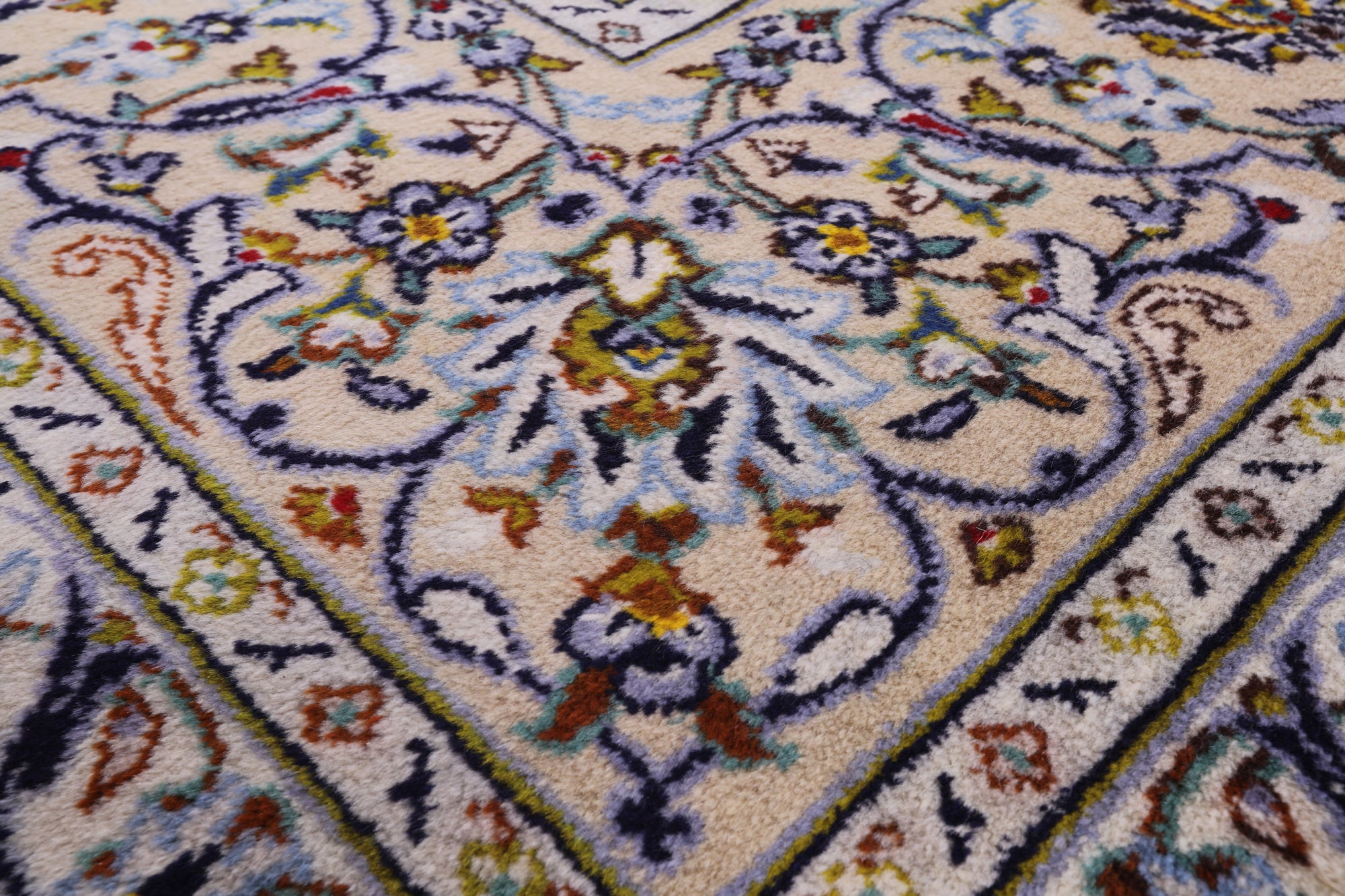 Kashan rugs are amongst the most famous of all the Persian Rugs. They have high quality weaves and their knot count is extremely tight and high. Traditionally Kashan rugs have a central medallion on a red field with navy and ivory boarders. There designs do have silk incorporated into them which highlights the designs details. The wool on these rugs is soft and the pile is tightly knotted.