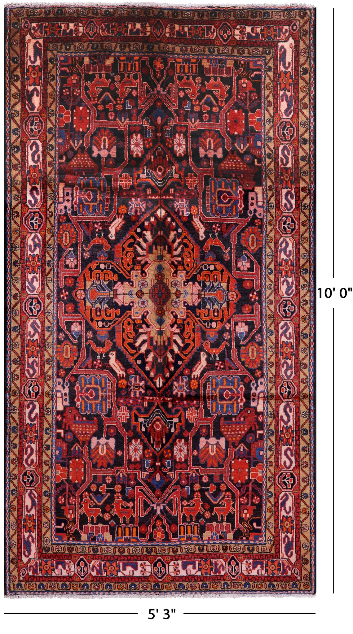 Black New Authentic Persian Nahavand Rug - 5' 3" X 10' 0"