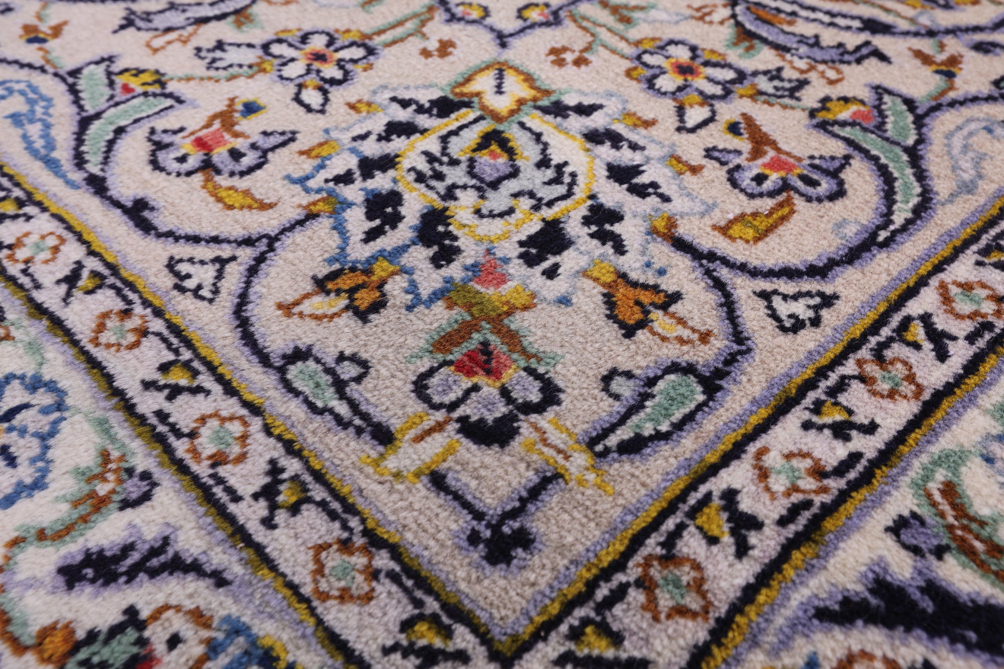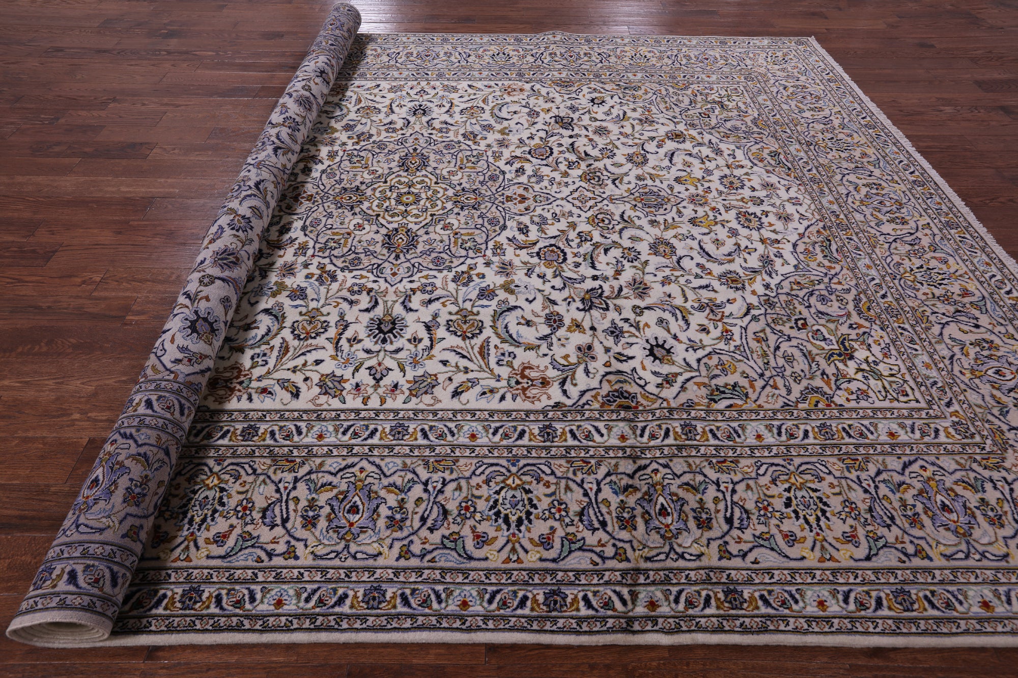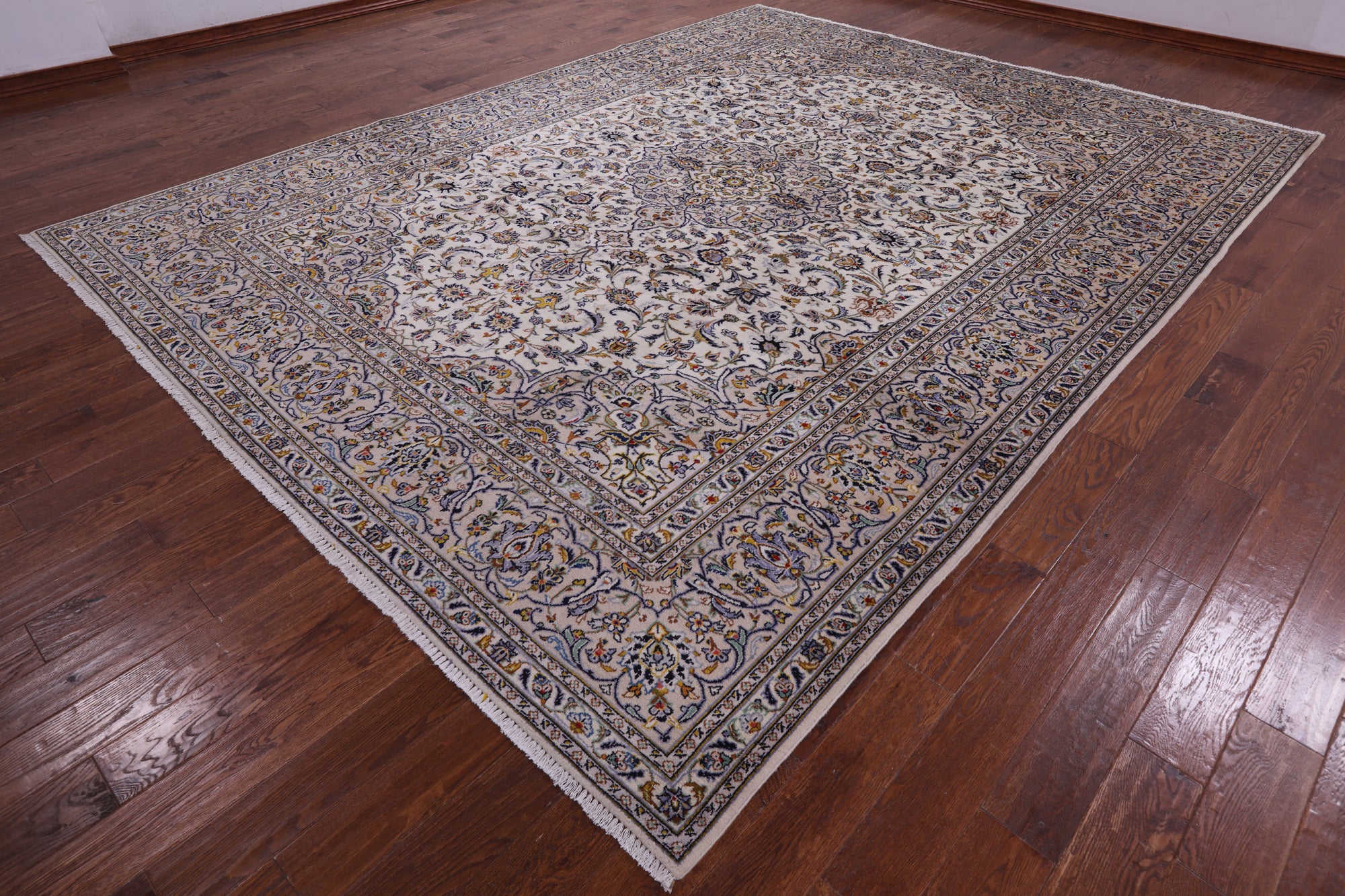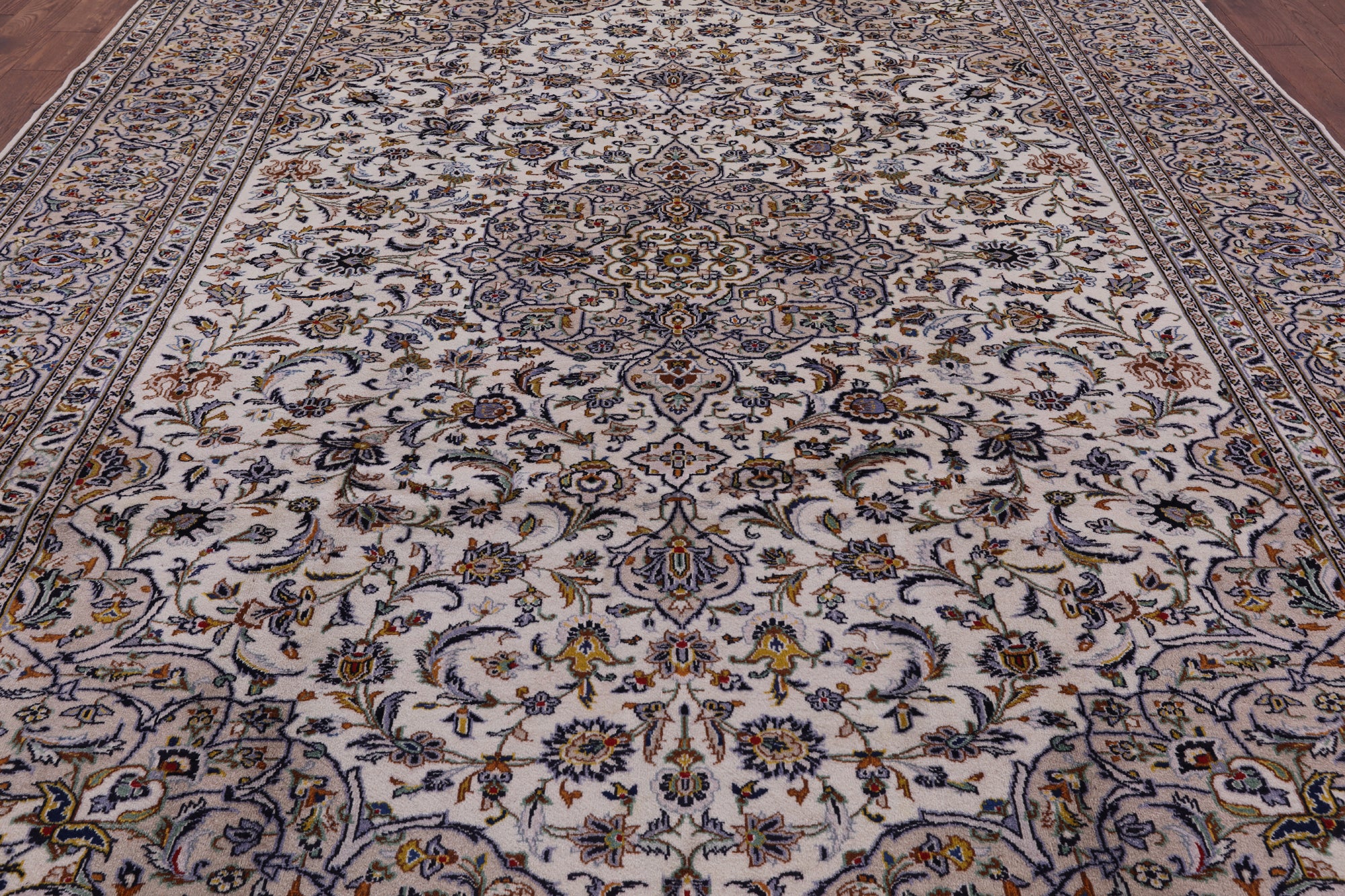 Kashan rugs are amongst the most famous of all the Persian Rugs. They have high quality weaves and their knot count is extremely tight and high. Traditionally Kashan rugs have a central medallion on a red field with navy and ivory boarders. There designs do have silk incorporated into them which highlights the designs details. The wool on these rugs is soft and the pile is tightly knotted.