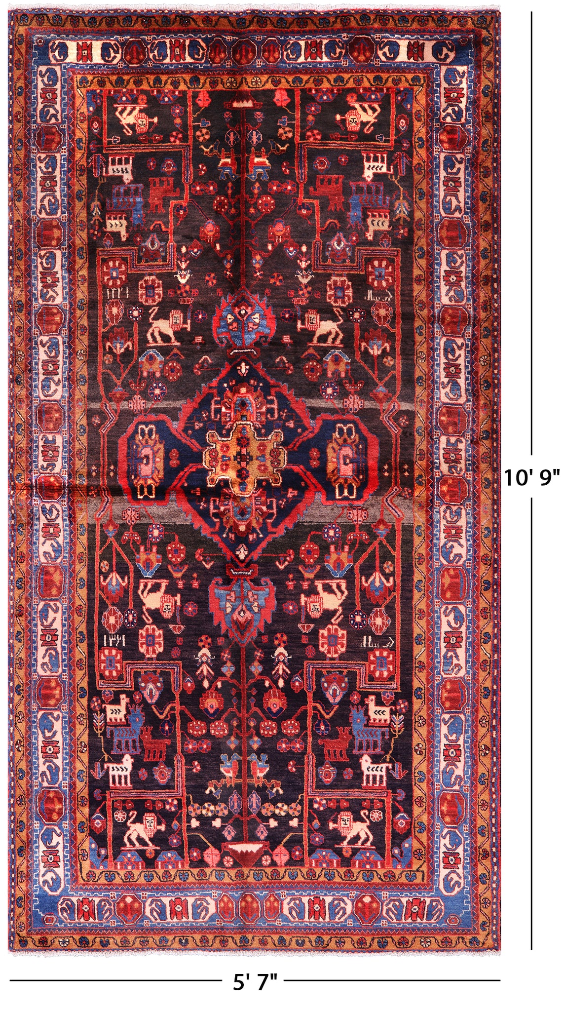 Black New Persian Nahavand Hand Knotted Rug - 5' 7" X 10' 9"