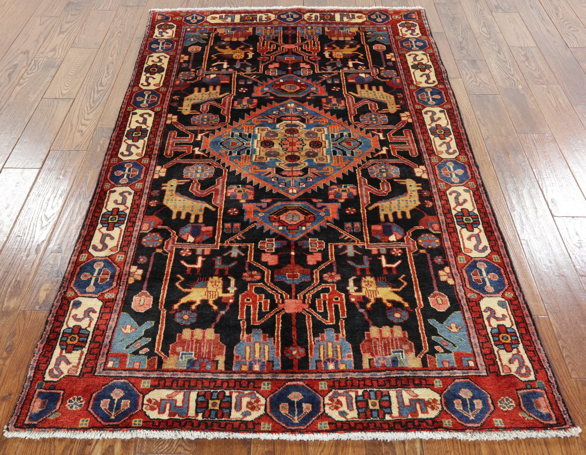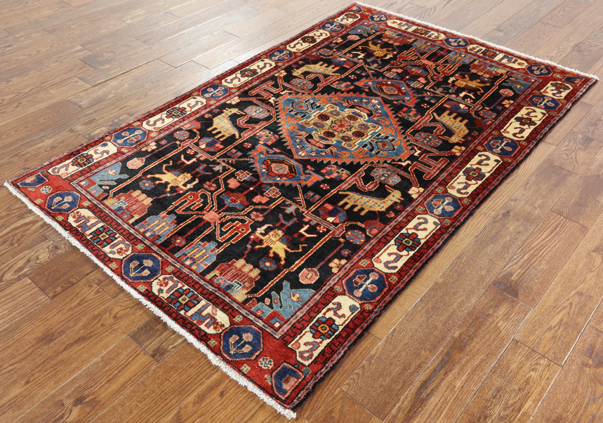 Easily recognizable for their typical patterns and sizes, Hamadan rugs are durable and made of high quality wool. Their design patterns are mostly geometric, but vary with medallion patterns. The colors which dominate their color schemes are, indigo blues, reds, and many more.