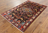 New Persian Hamadan Hand Knotted Wool Rug 4' 3" X 6' 9"