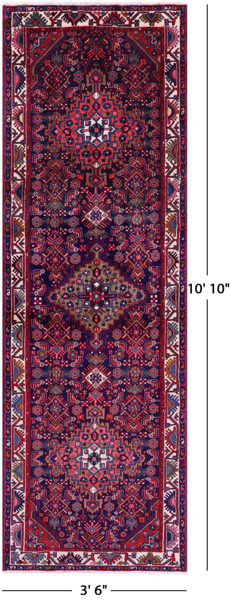 Easily recognizable for their typical patterns and sizes, Hamadan rugs are durable and made of high quality wool. Their design patterns are mostly geometric, but vary with medallion patterns. The colors which dominate their color schemes are, indigo blues, reds, and many more.