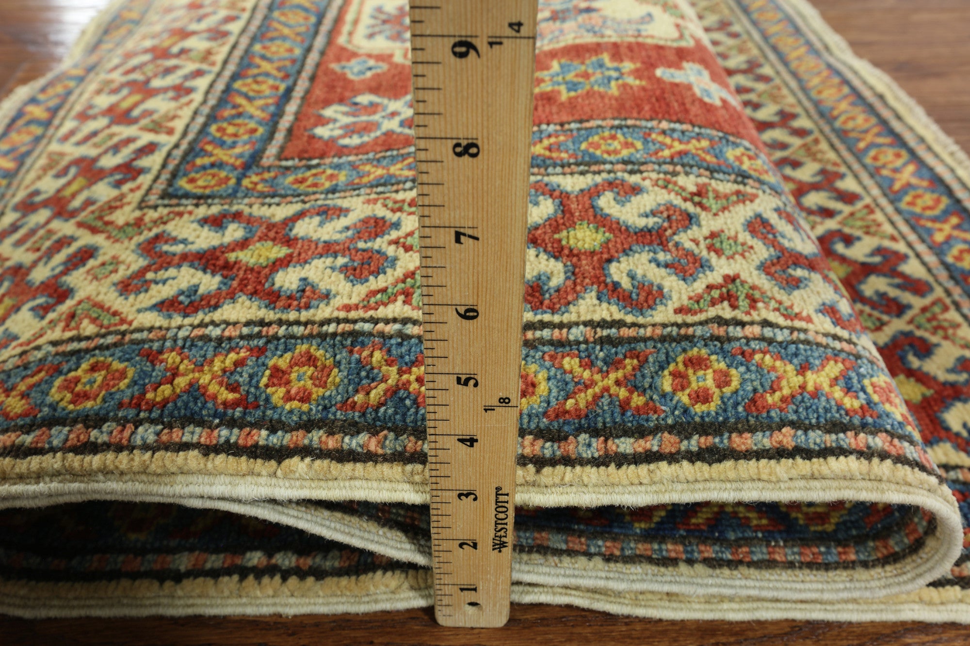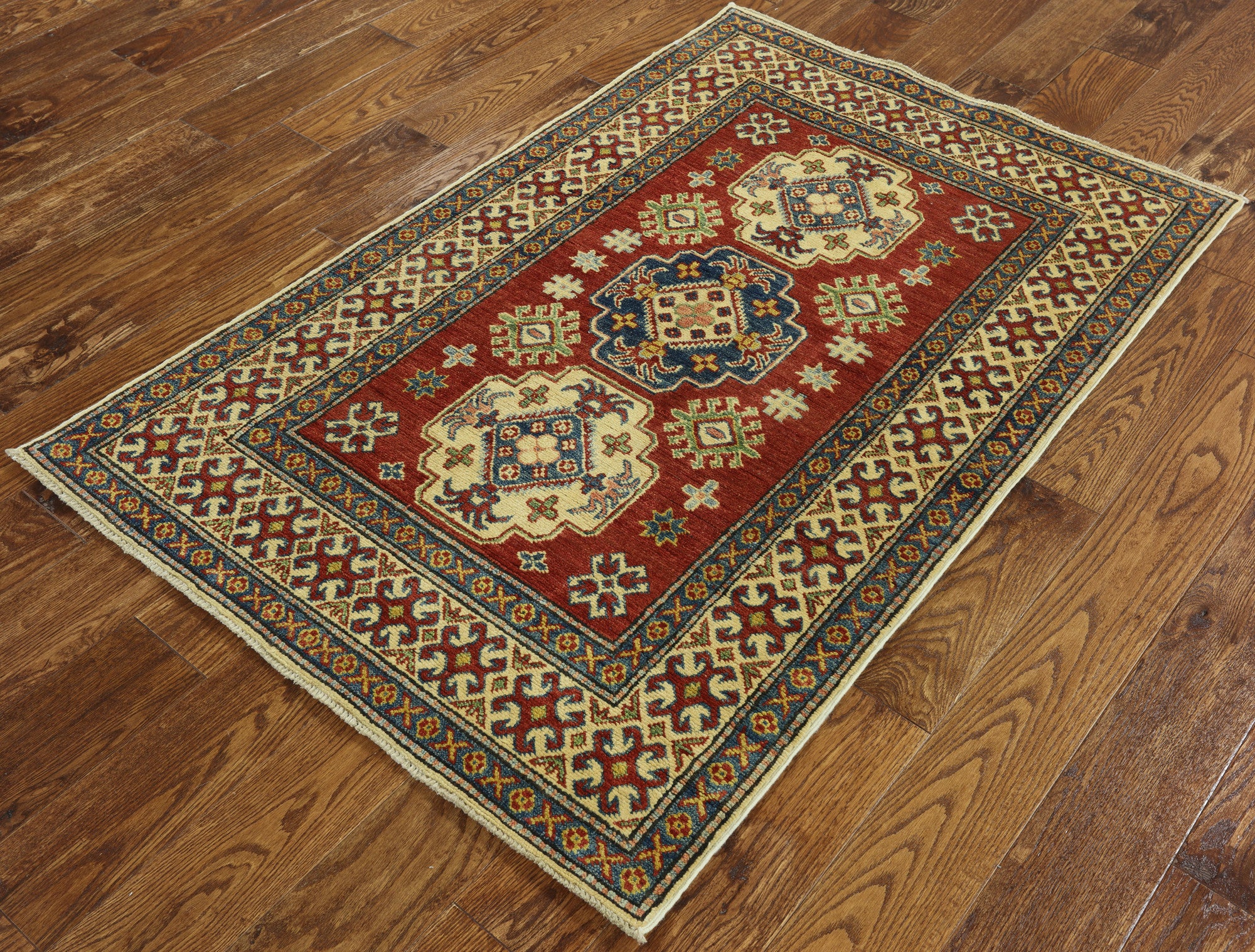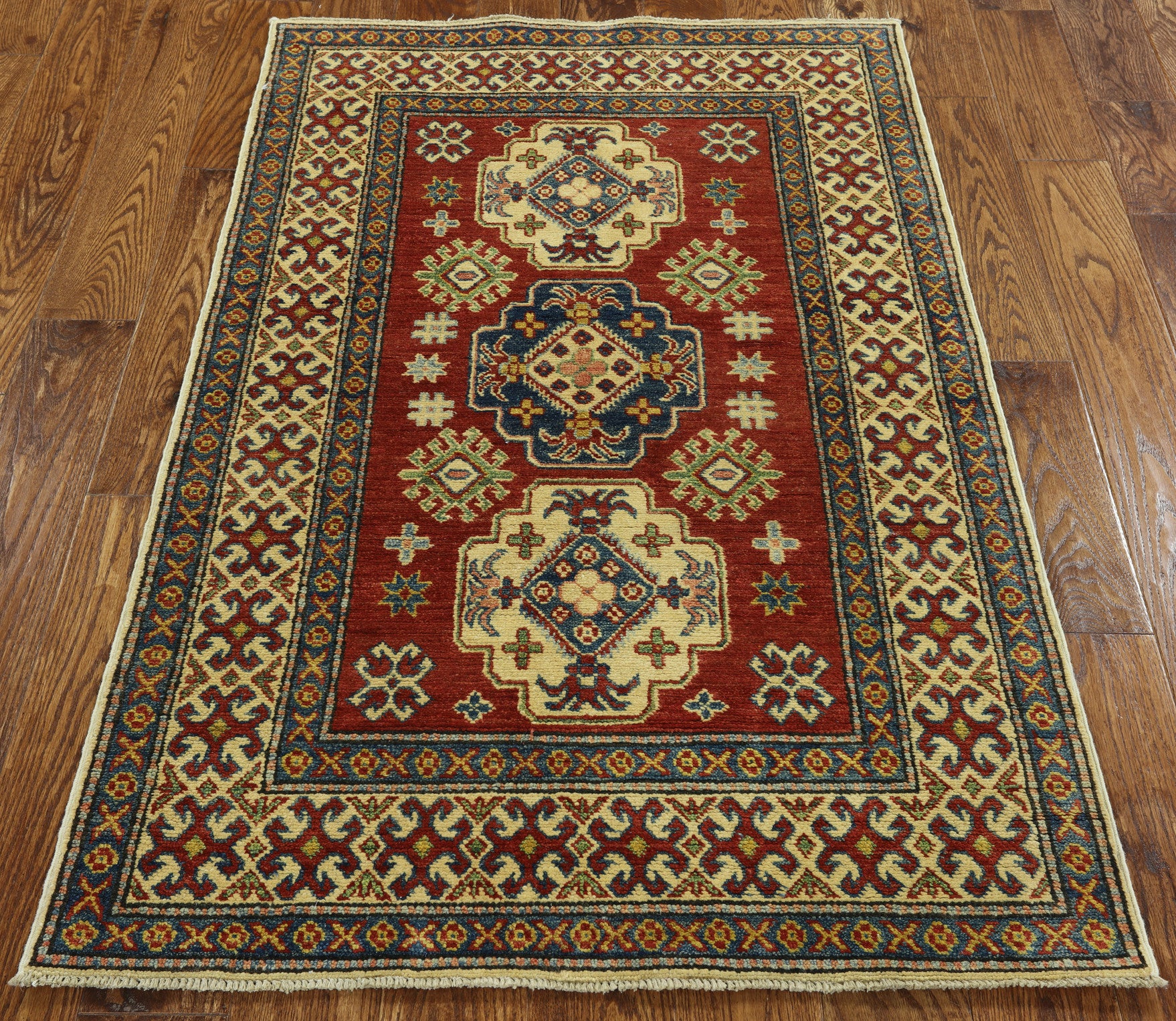 Kazak Rugs are popular for their stunning geometric designs & high quality dyes. Kazak patterns tend to be red, yellow/gold and blue. Designs include, but are not limited to animals, flowers, medallions, & iconic figures such as geometric people/ and animals & symbolic motifs.