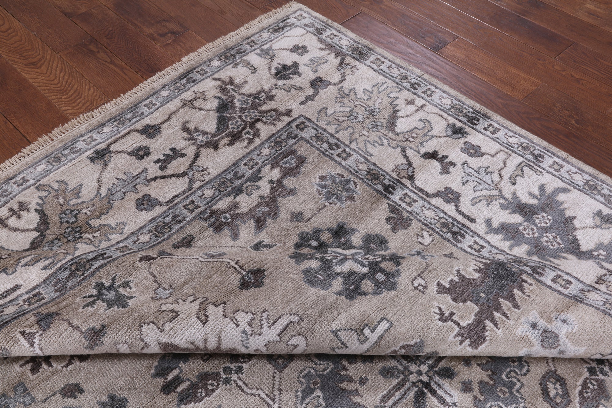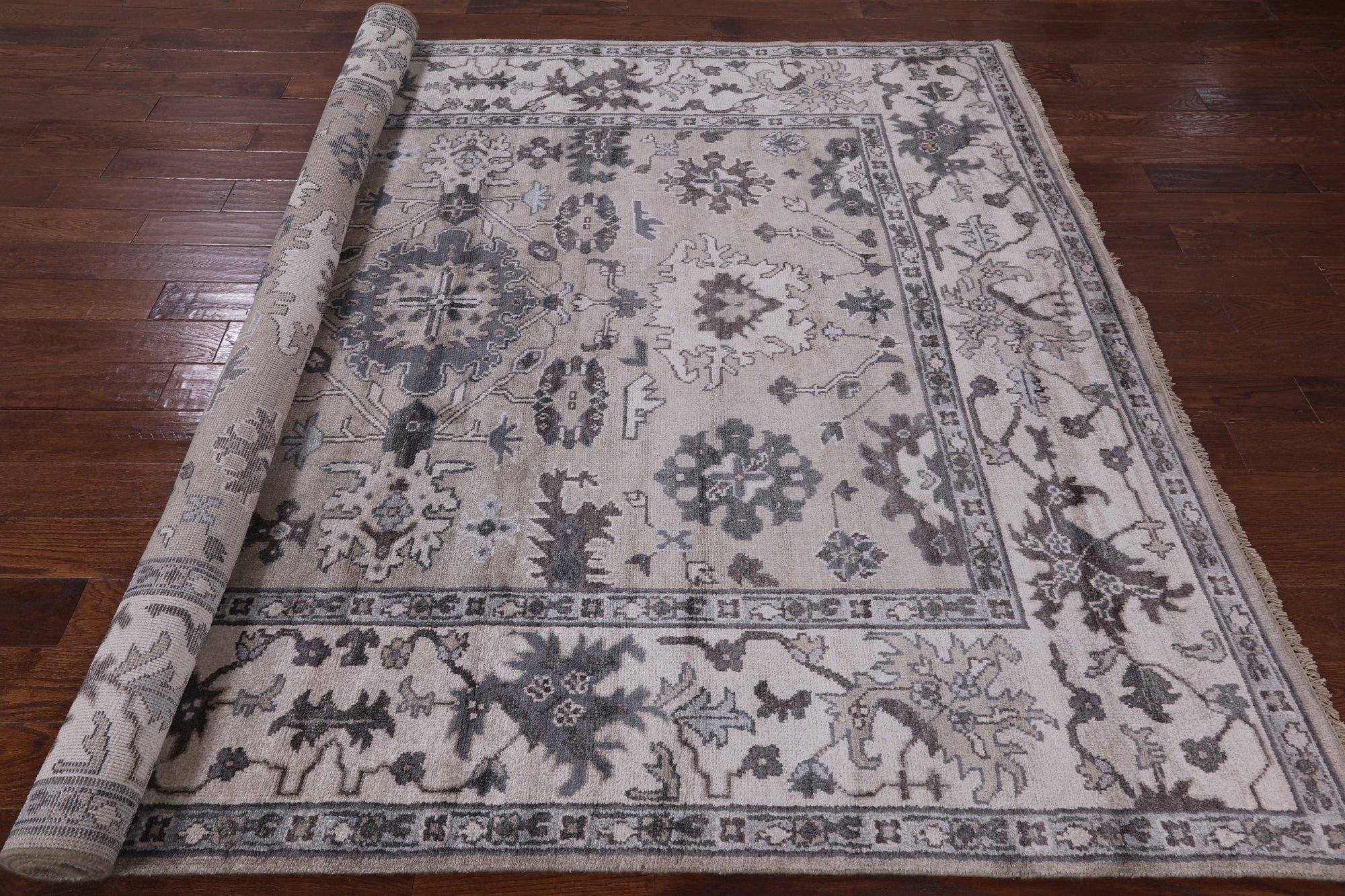 Oushak Rugs are distinctive in both pattern and color palette. Most have a blue, green, dark ivory, or gold & their designs are typically based on geometric motifs and vine / leave motifs. All colors are created with natural vegetable dyes, and the hushed tones are enhanced by the soft, lustrous wool texture. The foundation of an Oushak is cotton while the pile is wool. Oushak rugs are also double-knotted for durability.