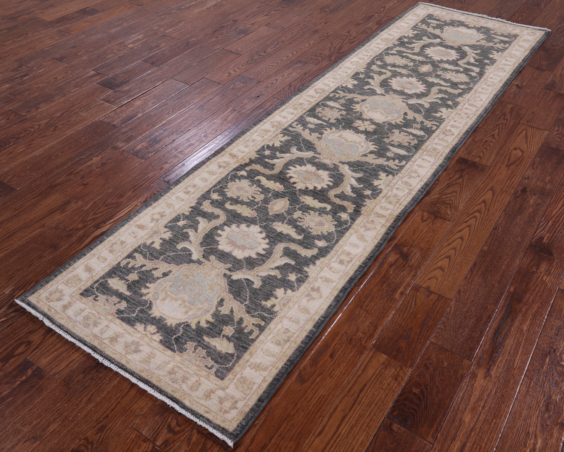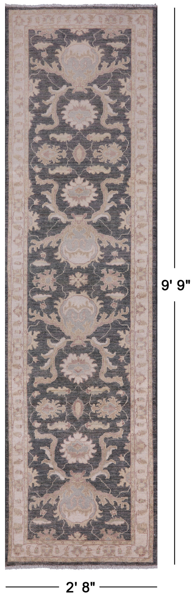Grey Peshawar Handmade Wool Runner Rug - 2' 8" X 9' 9"
