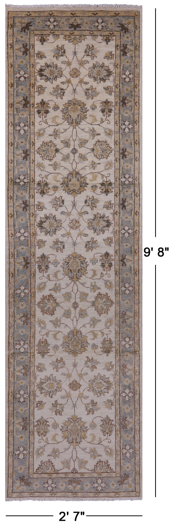 Ivory Peshawar Handmade Wool Runner Rug - 2' 7" X 9' 8"