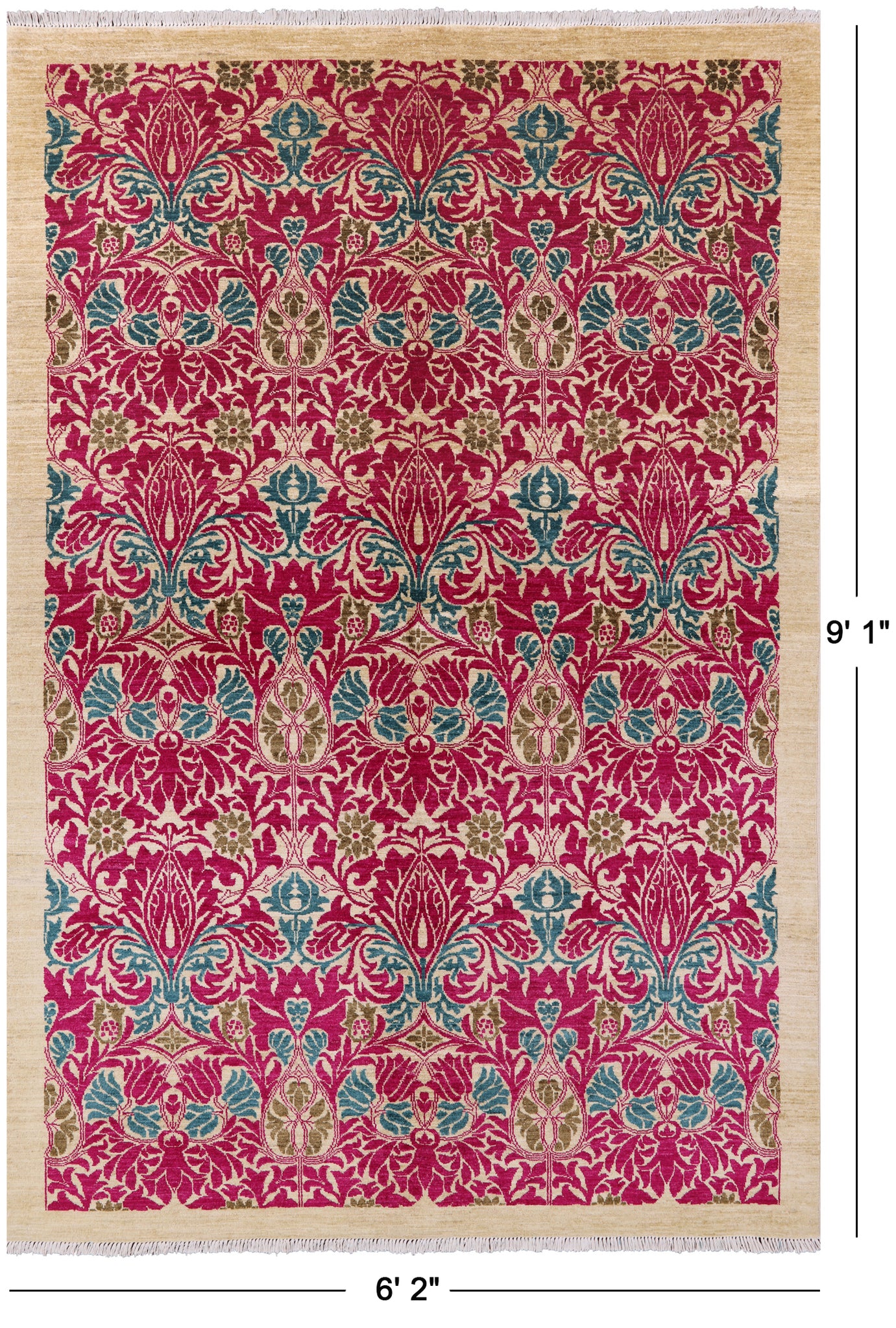 Ivory William Morris Hand Knotted Wool Area Rug - 6' 2" X 9' 1"