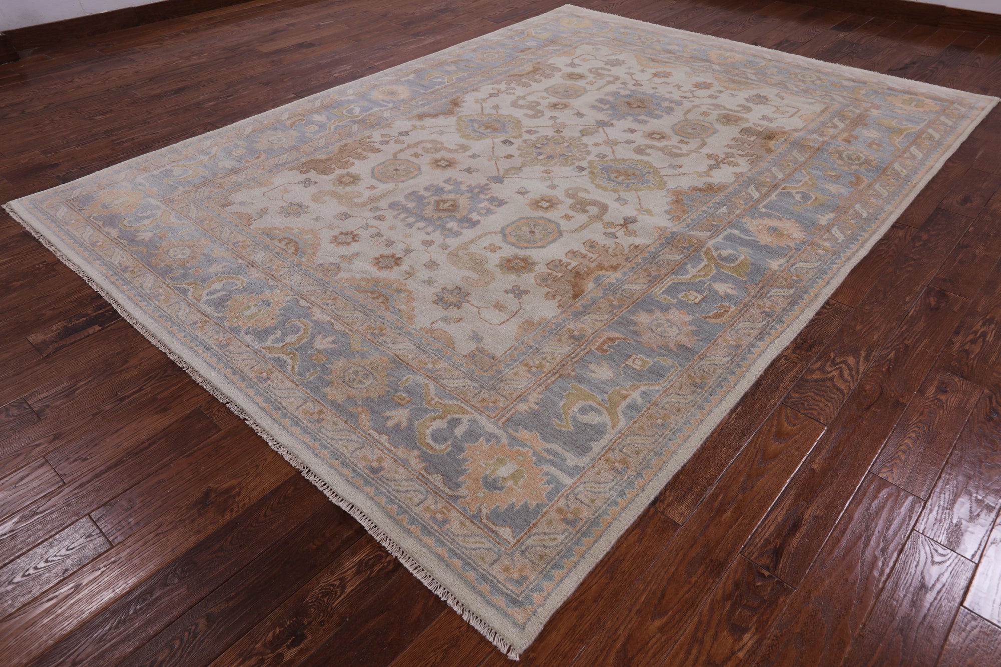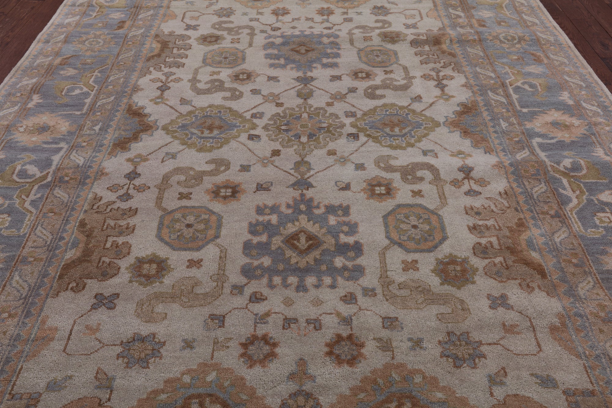 Ivory Turkish Oushak Hand Knotted Wool Area Rug - 8' 7" X 11' 10"