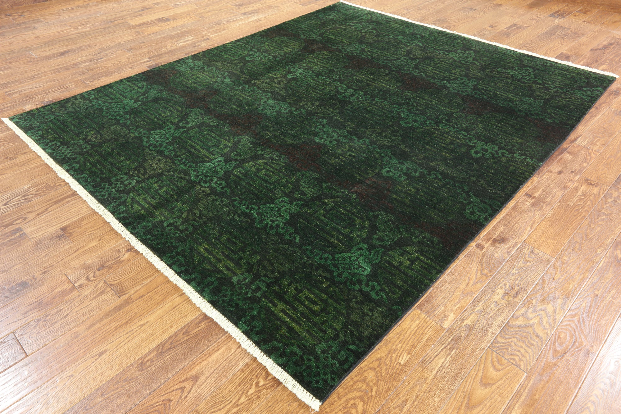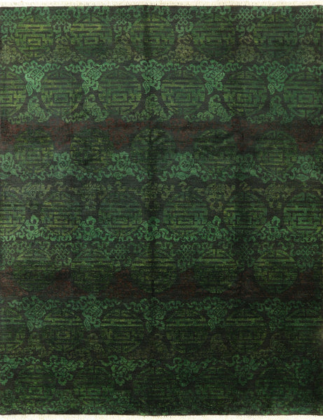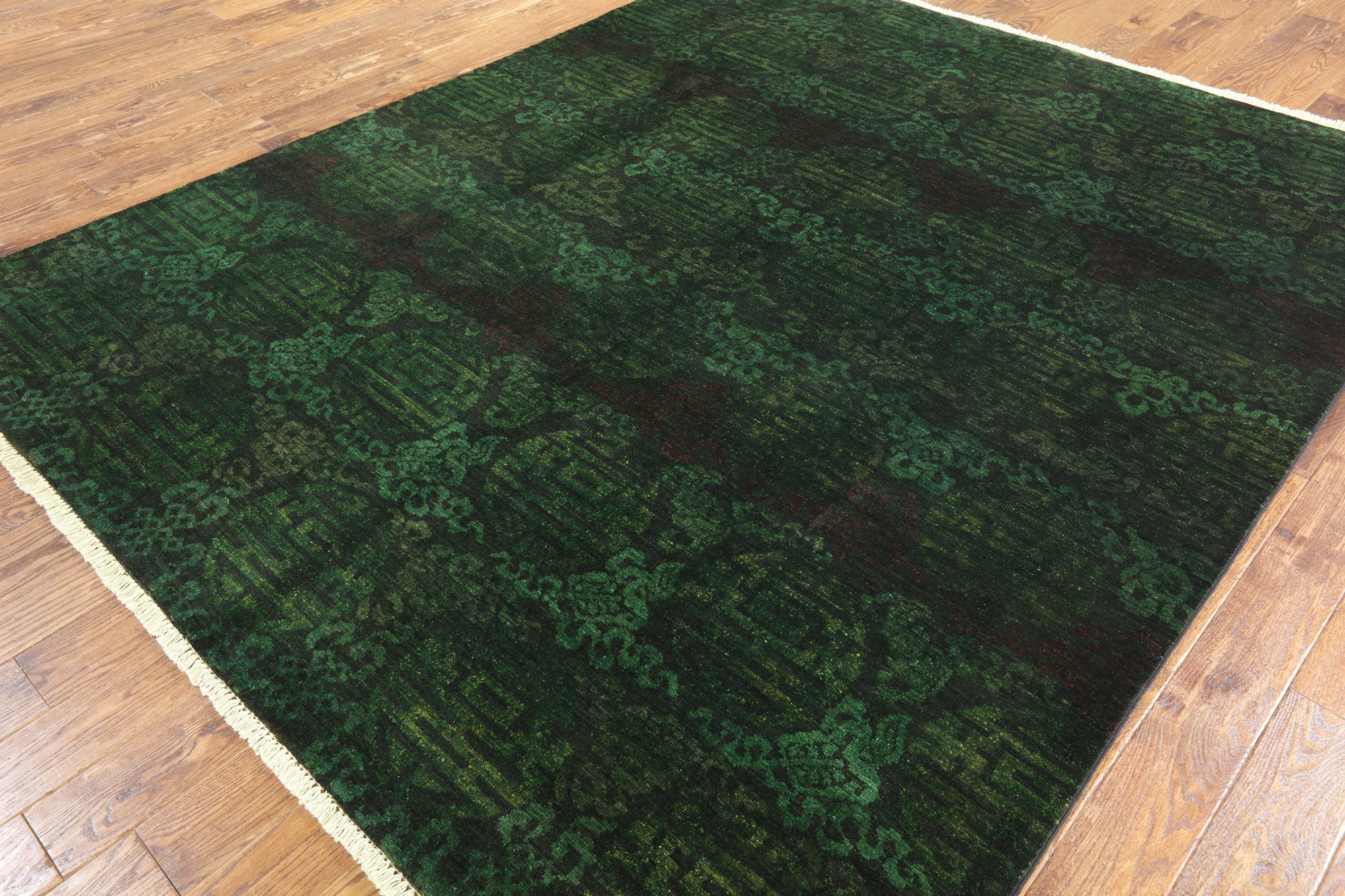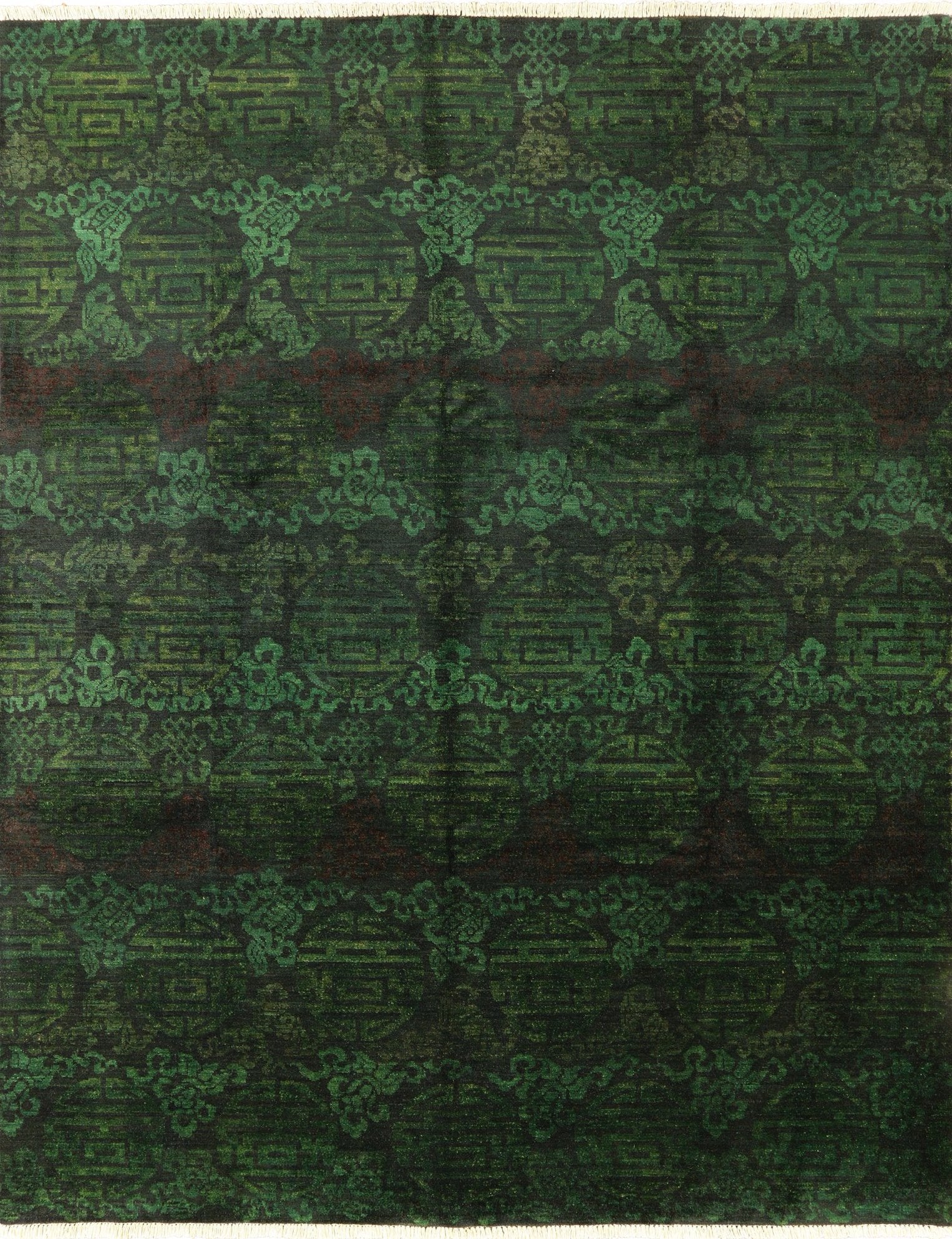 Over-dyed rugs undergo a series of processes to neutralize & lift the original color of the rug. This includes a mixture of chemical washes & natural sun bleaching. During this process, the pattern is not removed, but instead the outline of the design is left, creating a foundation ready to be re-imagined. The carpets are then dyed in one color, sometimes repeatedly in order to reach the desired saturation level.