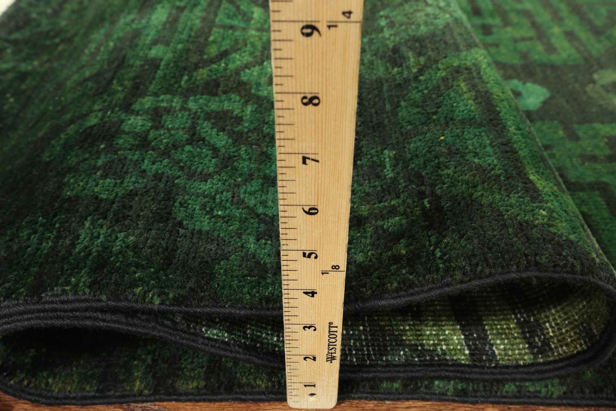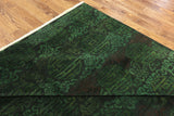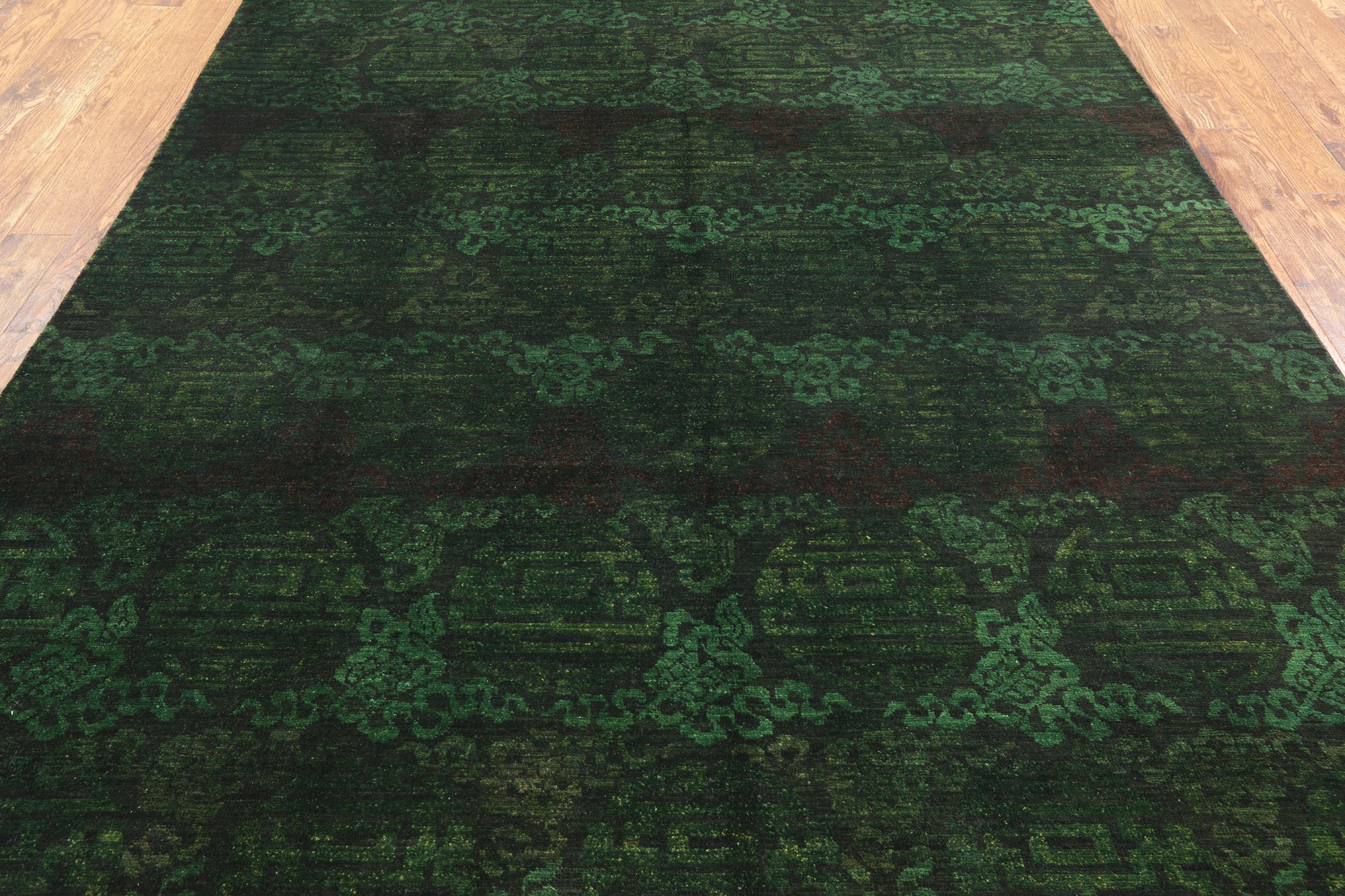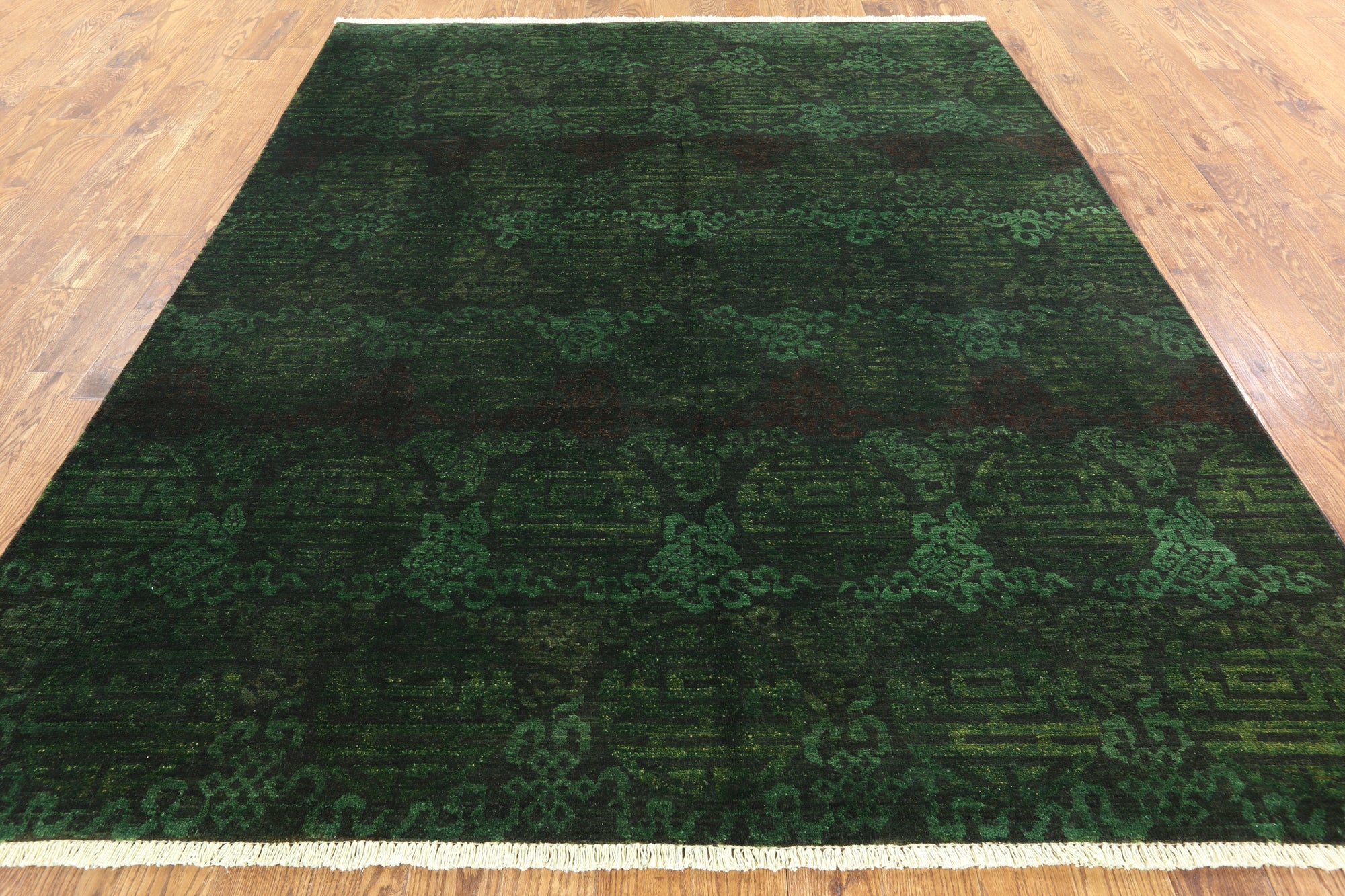 Over-dyed rugs undergo a series of processes to neutralize & lift the original color of the rug. This includes a mixture of chemical washes & natural sun bleaching. During this process, the pattern is not removed, but instead the outline of the design is left, creating a foundation ready to be re-imagined. The carpets are then dyed in one color, sometimes repeatedly in order to reach the desired saturation level.