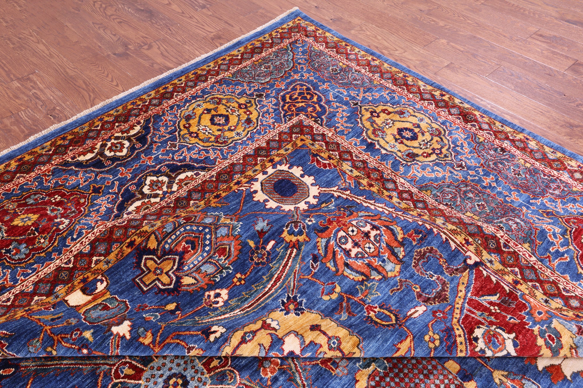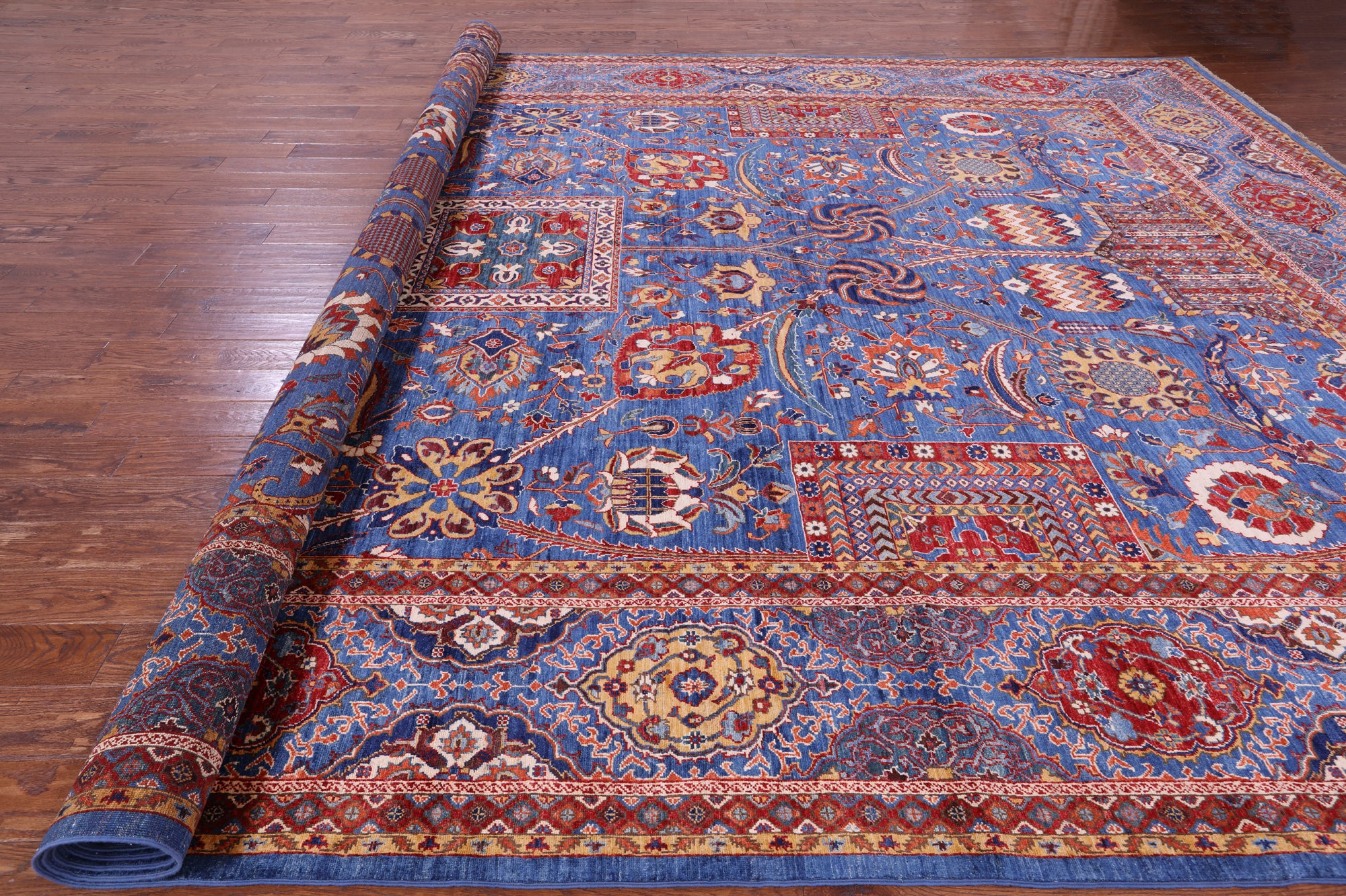 Blue Persian Fine Serapi Hand Knotted Wool Rug - 12' 0" X 18' 1"