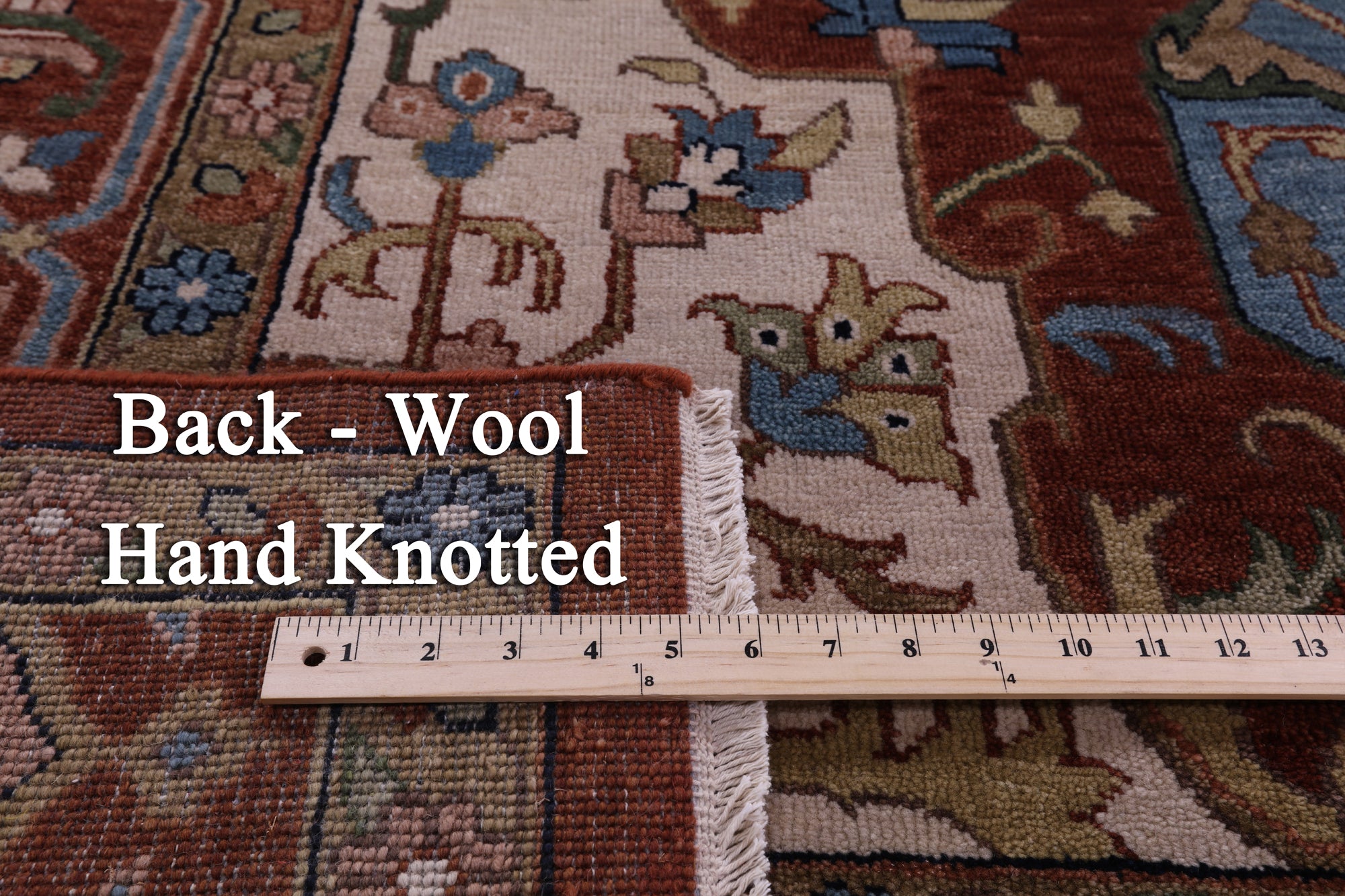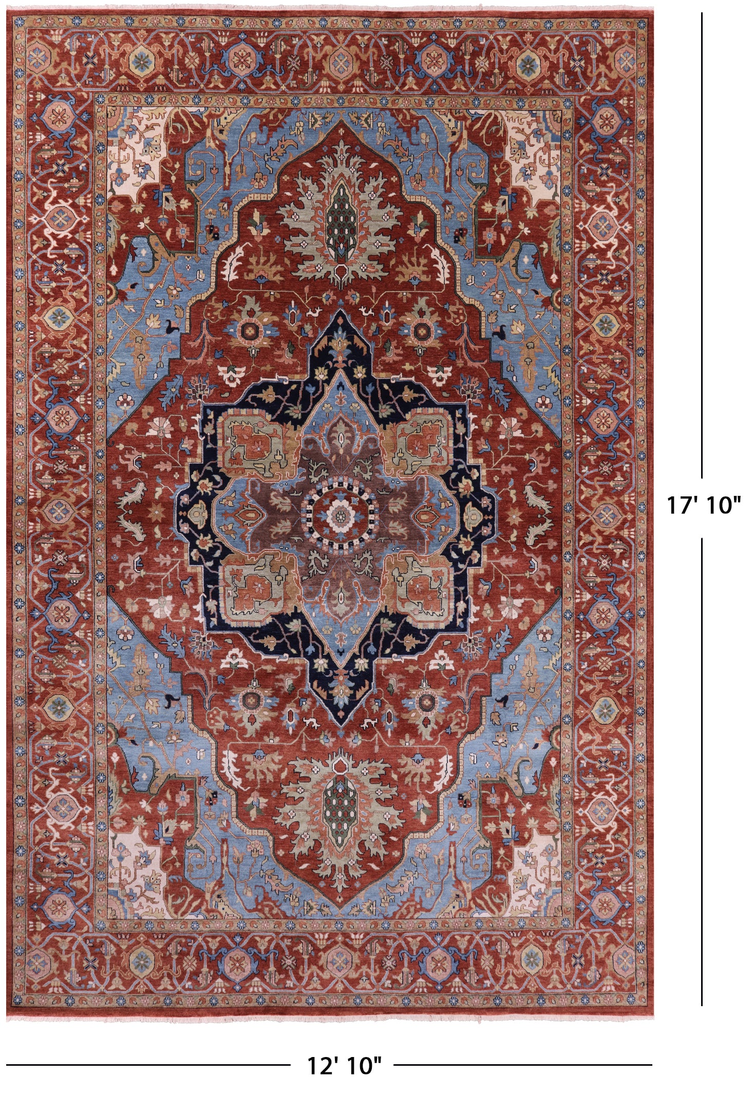 Rust Persian Fine Serapi Hand Knotted Wool Rug - 12' 10" X 17' 10"