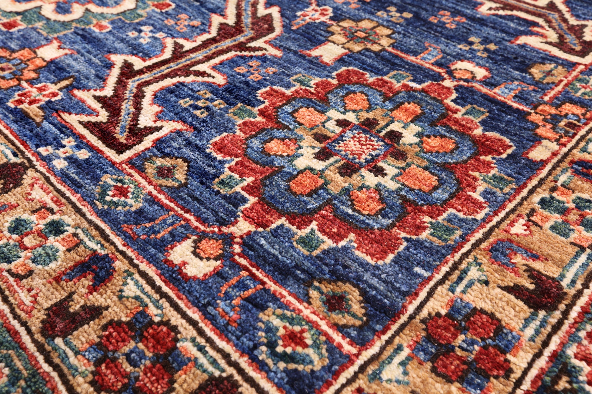 Heriz/Serapi Rugs are hand-knotted with a thick, heavy pile and a rich color palette. Most designs are large geometric medallions or an all over highly stylized floral motif design. Serapi’s are made with pure natural vegetable dyes, hand-spun wool, graphic designs and inspired artistry. Traditional Heriz colors are red, black, blues, & ivory.