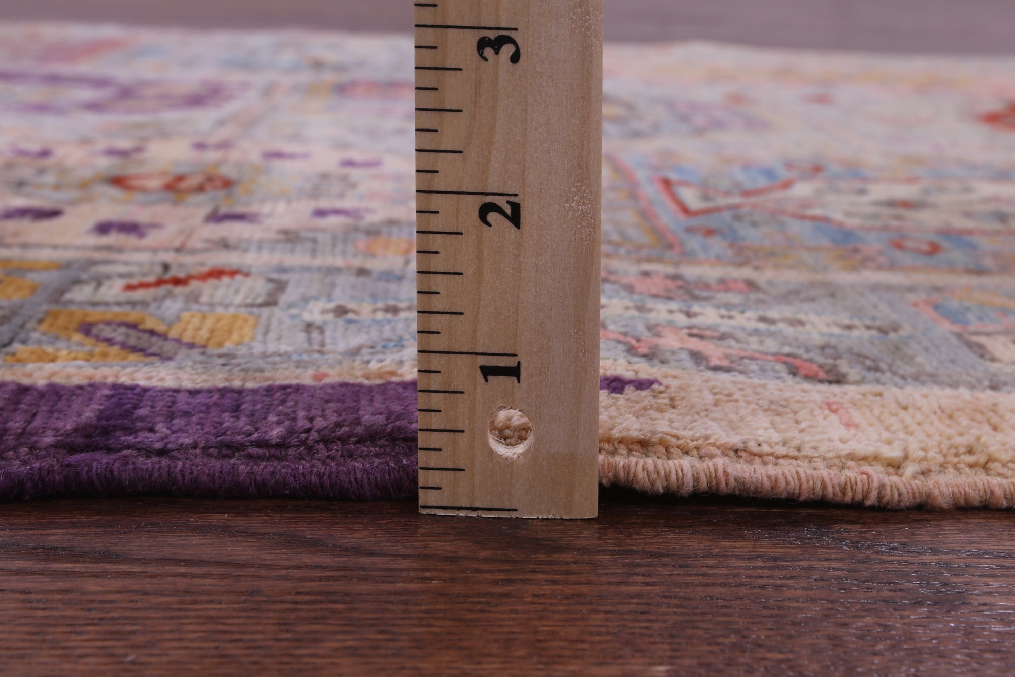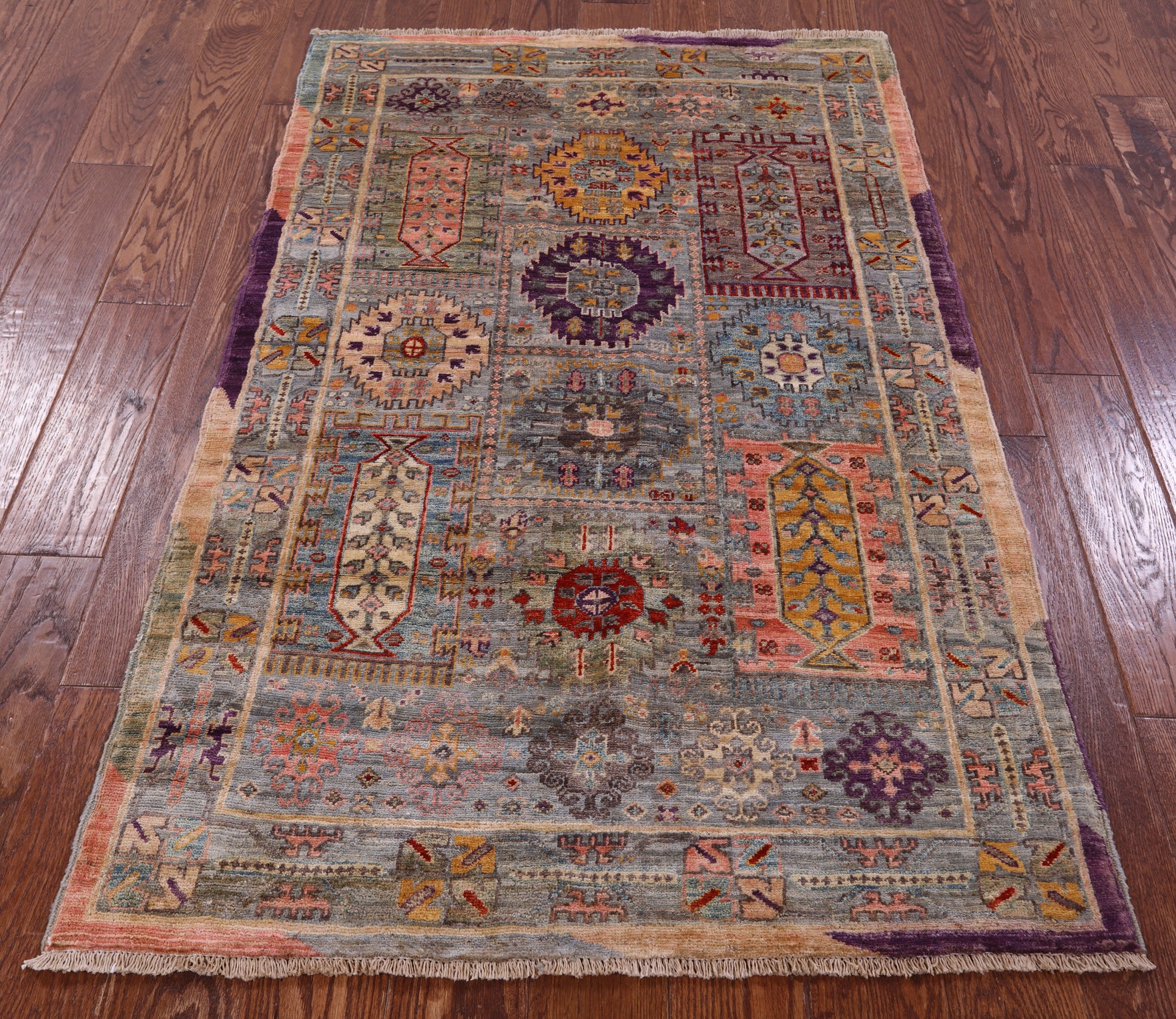 Heriz Serapi rugs are commonly known to be highly durable and are great for high traffic areas. Their medallions can be seen as large and angular, surrounded by more rigid lines and flowy floral patterns or they can also come in strictly geometric floral designs all symmetrically placed. The colors are elegant reds and indigos set against creamy ivory.
