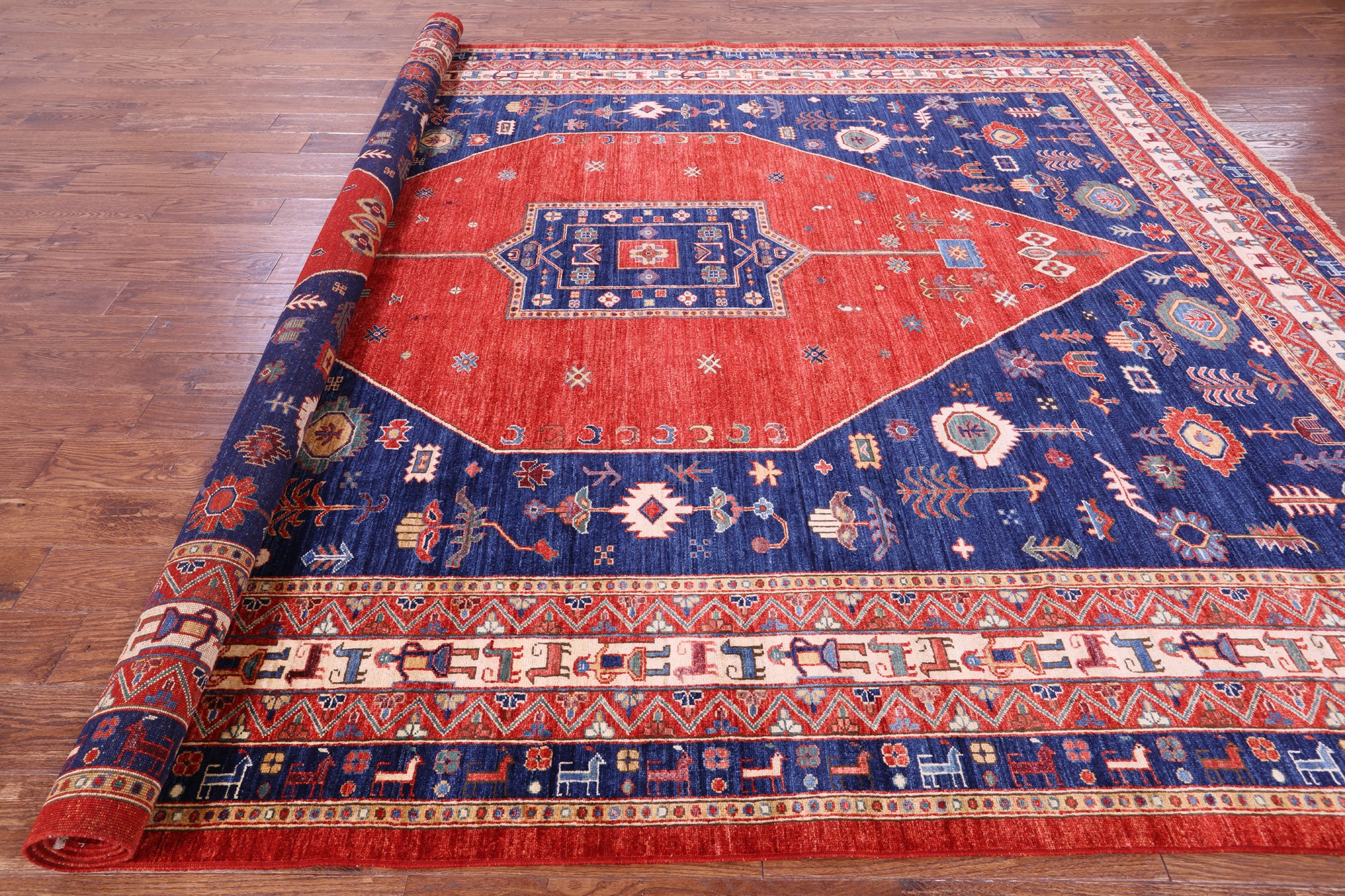 Serapi Rugs also known as Heriz, are known as the best handmade carpets with both geometric and curvilinear floral patterns. Their geometric figures, unique colors, high-quality construction and attention to detail makes Serapi Rugs the most iconic styles of Oriental Rugs. Their colors consist of unique shades of blue, black, red, green & ivory.