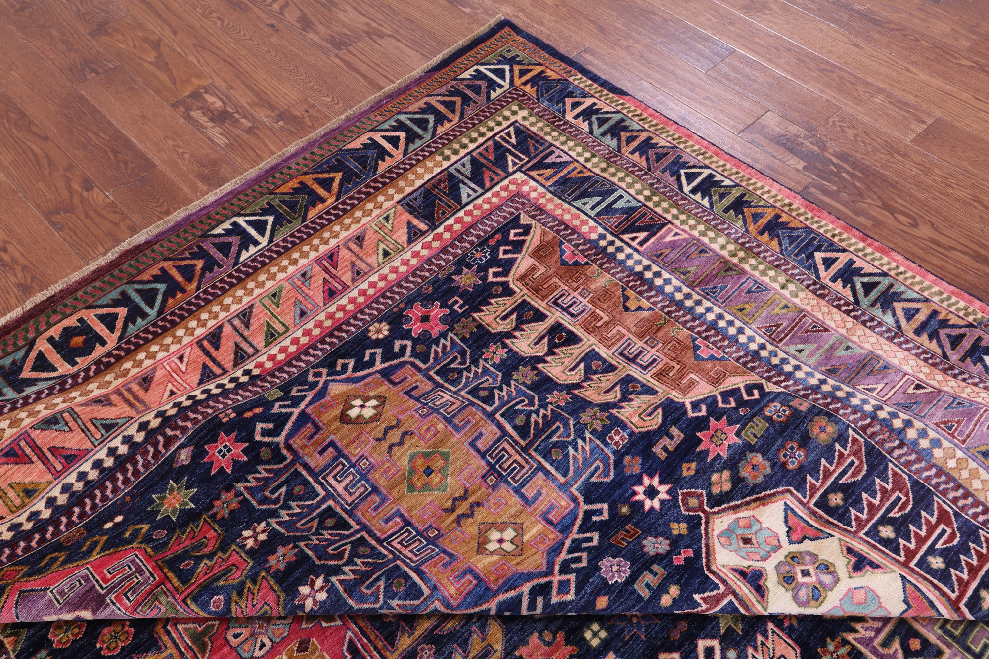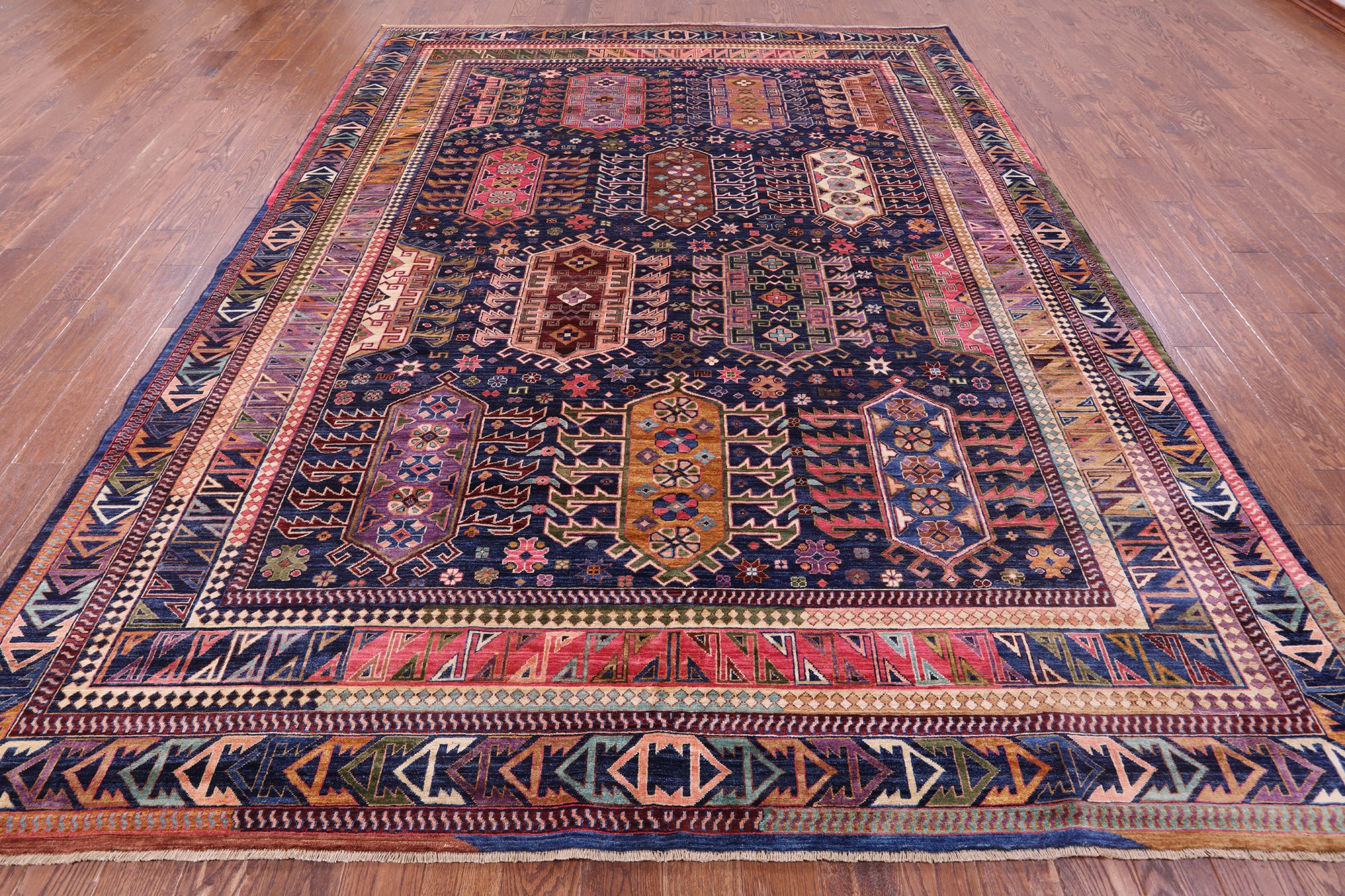 Blue Persian Fine Serapi Hand Knotted Wool Rug - 8' 11" X 11' 9"