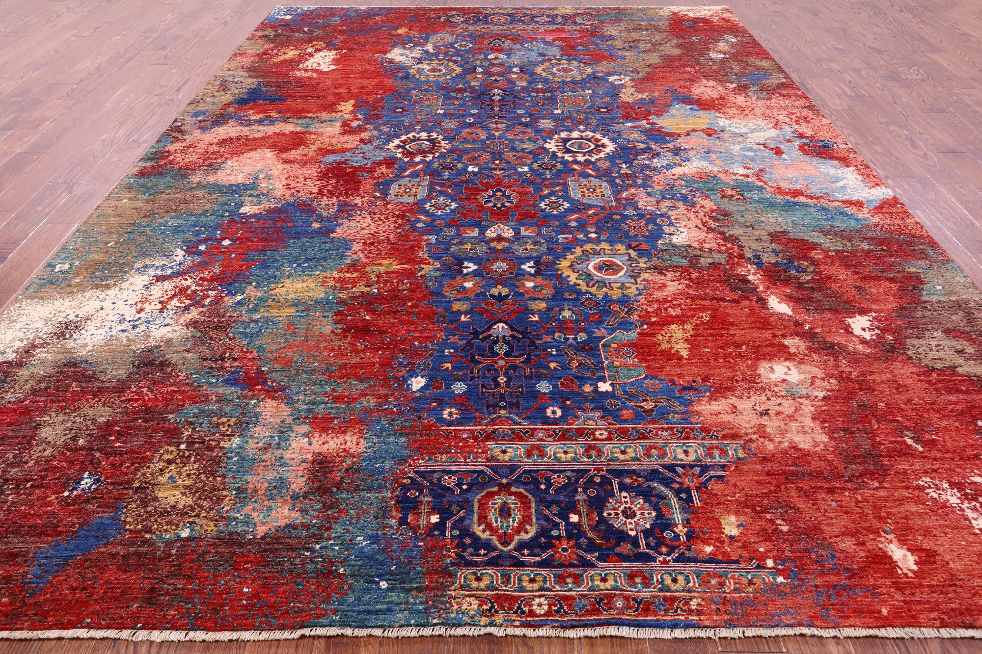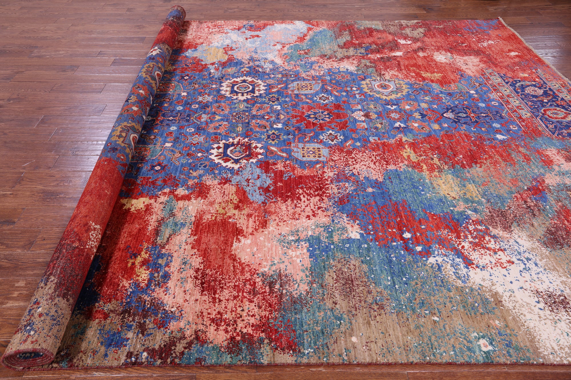 Heriz Serapi rugs are commonly known to be highly durable and are great for high traffic areas. Their medallions can be seen as large and angular, surrounded by more rigid lines and flowy floral patterns or they can also come in strictly geometric floral designs all symmetrically placed. The colors are elegant reds and indigos set against creamy ivory.