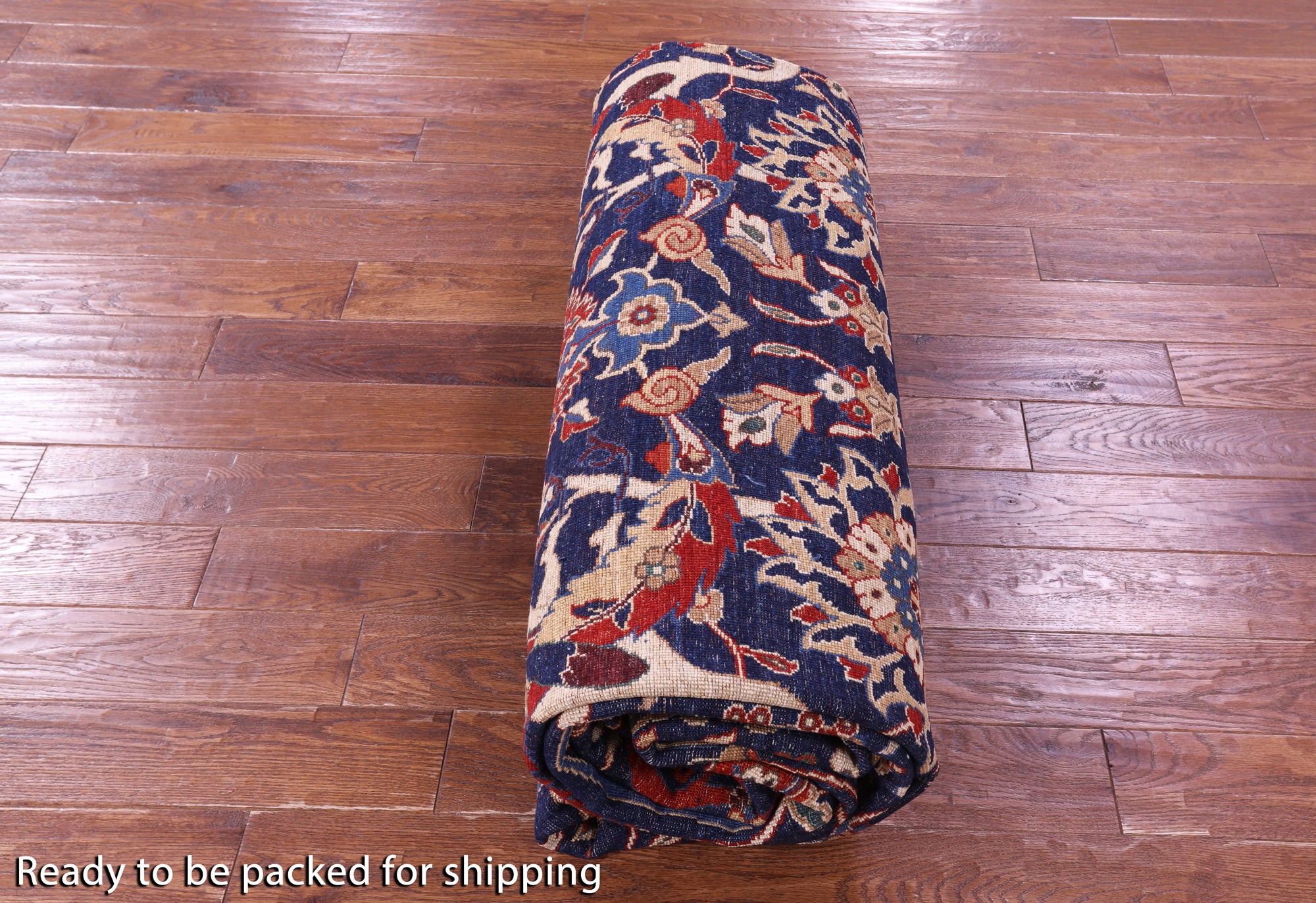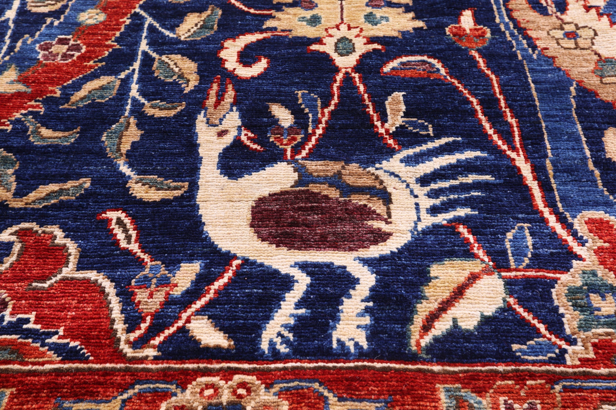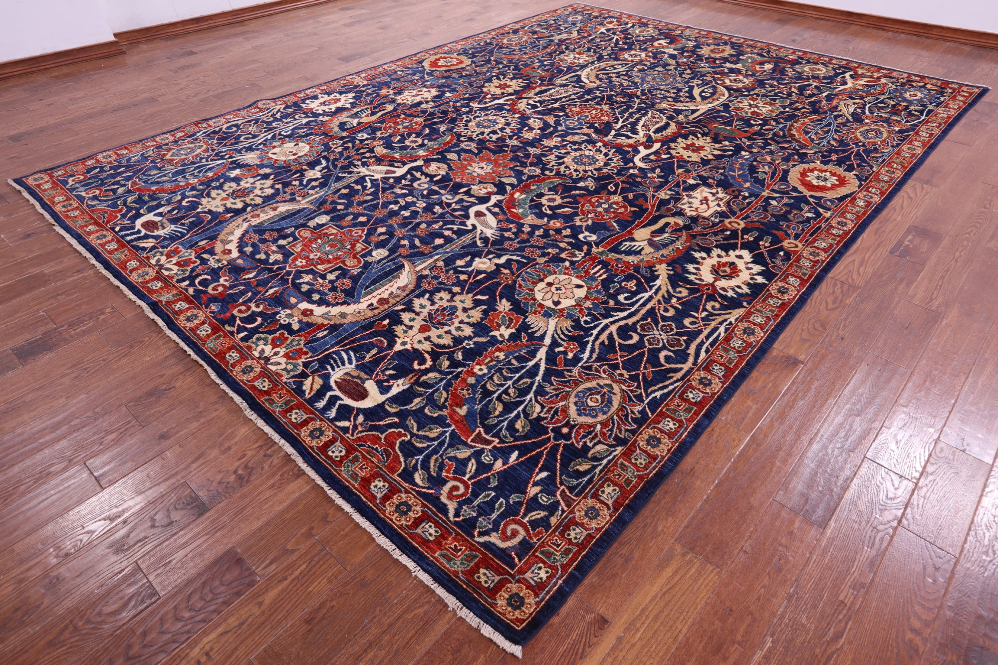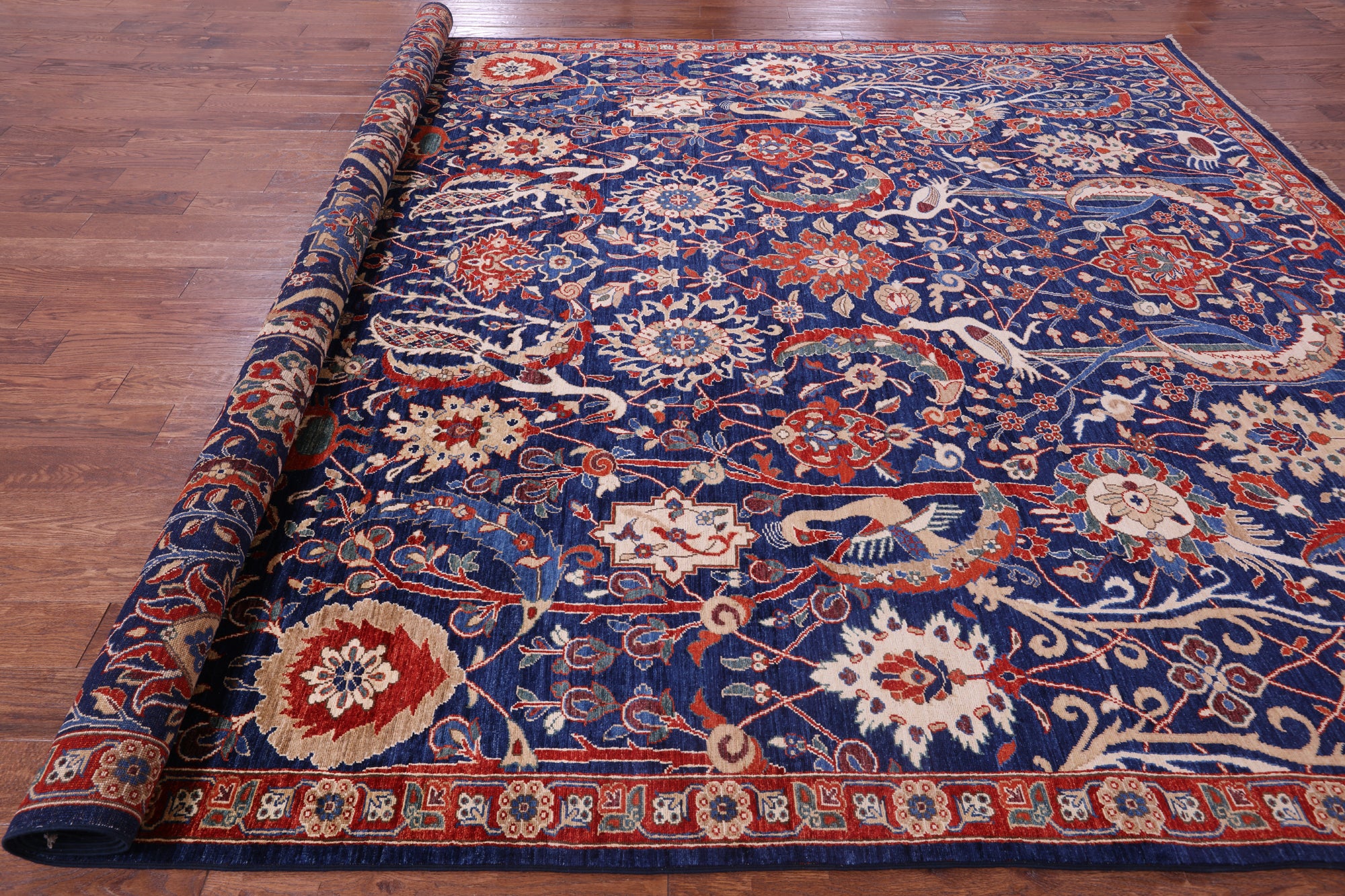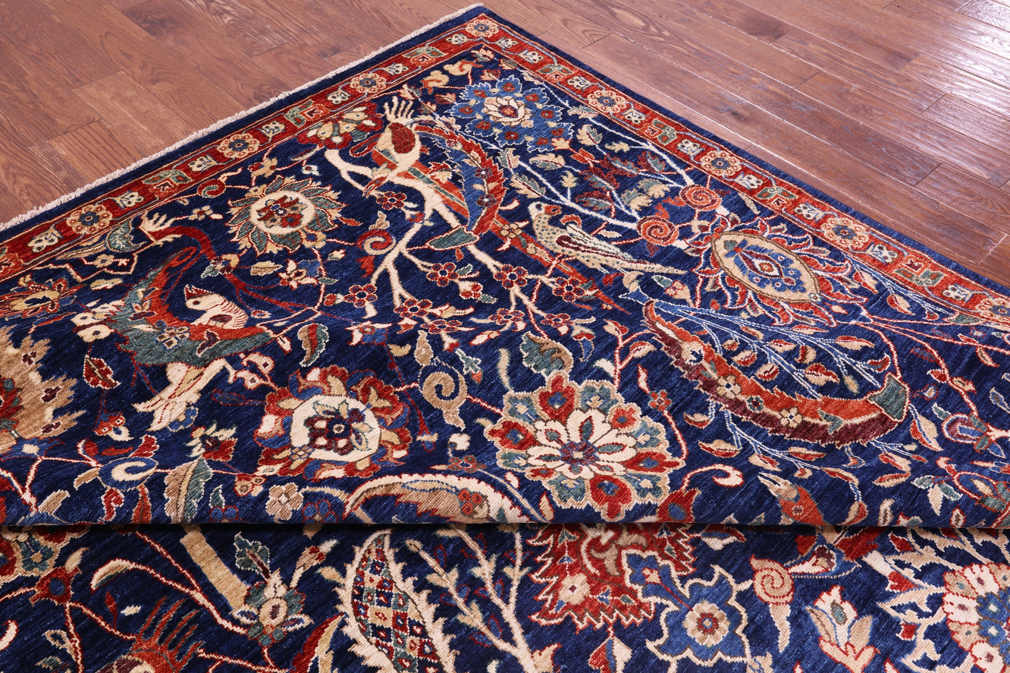 Blue Exotic Birds Persian Fine Serapi Hand Knotted Wool Rug - 9' 10" X 13' 9"