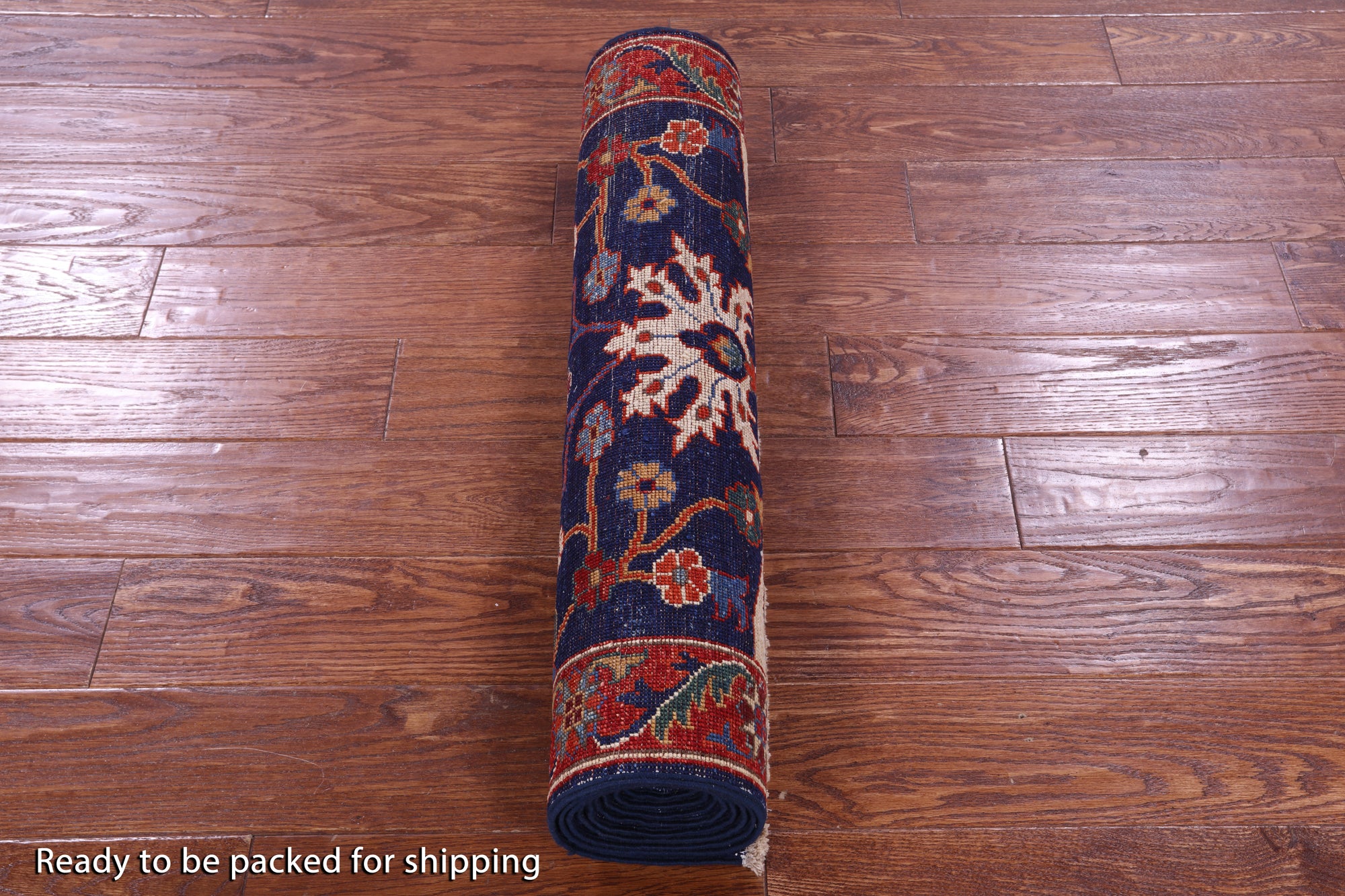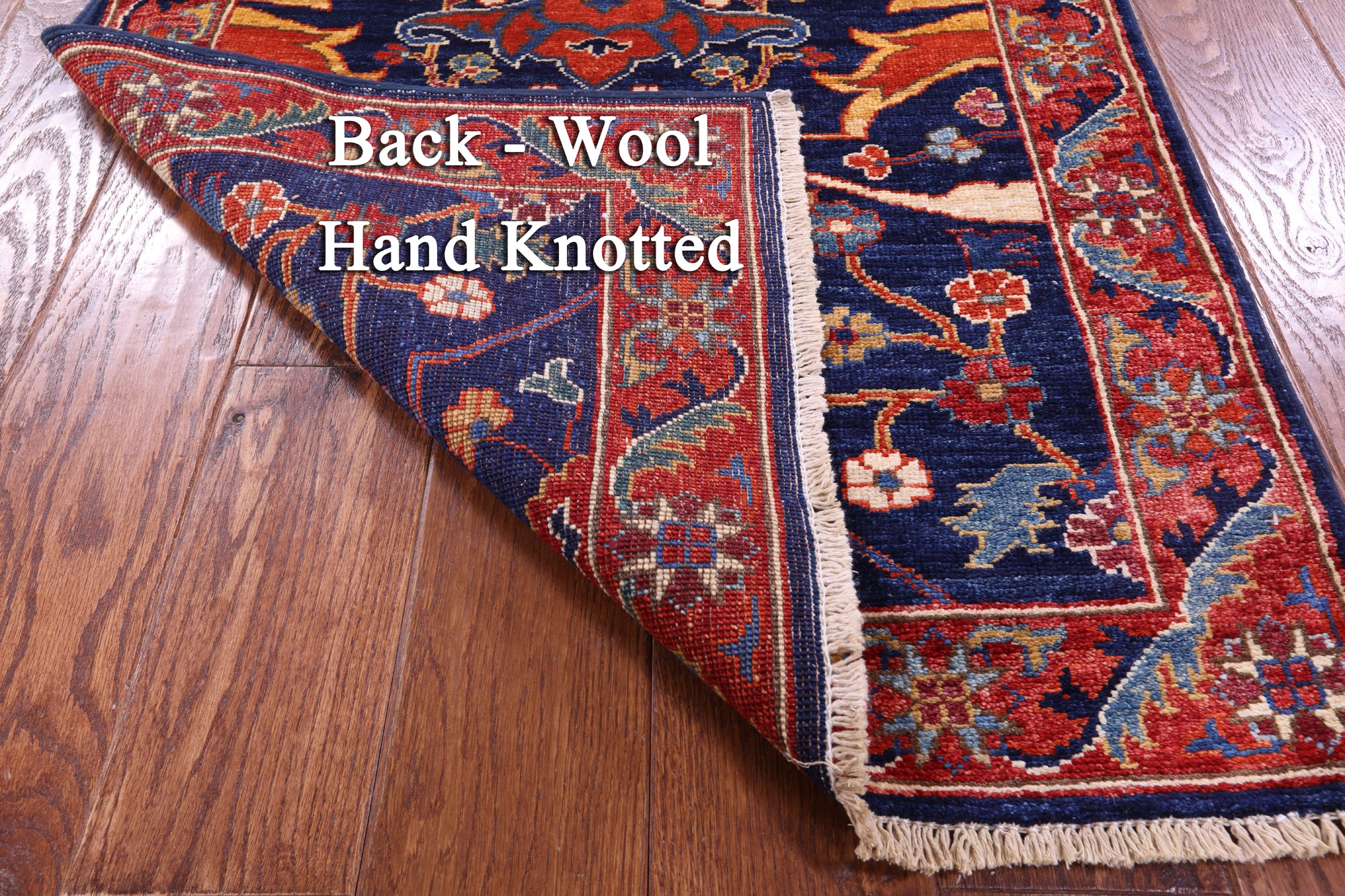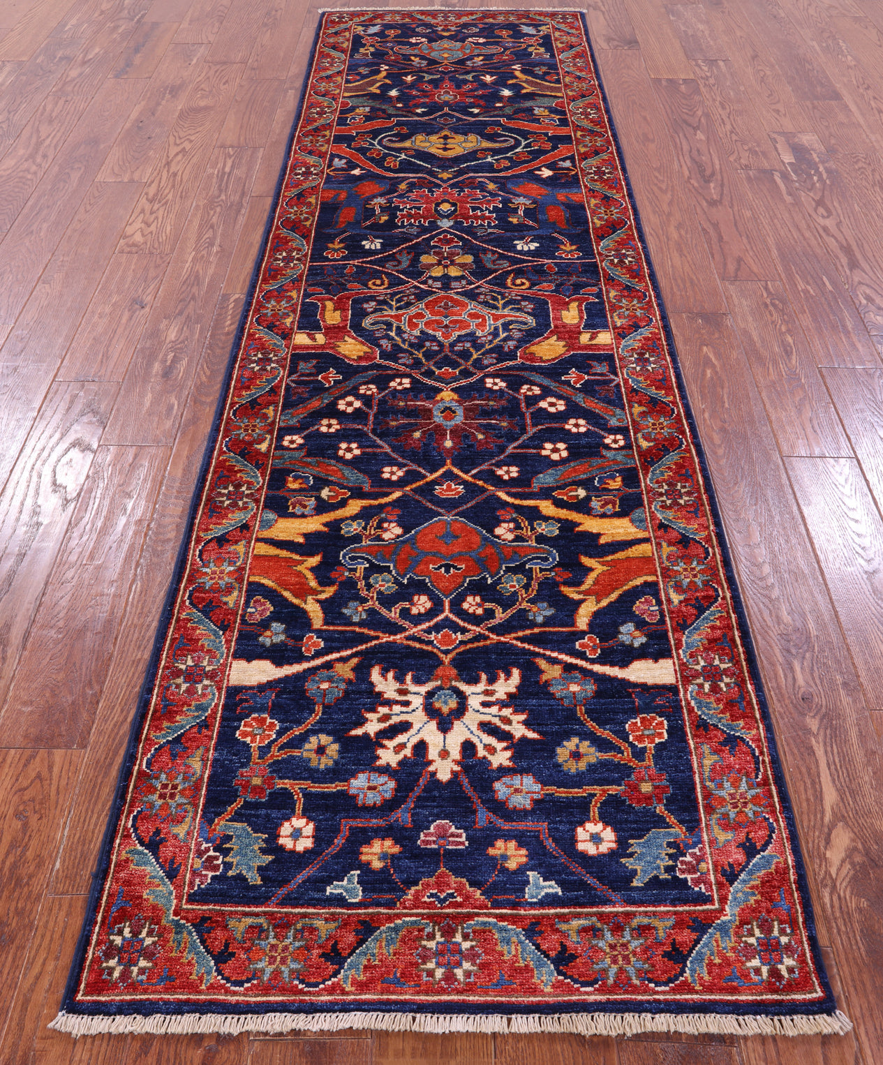 Blue Persian Fine Serapi Hand Knotted Wool Runner Rug - 2' 9" X 9' 7"