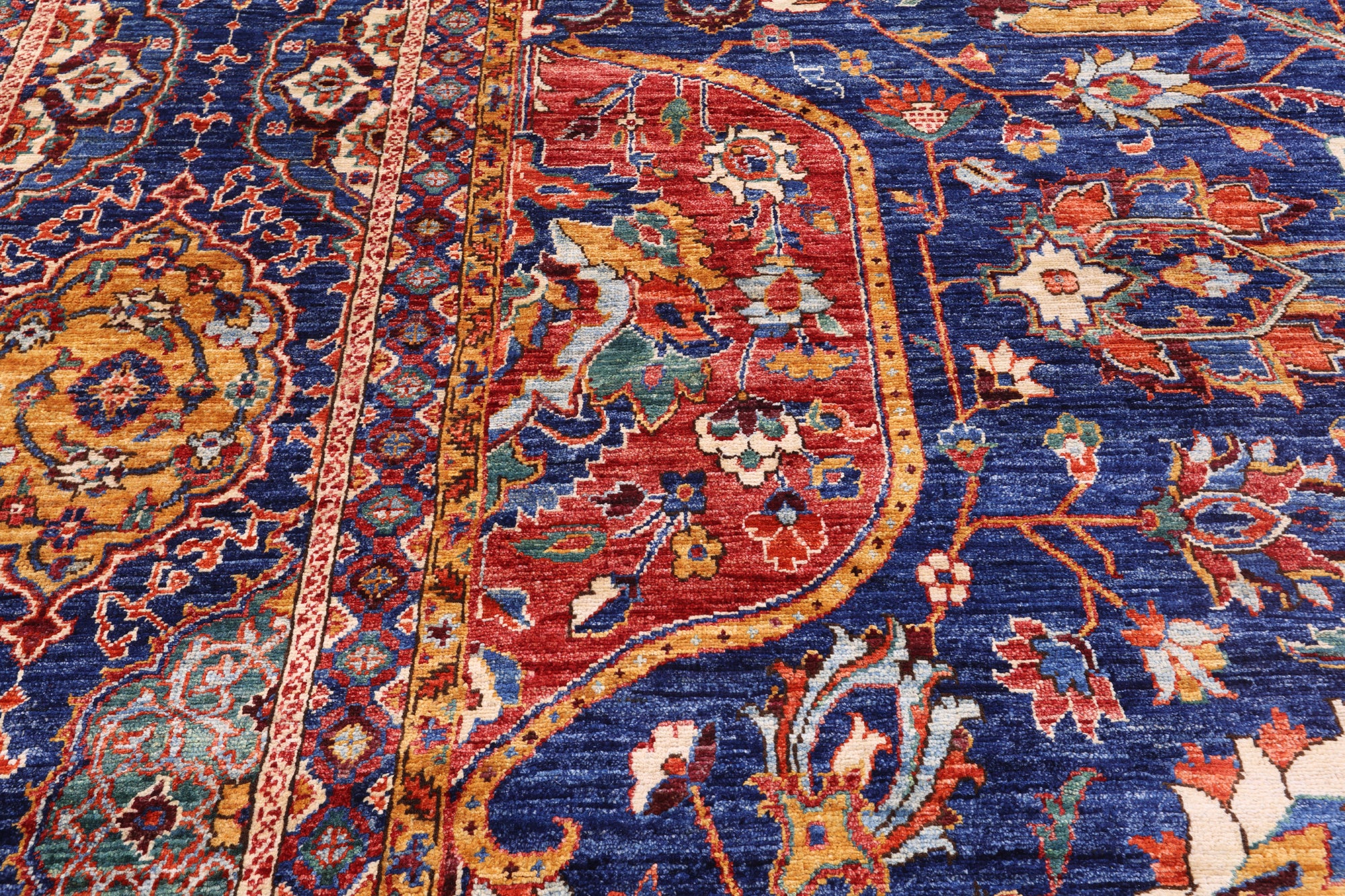 Blue Persian Fine Serapi Handmade Wool Rug - 11' 11" X 18' 7"