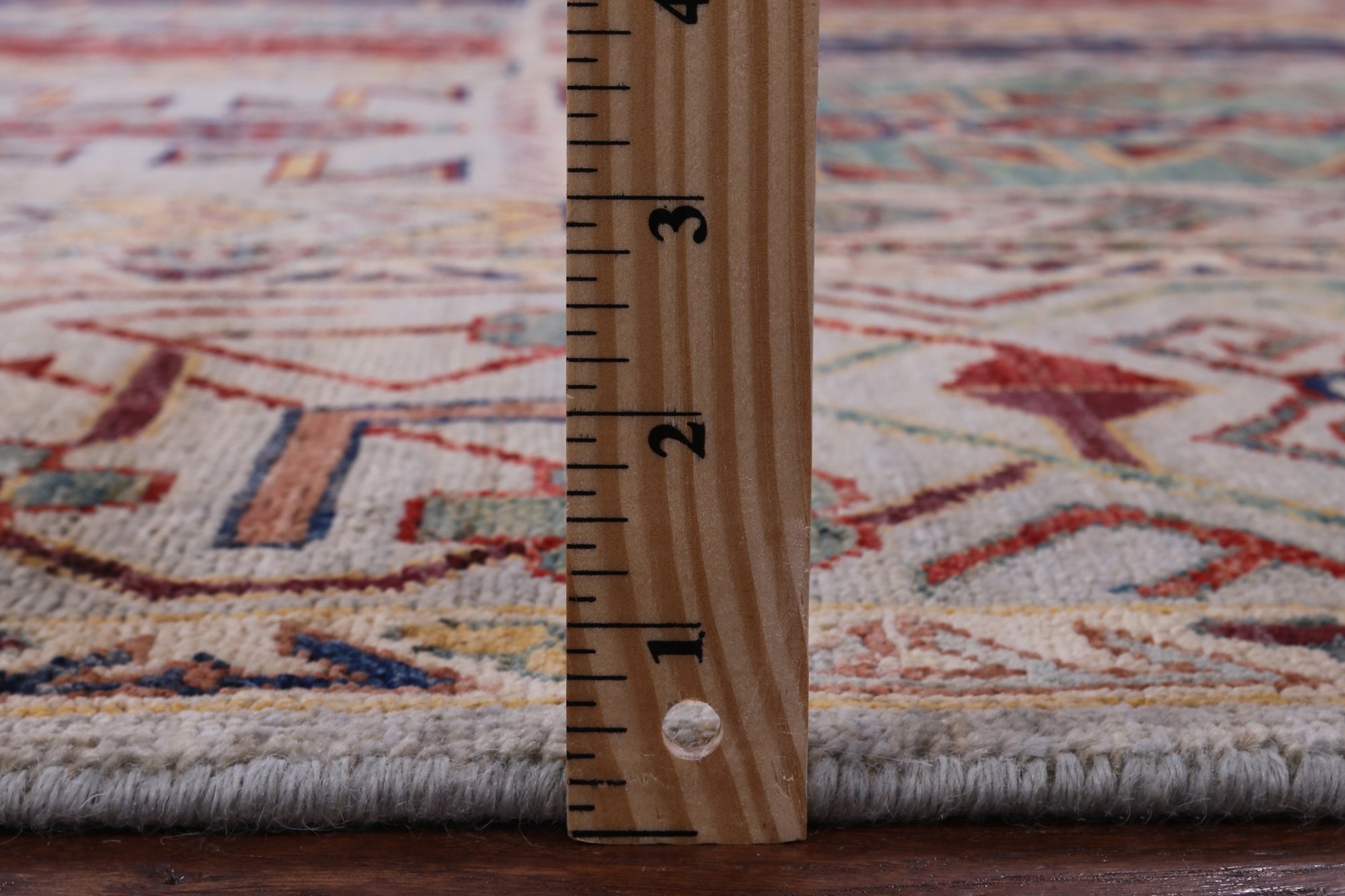 Heriz Serapi rugs are commonly known to be highly durable and are great for high traffic areas. Their medallions can be seen as large and angular, surrounded by more rigid lines and flowy floral patterns or they can also come in strictly geometric floral designs all symmetrically placed. The colors are elegant reds and indigos set against creamy ivory.