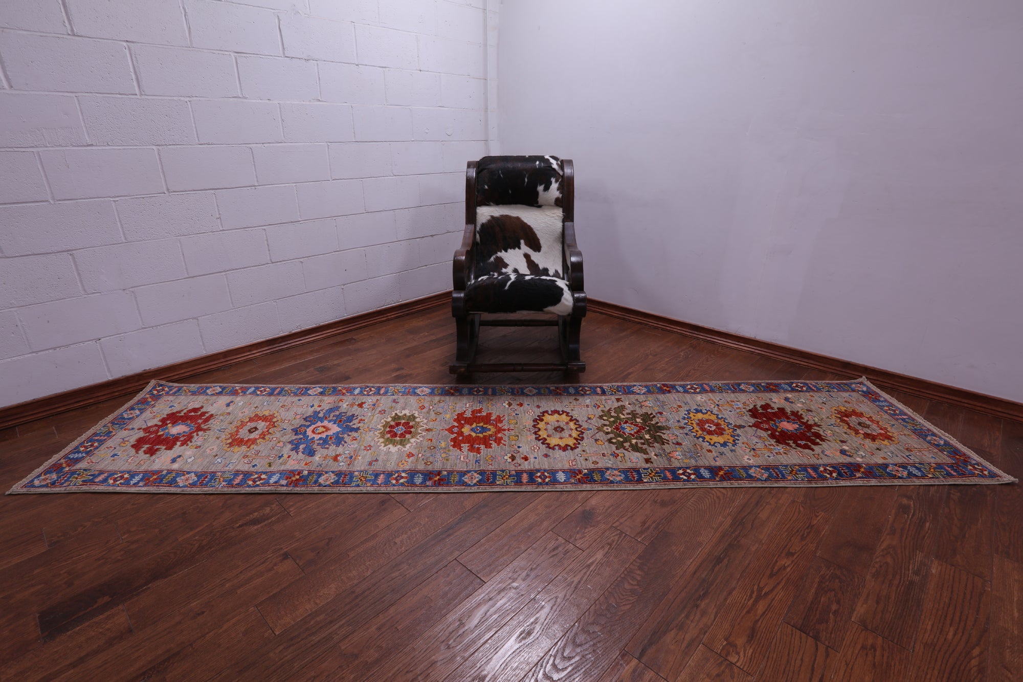 Heriz Serapi rugs are commonly known to be highly durable and are great for high traffic areas. Their medallions can be seen as large and angular, surrounded by more rigid lines and flowy floral patterns or they can also come in strictly geometric floral designs all symmetrically placed. The colors are elegant reds and indigos set against creamy ivory.