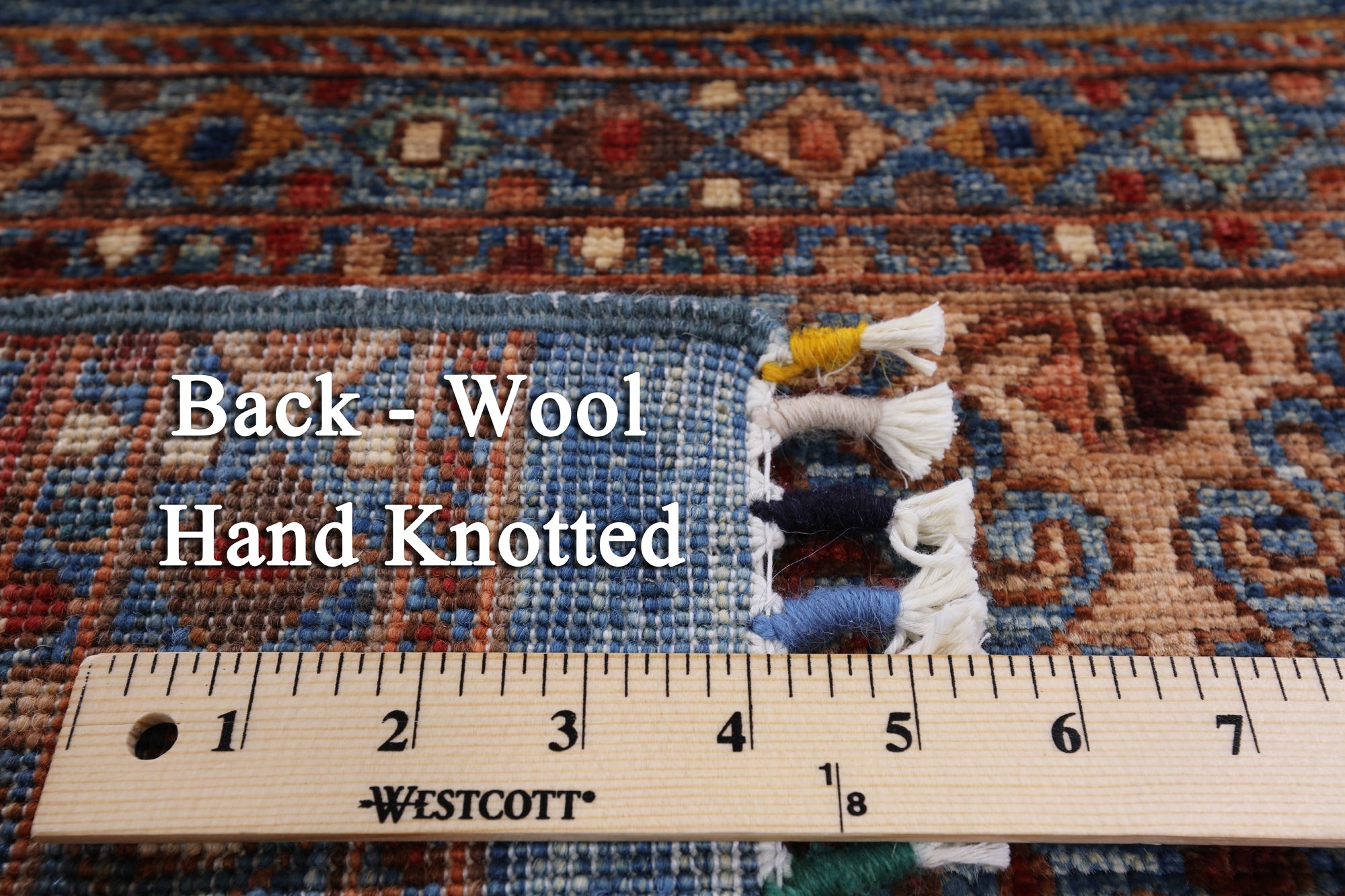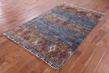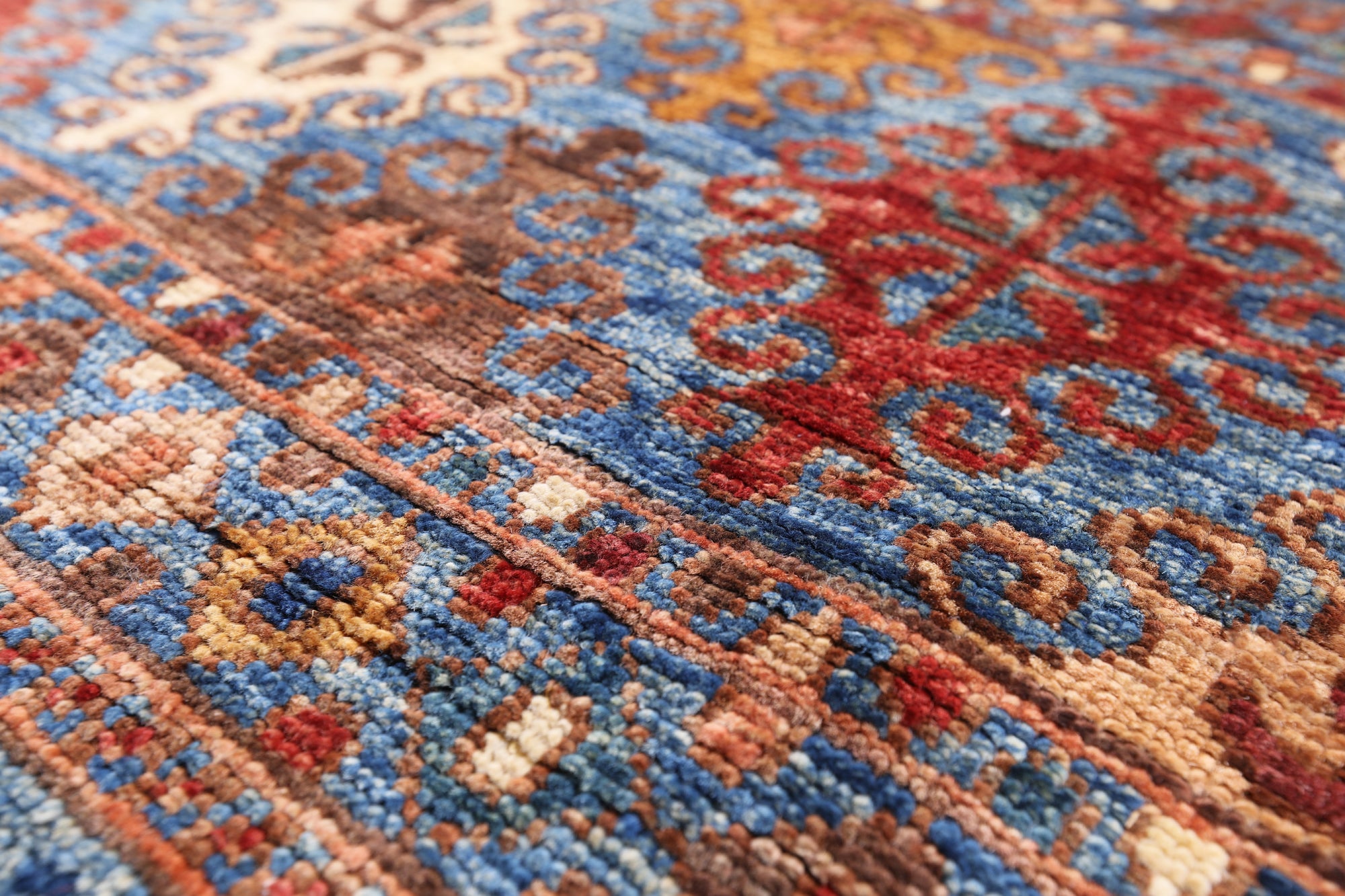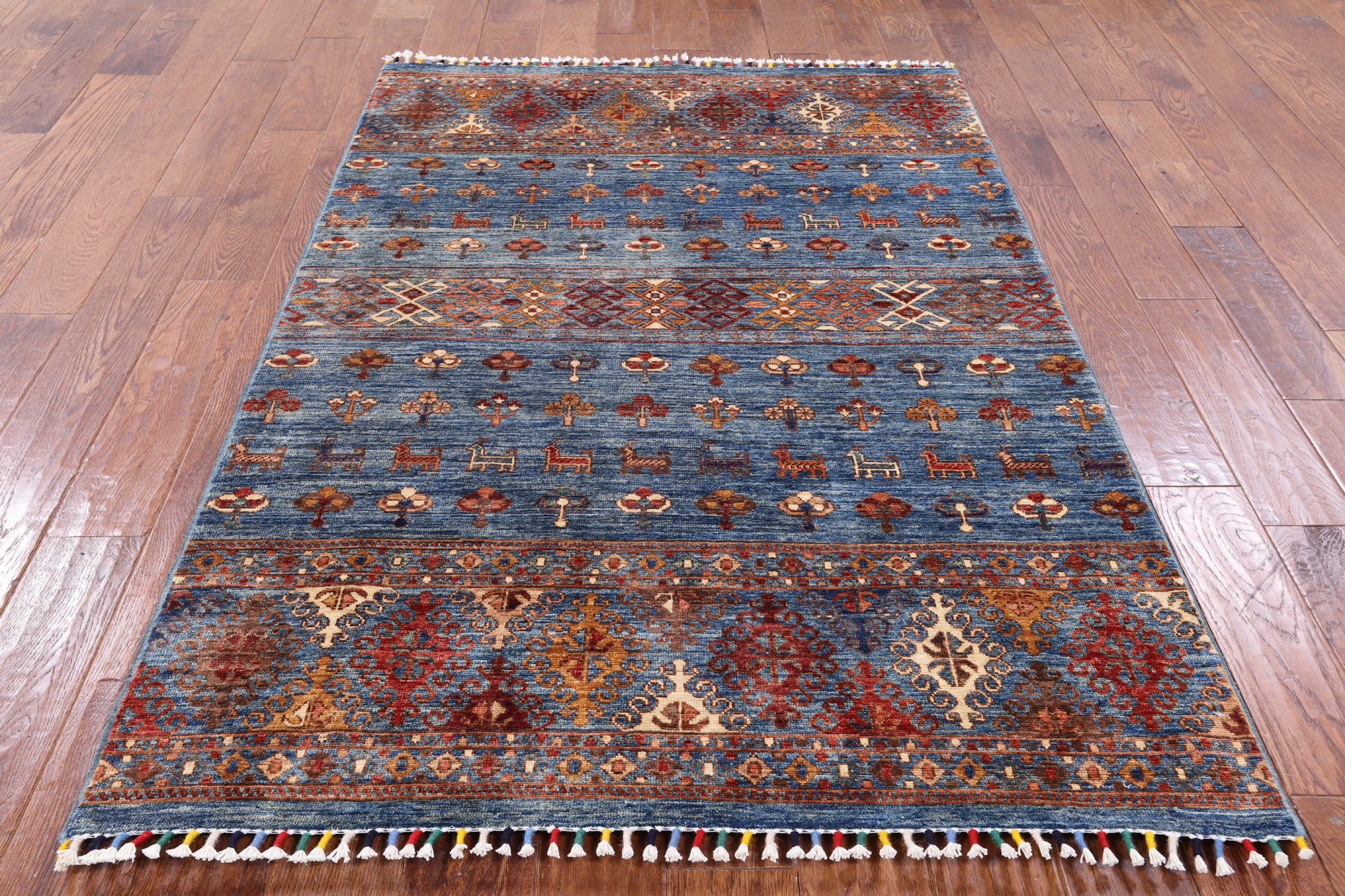 Gabbeh Rugs originate from South-Central Iran, and feature hand-spun wool in both the pile and foundation as well as all natural dyes. Gabbeh patterns are very basic, mostly consisting of colorful rectangular objects resembling animals, or people, abstract scenery used to tell a story, depict a person or place. They contain soft lustrous wool, and emphasizes color on design detail. These Classic Persian Rugs are popular in homes with contemporary & modern interior.