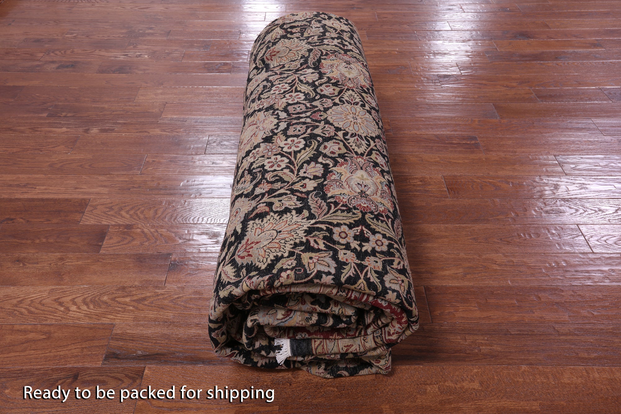 Black Persian Kashan Hand Knotted Wool Rug - 12' 2" X 16' 0"