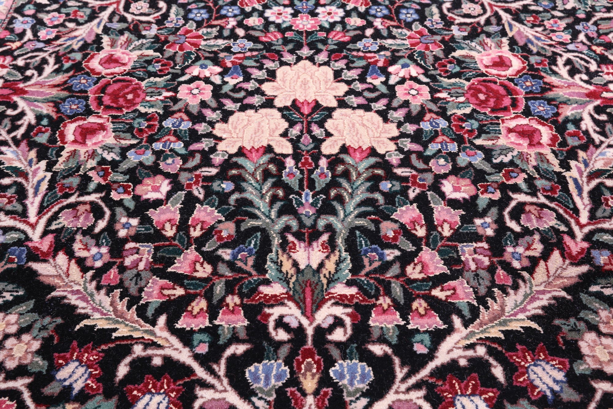 Kerman rugs offer a wide variety of designs and a broad palette of colors using natural dyes and fibers. There are no two precisely alike. The fineness of their weave and elegantly drawn designs are what make these rugs so sought after. Kerman rugs have all over designs with medallion formats. The design of all over stylized flowers and oversized palmetts makes each one so unique. The colors for these designs are gentle and vary from, amber pink, milky blue, gray, ivory and golden tones. Their designs make them ideal for wishing to add grace and grandeur to the spaces of any home.