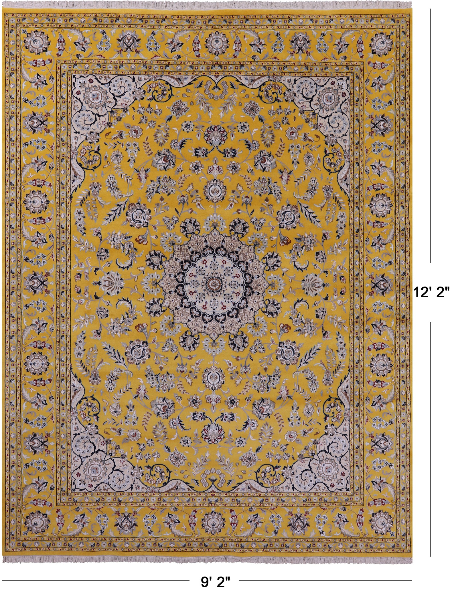 Persian Nain Hand Knotted Wool & Silk Rug - 9' 2" X 12' 2"