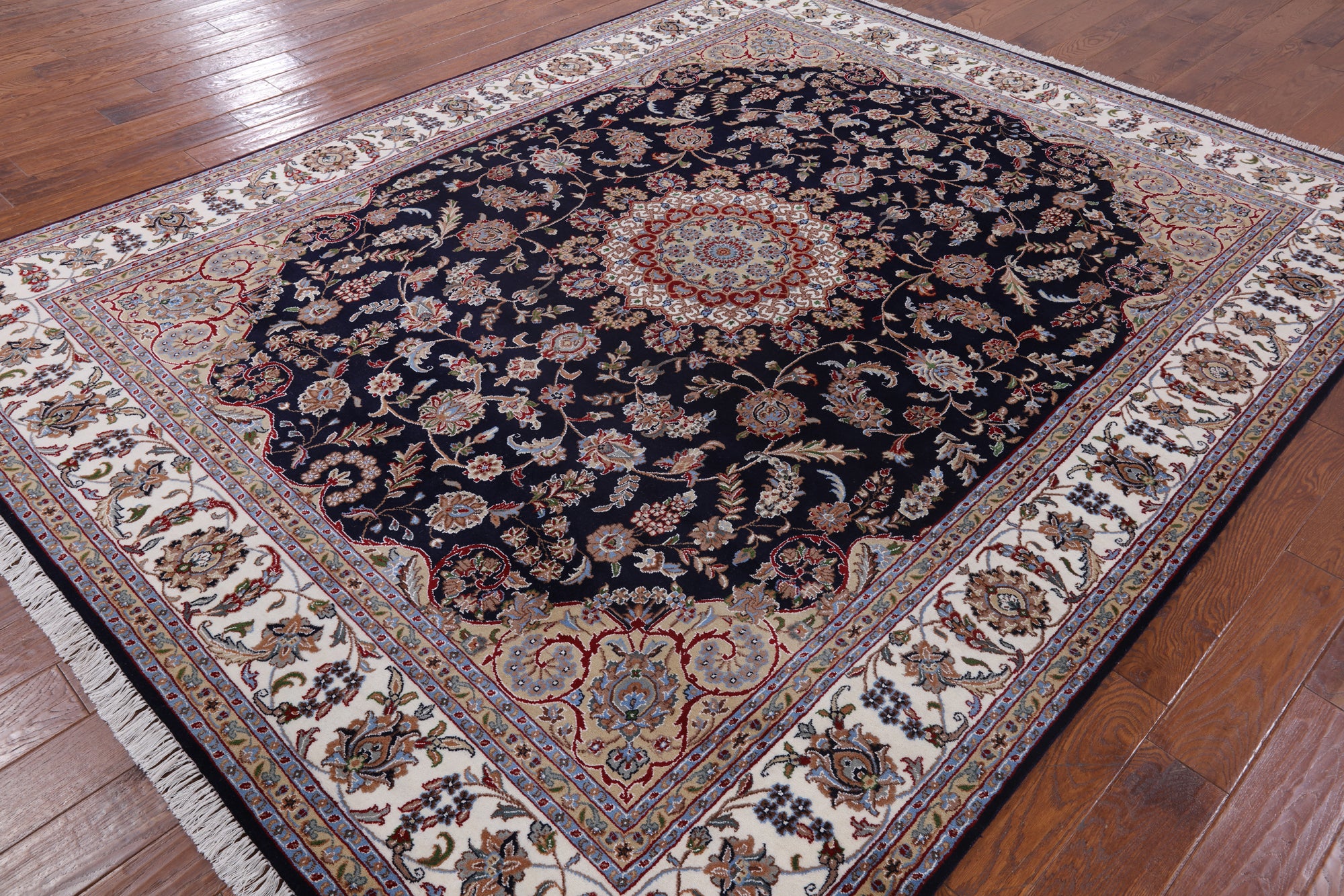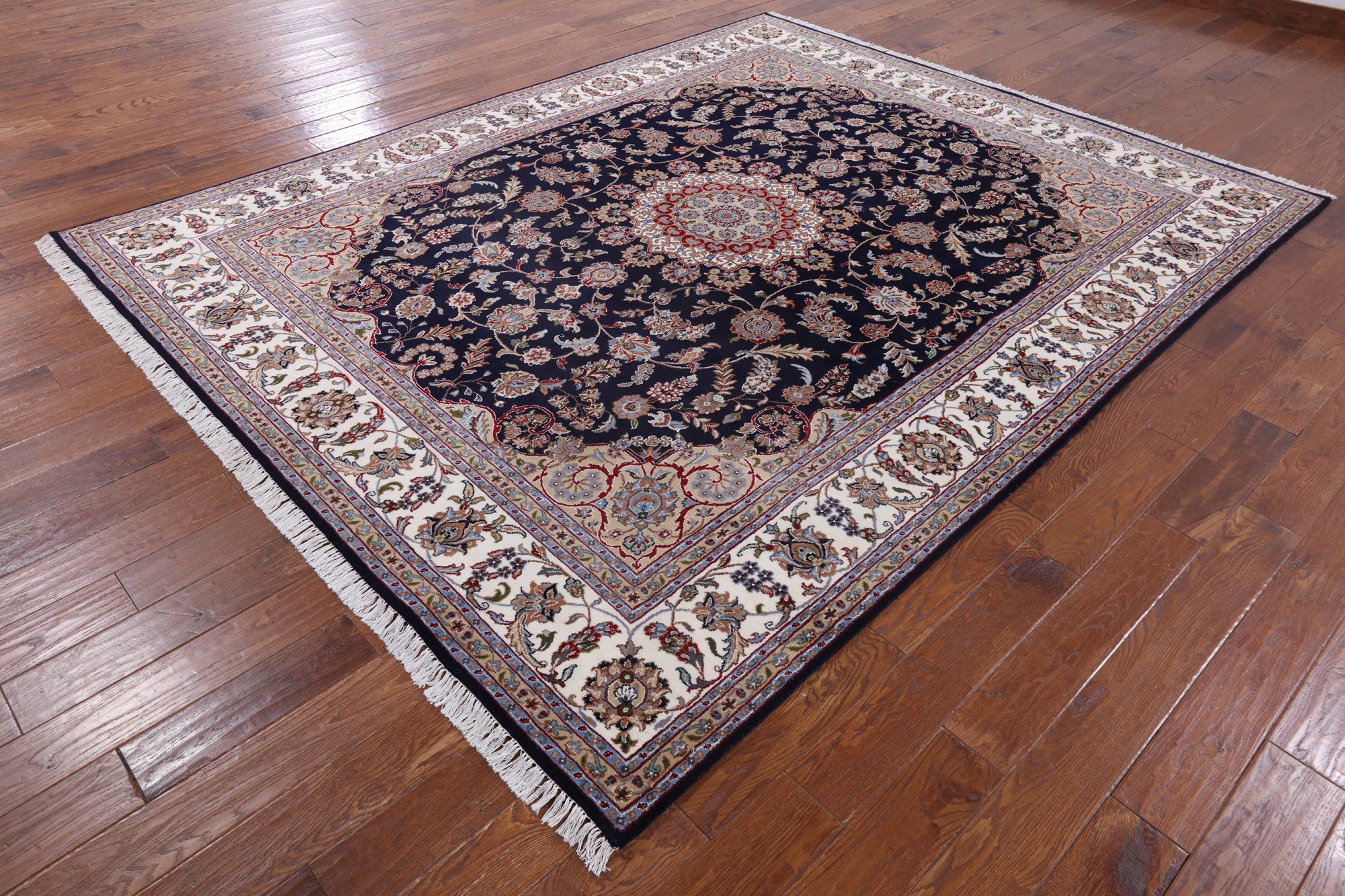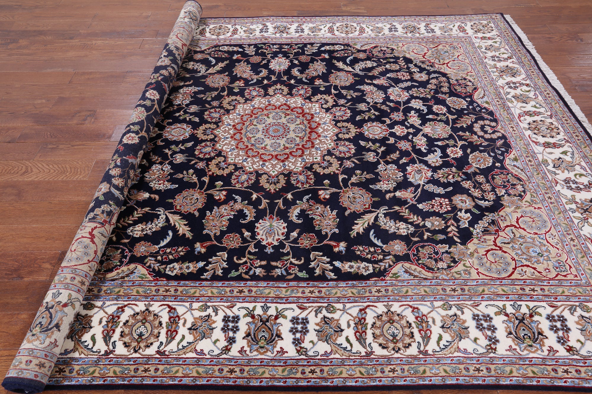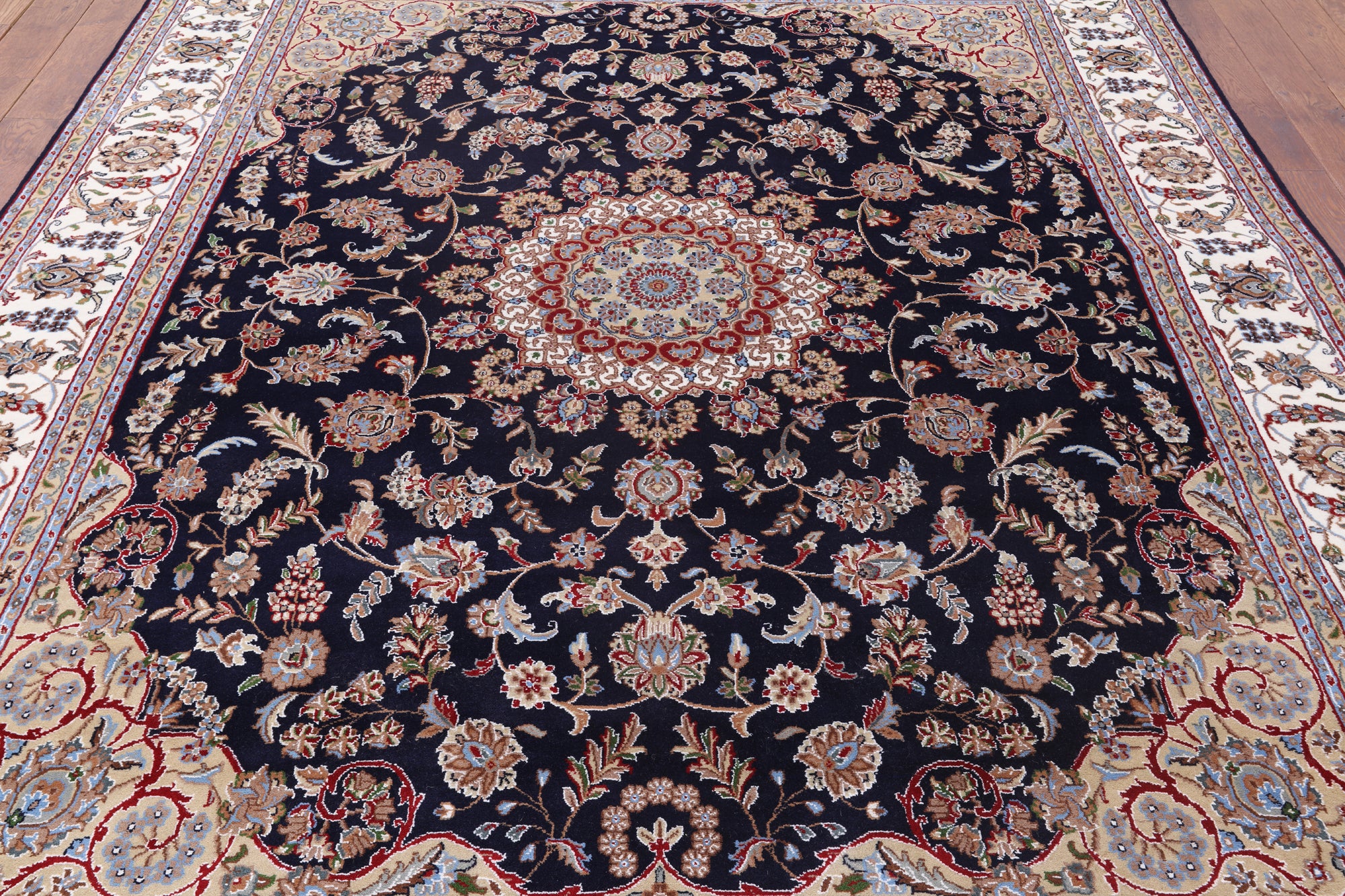These rugs are particularly popular, they have a high knot density and the materials consist of wool and silk warp. In addition to the high quality of the material itself the designs and color combinations are simply magnificent for Nain rugs. Most have patterns with medallions in the middle and floral motifs. Silk is used as a highlighting tool in the detail of the design. Nain rugs are clipped short so the design stands out even more than on other rugs.