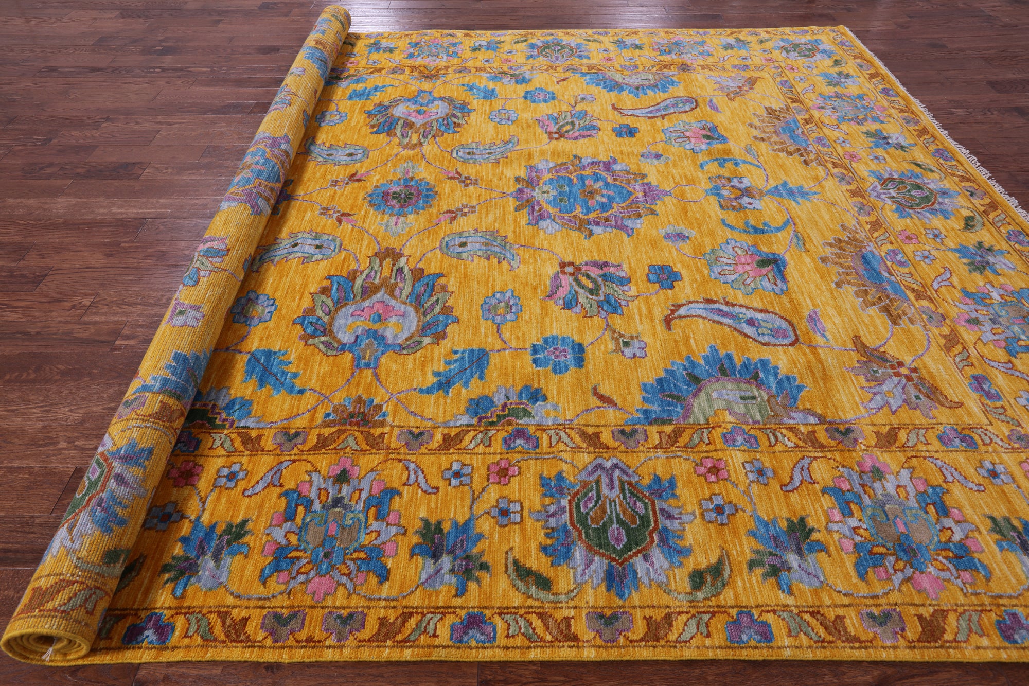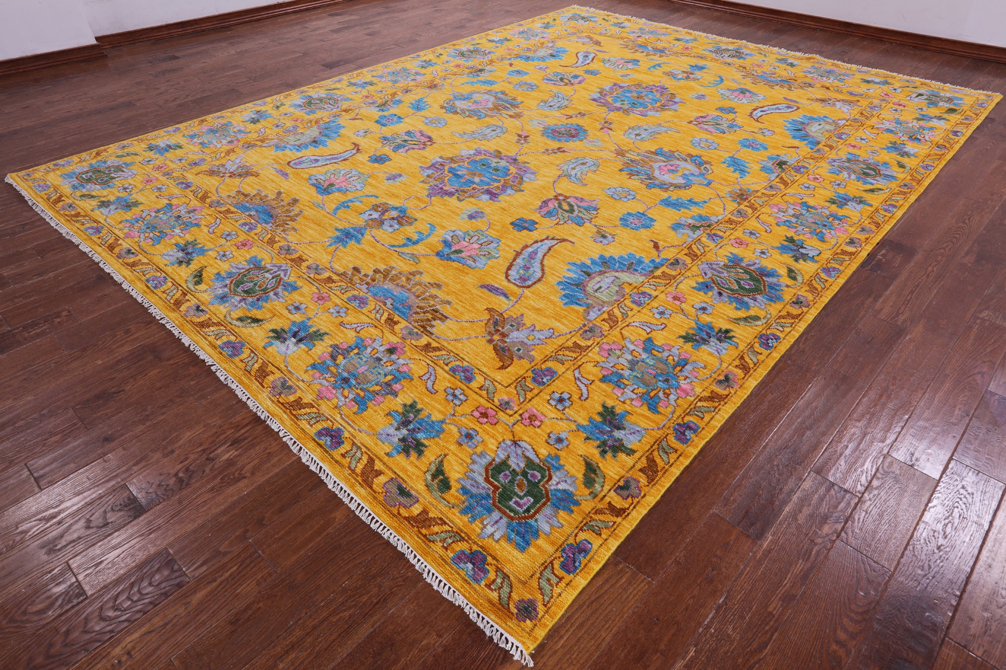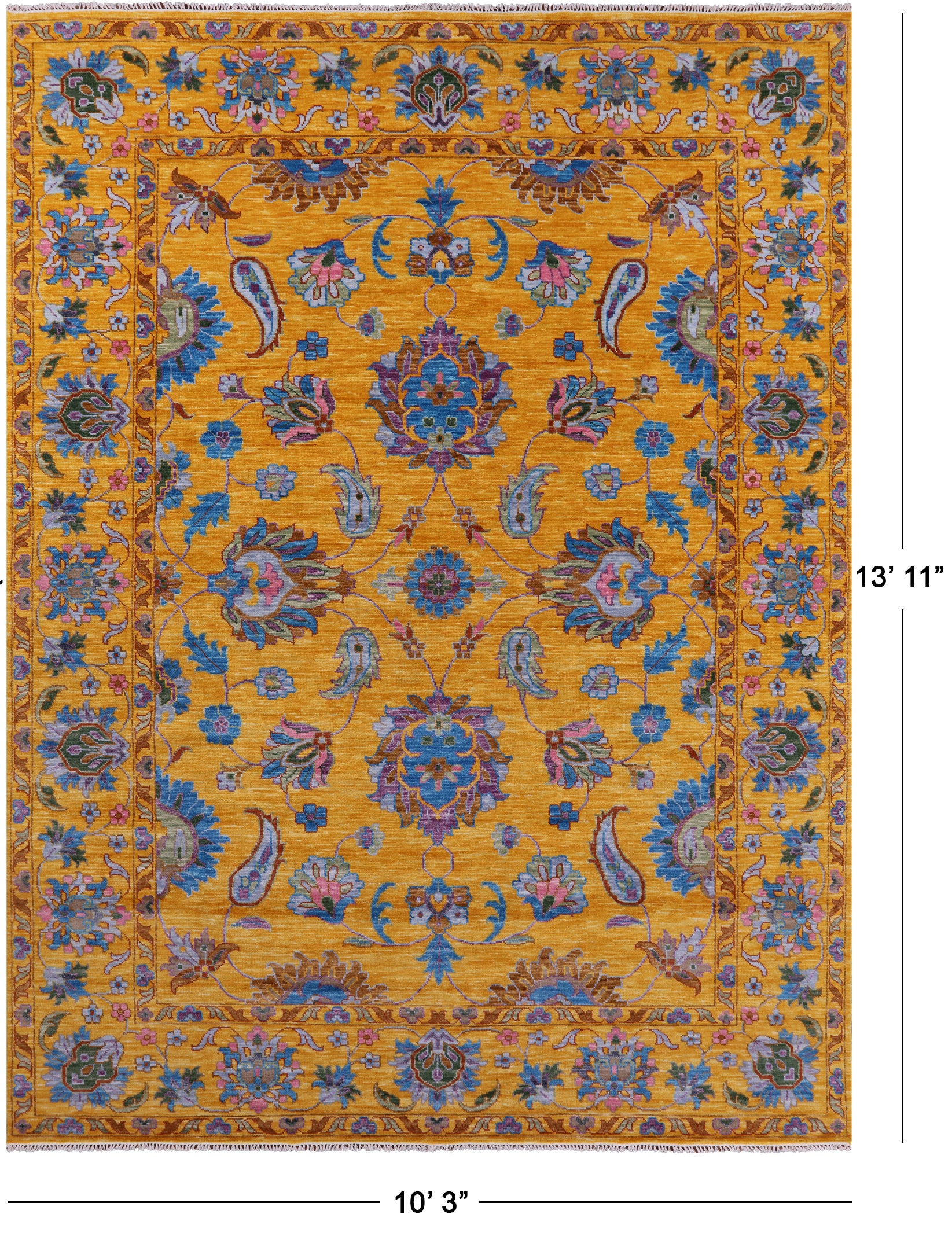 Gold Persian Tabriz Hand Knotted Wool Rug - 10' 3" X 13' 11"