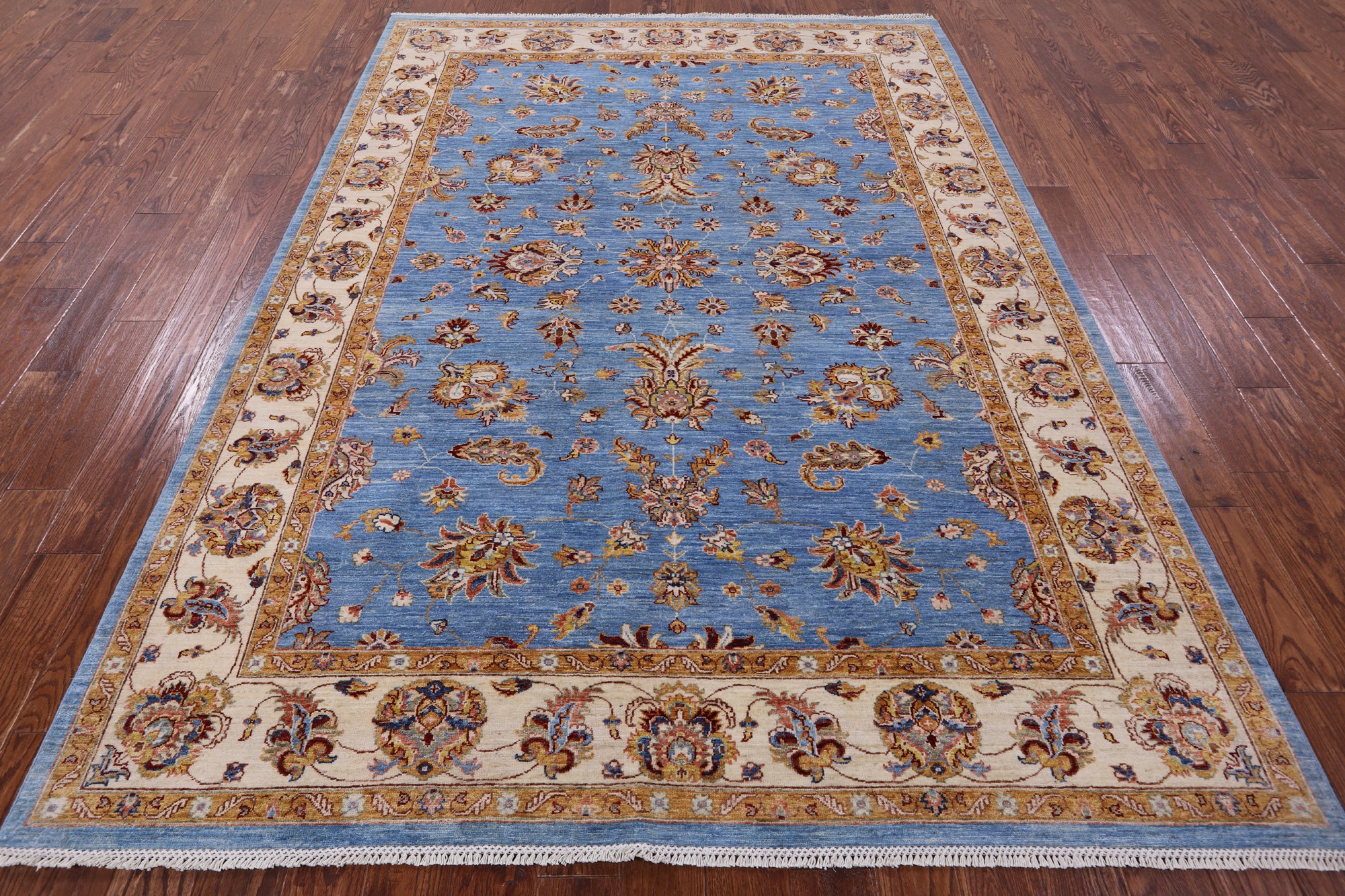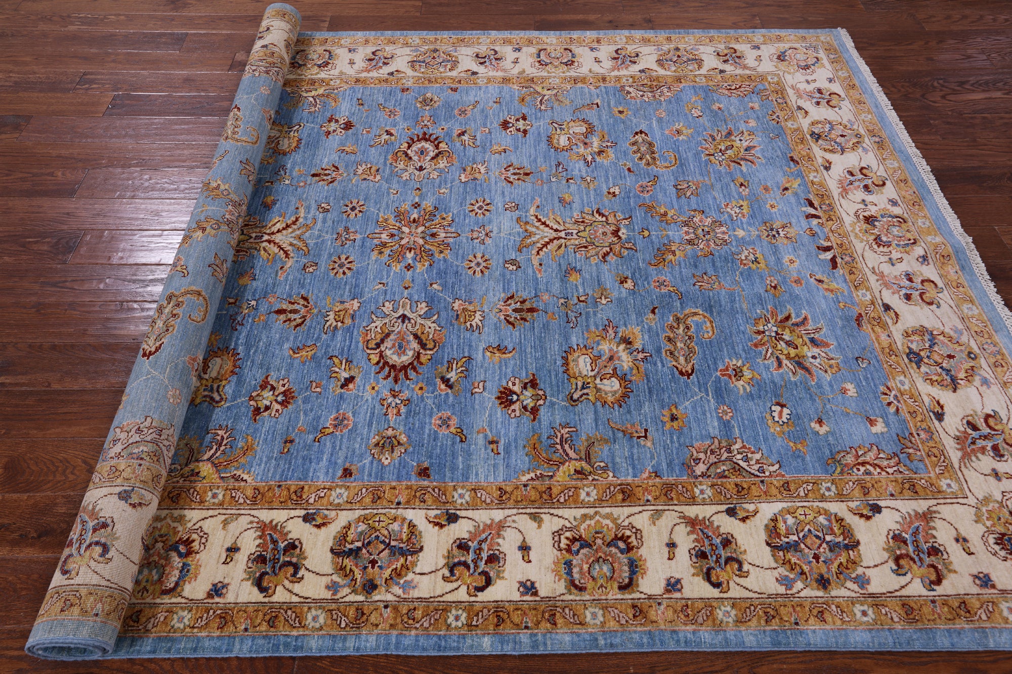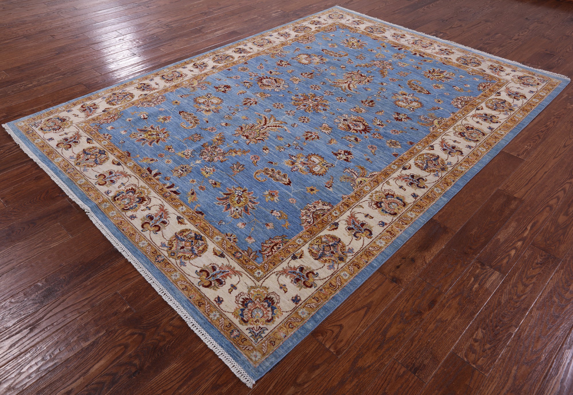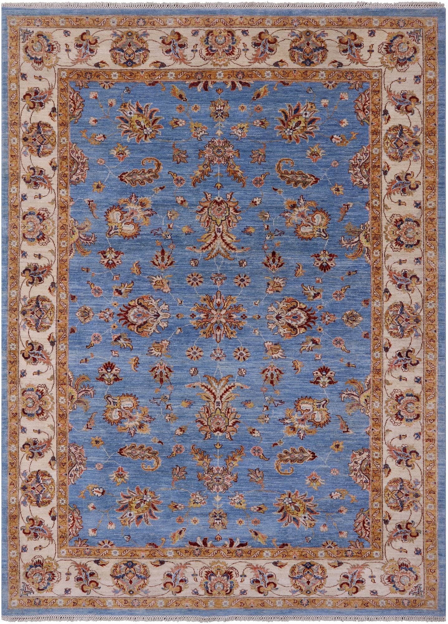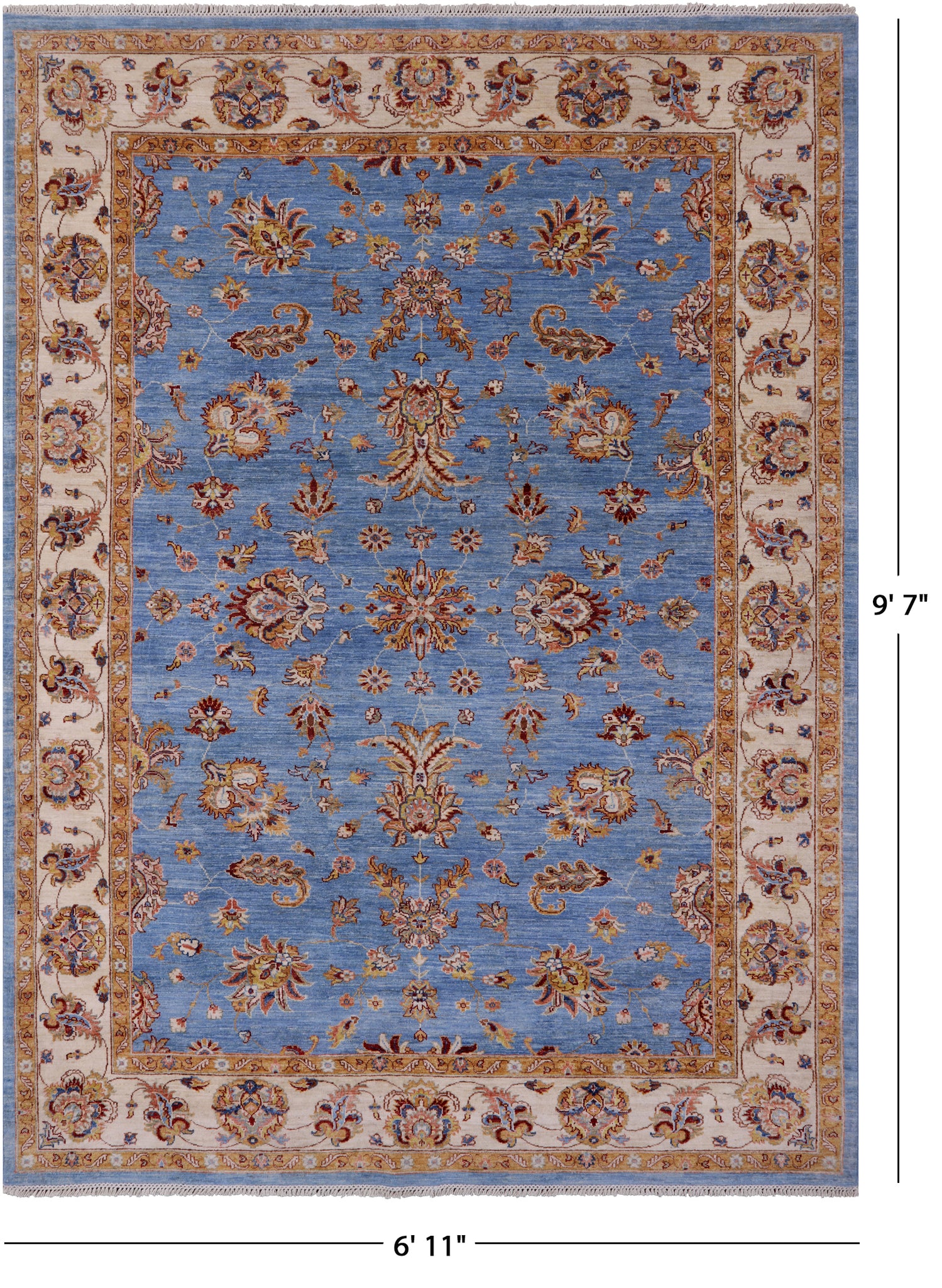 Blue Persian Tabriz Hand Knotted Wool Rug - 6' 11" X 9' 7"