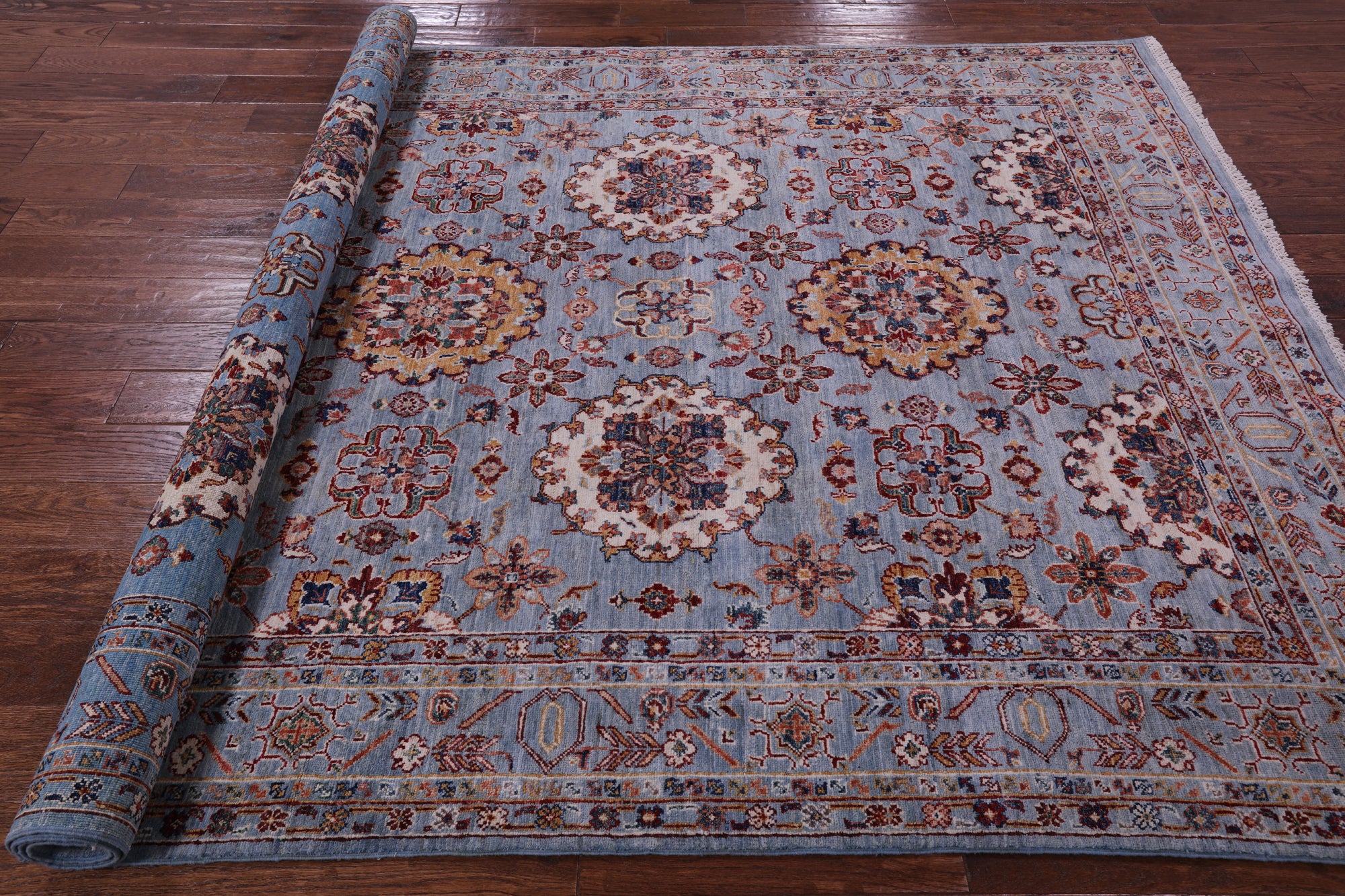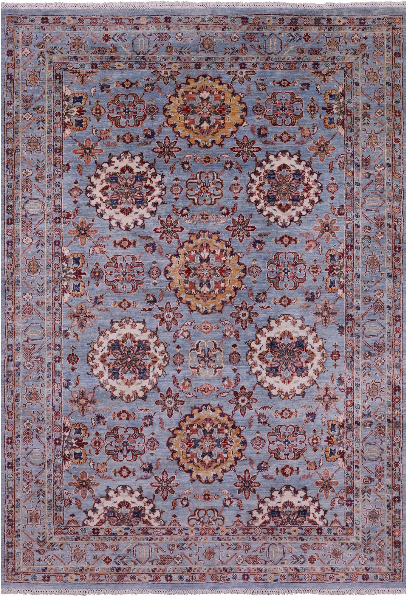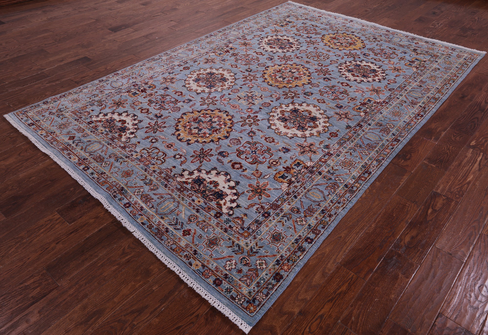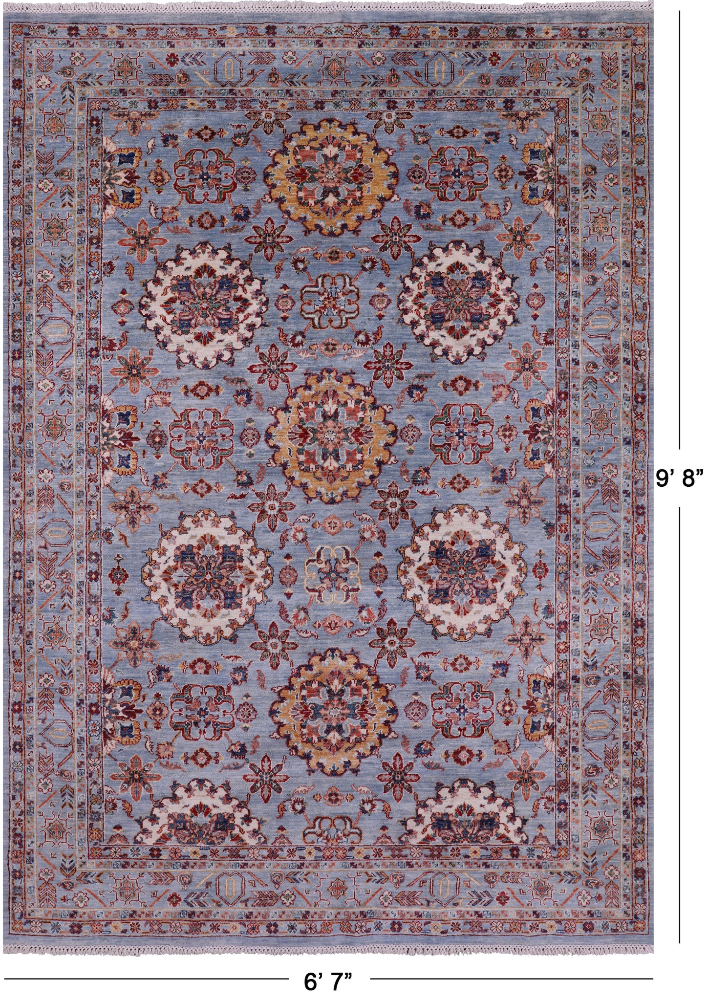 Blue Persian Tabriz Hand Knotted Wool Rug - 6' 7" X 9' 8"