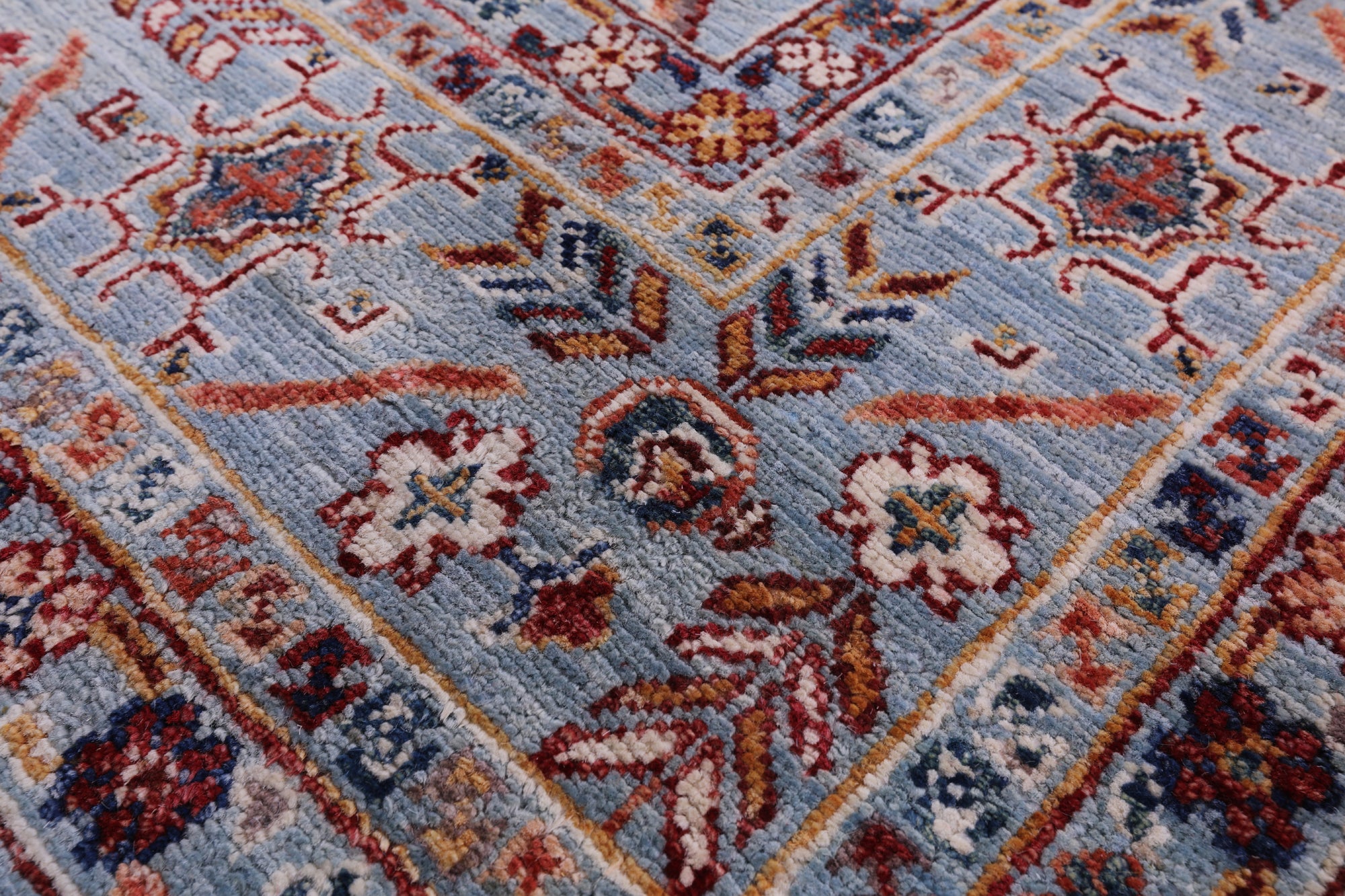 Tabriz Rugs are the most diverse and innovative in Persia due to its high-quality. Tabriz designs are hand-knotted with fine soft wool or silk, on a silk or cotton foundation, and may have either a thin silk, or wool pile. Their patterns consists of medallions surrounded by weeping willows, a cluster of trees and/or cypresses, arabesques (ornamental designs), and most popular, the four seasons used to depict the life of the Persian farmer. Their rich colors consist of red & blue with an ivory background, while newer Tabriz Rugs have softer colors such as green, blue and brown to correspond with modern interiors.