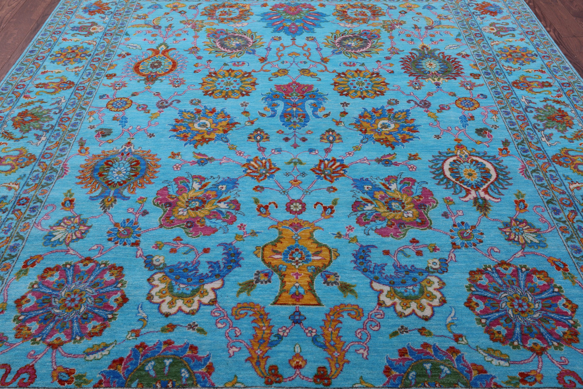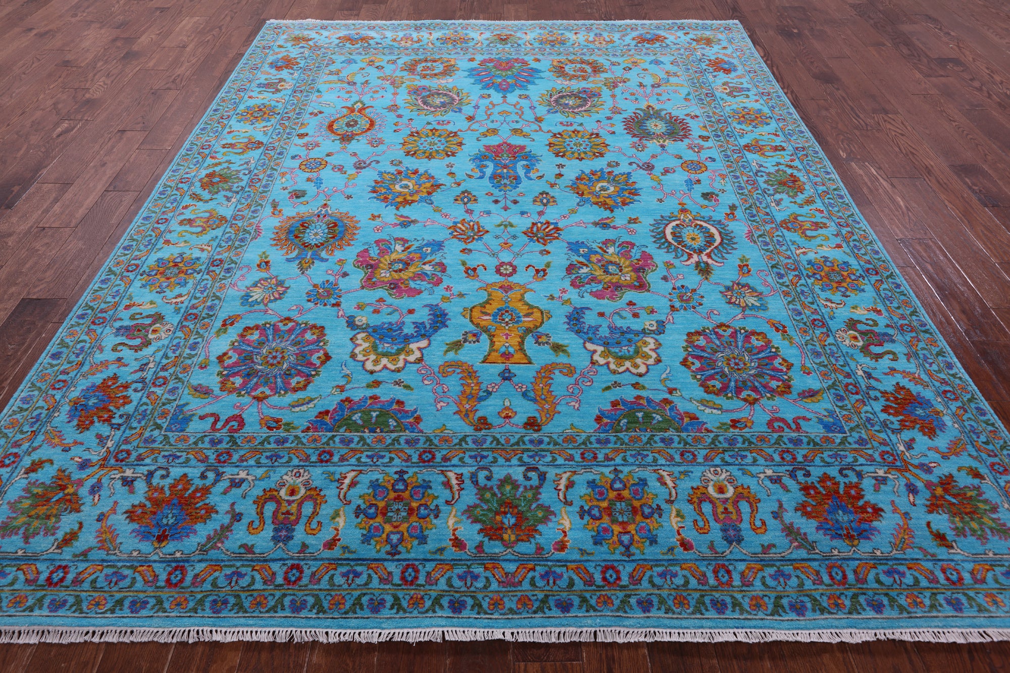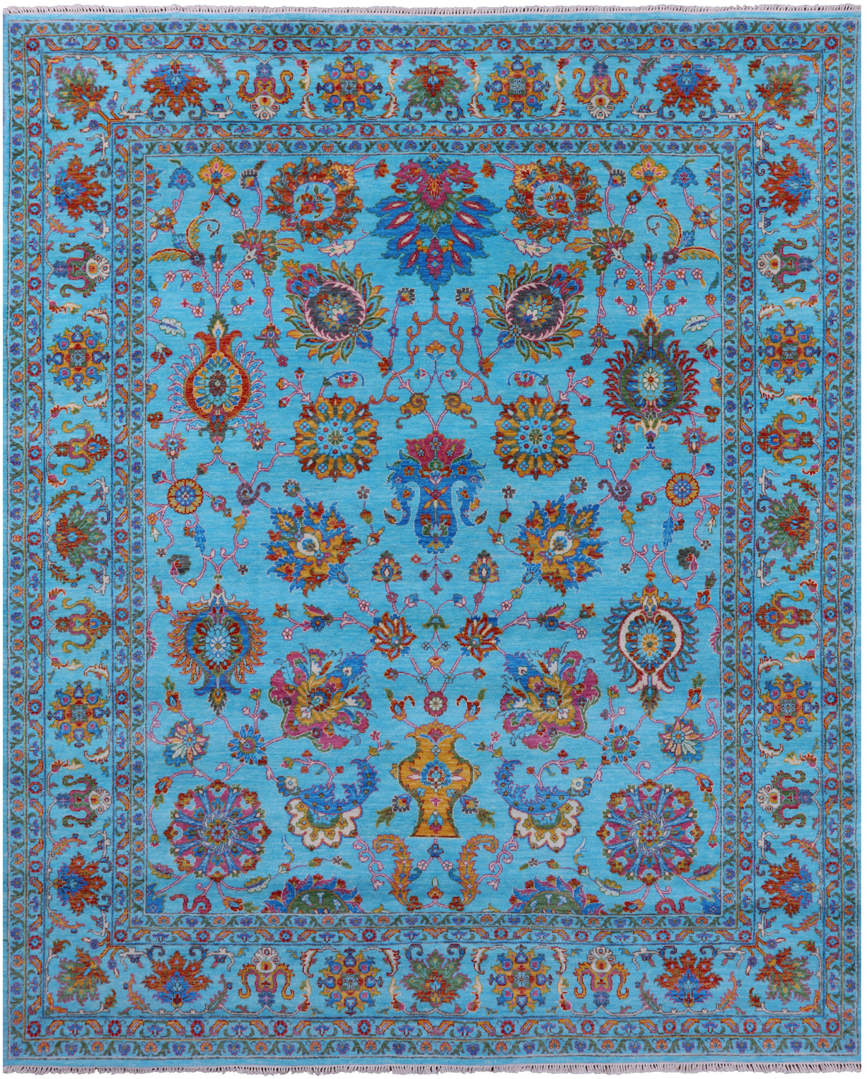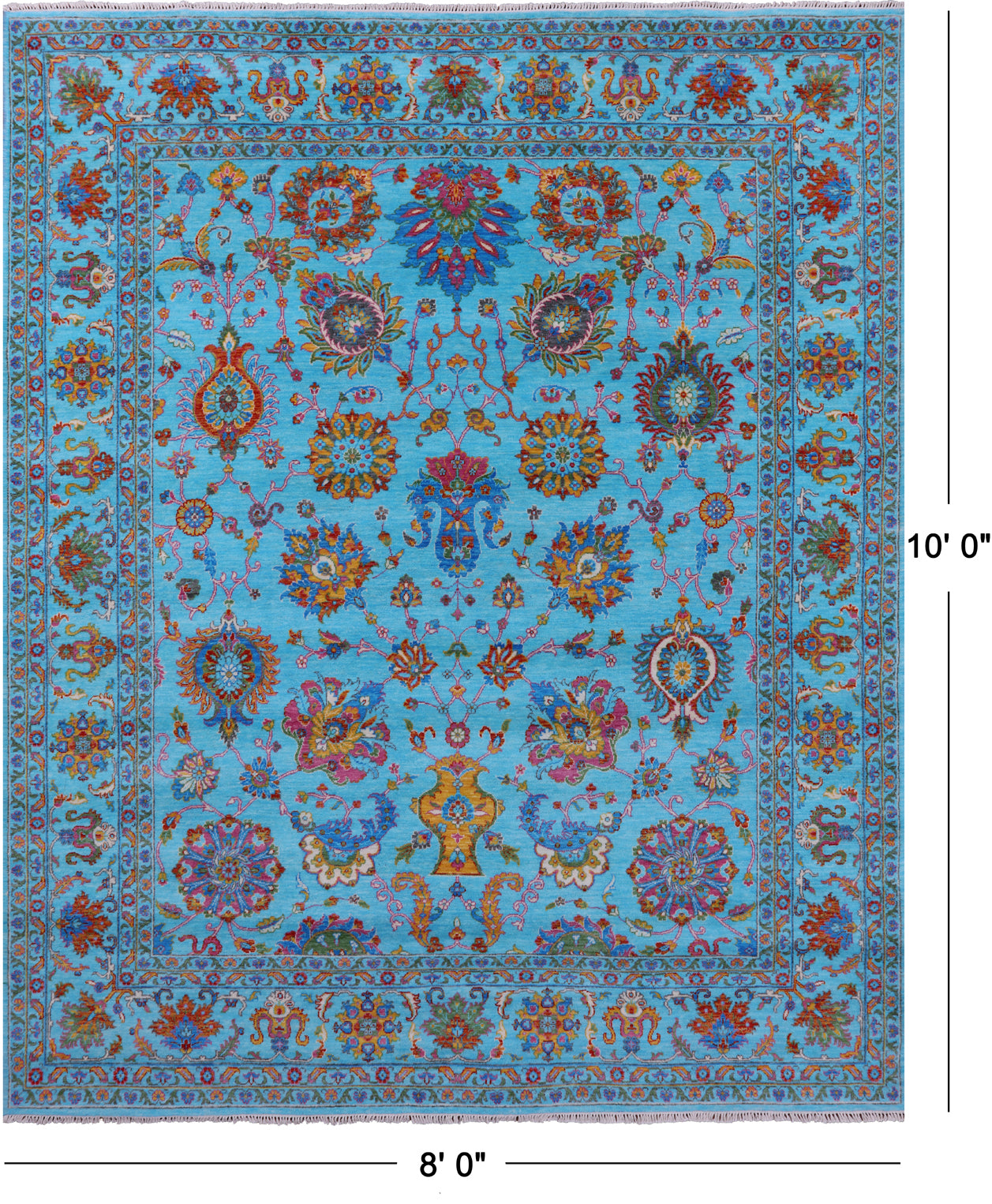 Blue Persian Tabriz Hand Knotted Wool Rug - 8' 0" X 10' 0"