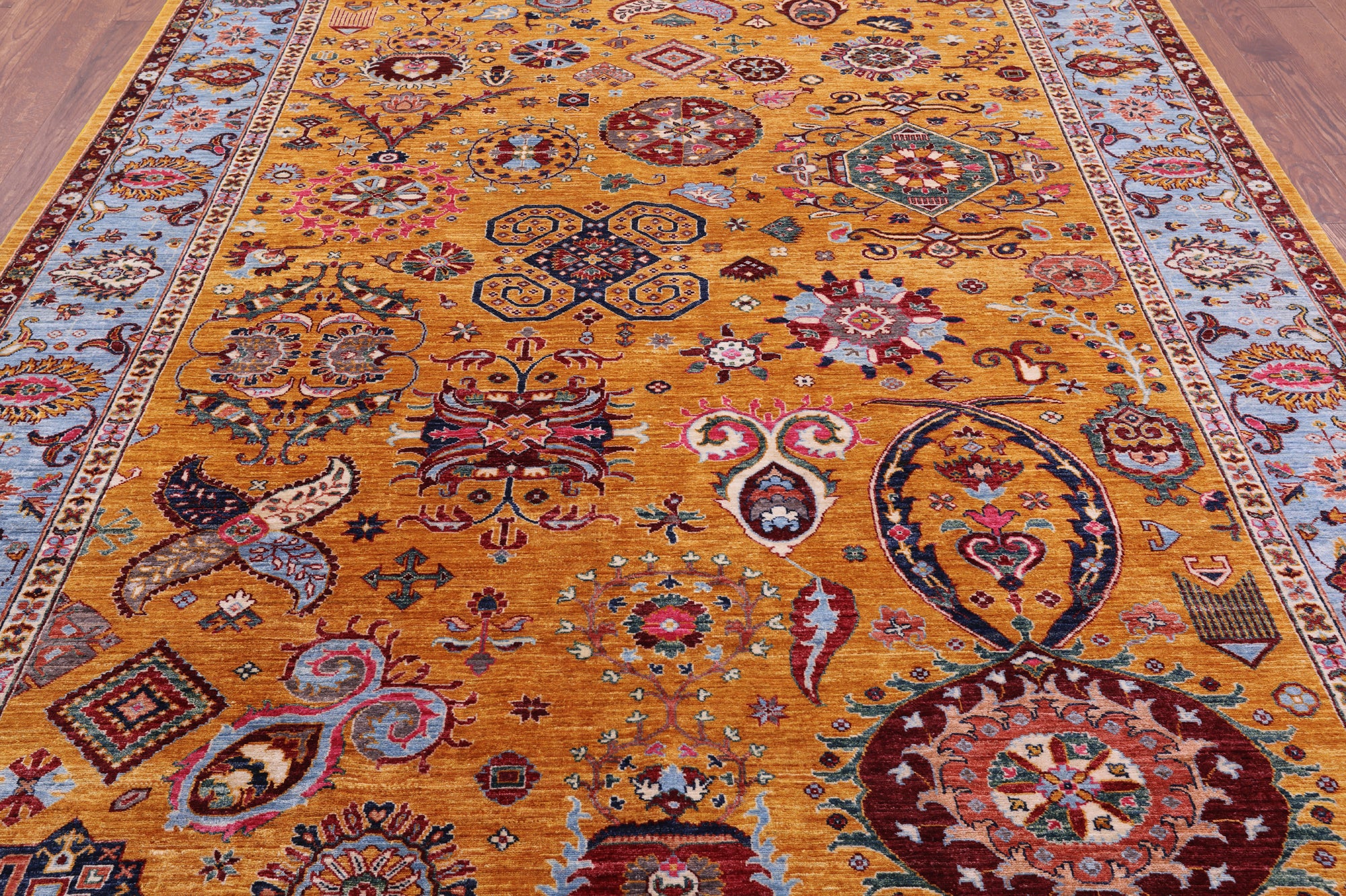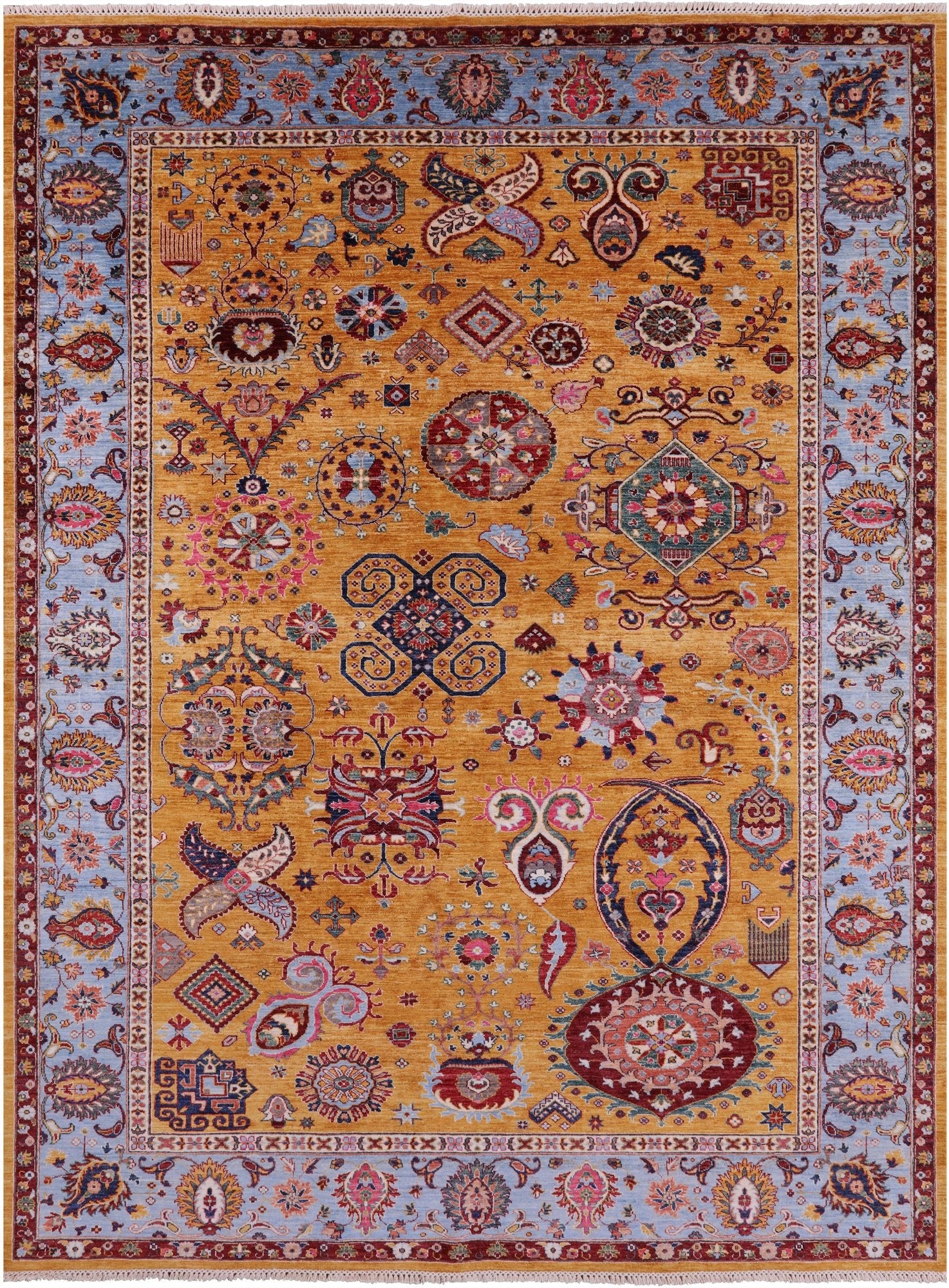 Tabriz Rugs are the most diverse and innovative in Persia due to its high-quality. Tabriz designs are hand-knotted with fine soft wool or silk, on a silk or cotton foundation, and may have either a thin silk, or wool pile. Their patterns consists of medallions surrounded by weeping willows, a cluster of trees and/or cypresses, arabesques (ornamental designs), and most popular, the four seasons used to depict the life of the Persian farmer. Their rich colors consist of red & blue with an ivory background, while newer Tabriz Rugs have softer colors such as green, blue and brown to correspond with modern interiors.