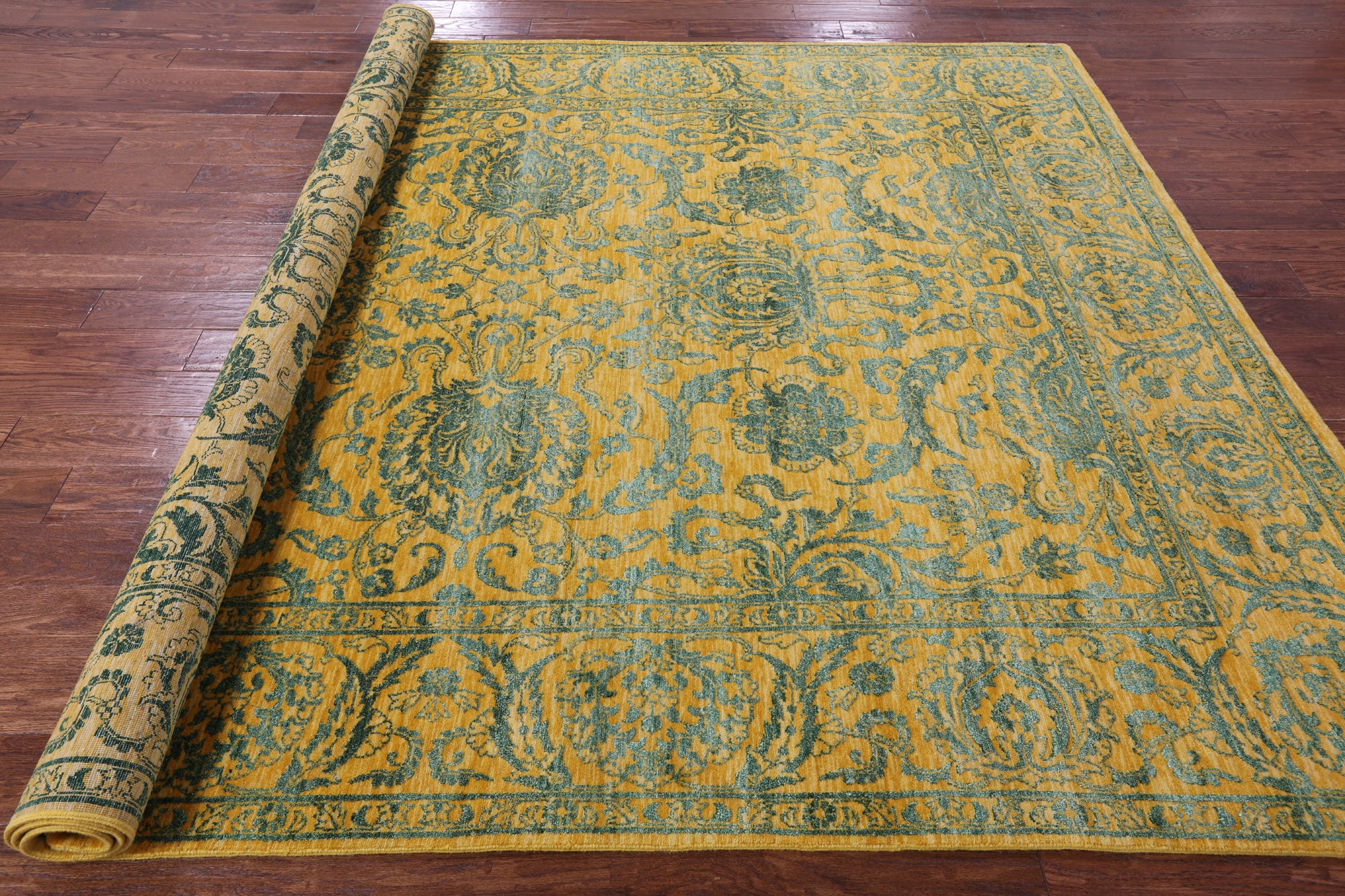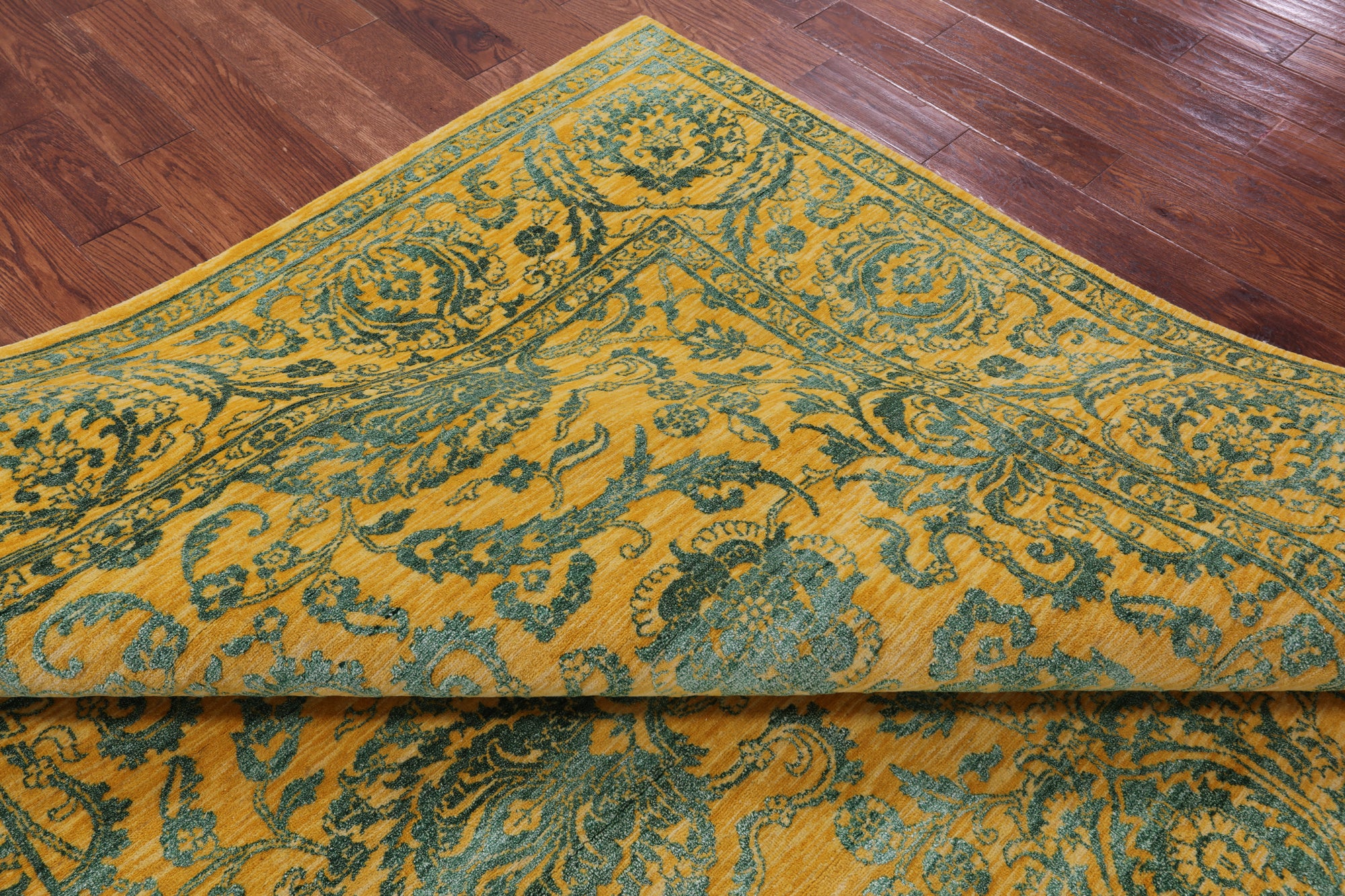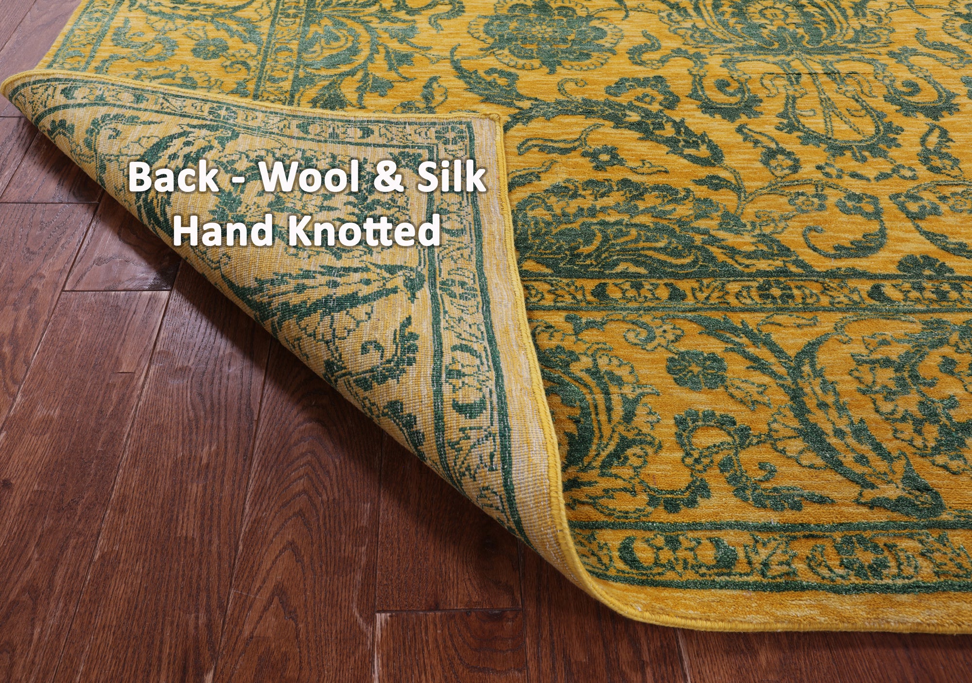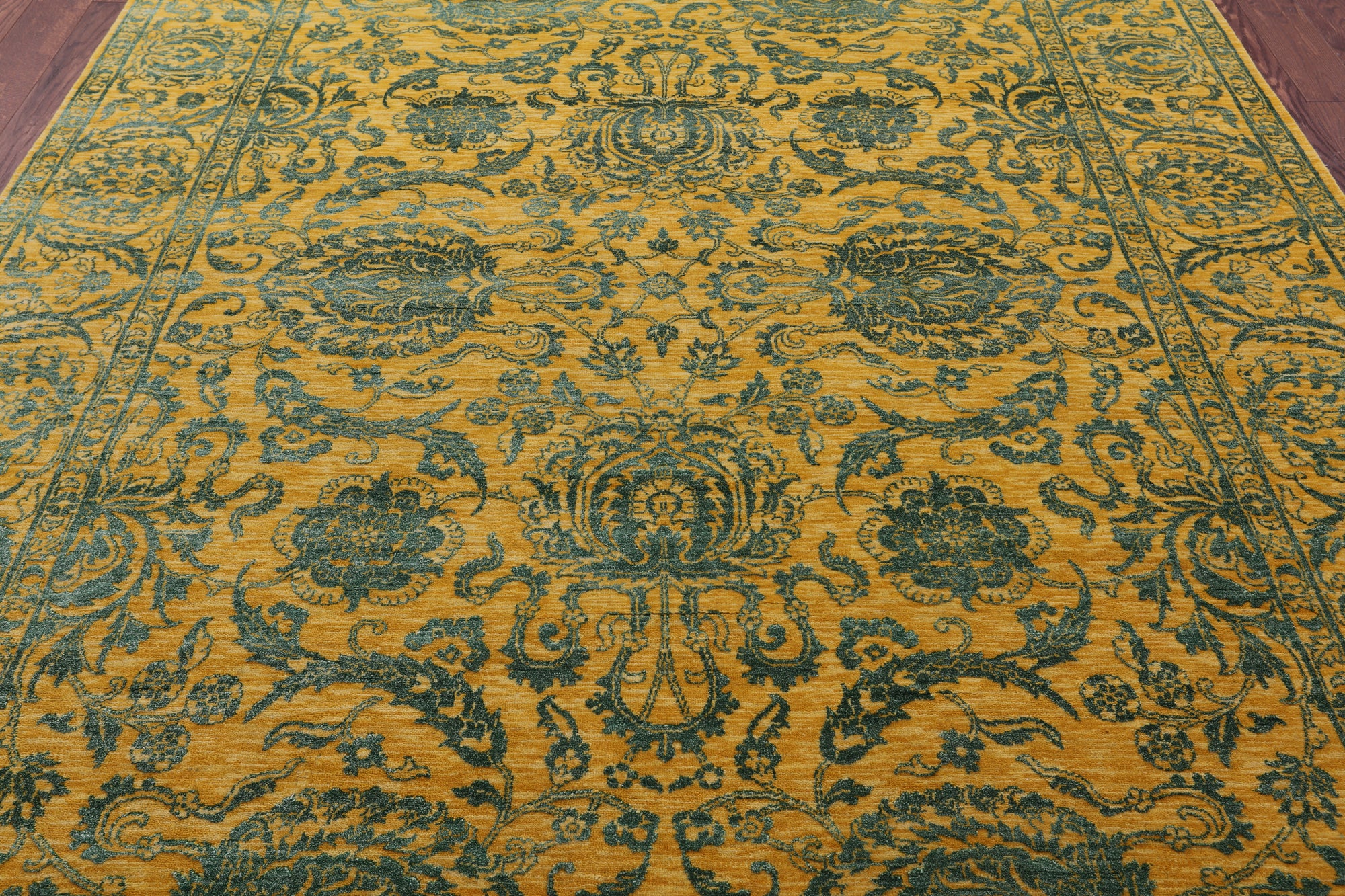 Gold Persian Tabriz Hand Knotted Wool & Silk Rug - 7' 11" X 9' 11"