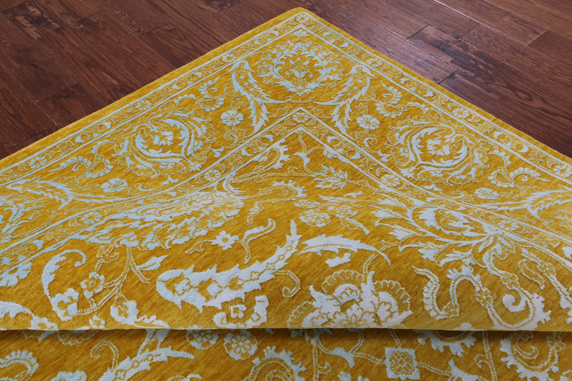 Gold Persian Tabriz Hand Knotted Wool & Silk Rug - 8' 0" X 10' 2"